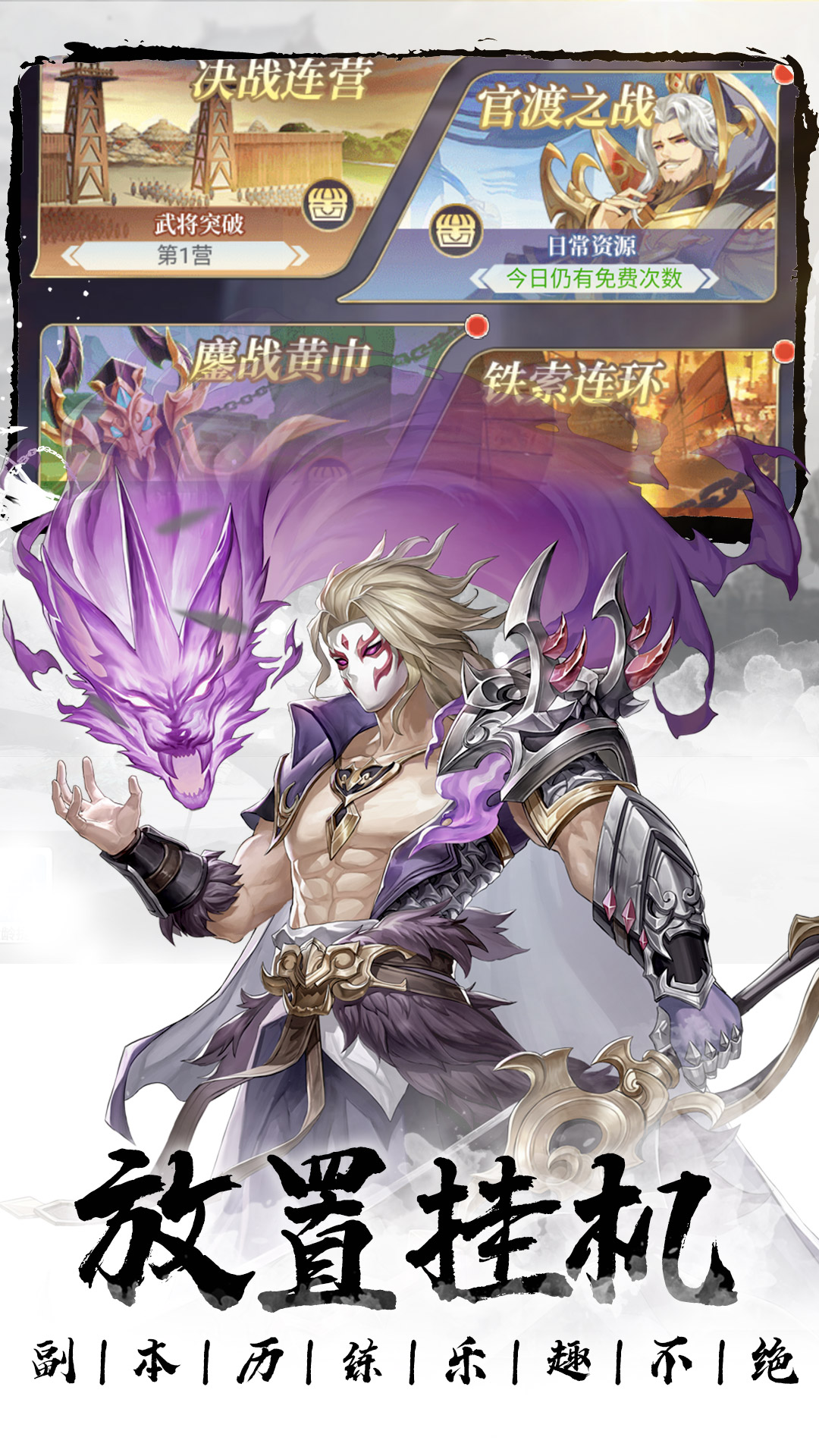 武将阵营间相互克制,多种职业相辅相成,酷炫的武将技能组合,威力巨大的神器……多种元素碰撞,产生更多奇妙效果。策略烧脑,灵活配队,武将自由组合,打造独属个人的超强阵容。