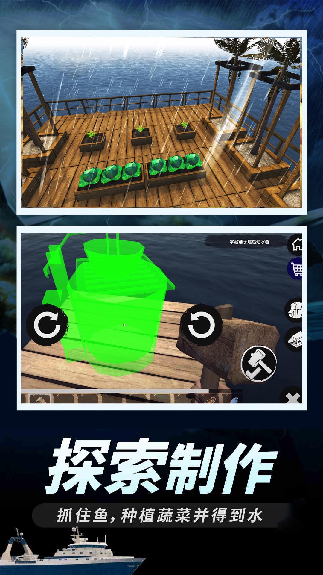 抓住鱼,种植蔬菜并得到水 - 尽一切努力生存!创建生存所需的建筑材料,衣服,武器,箱子和其他东西。
