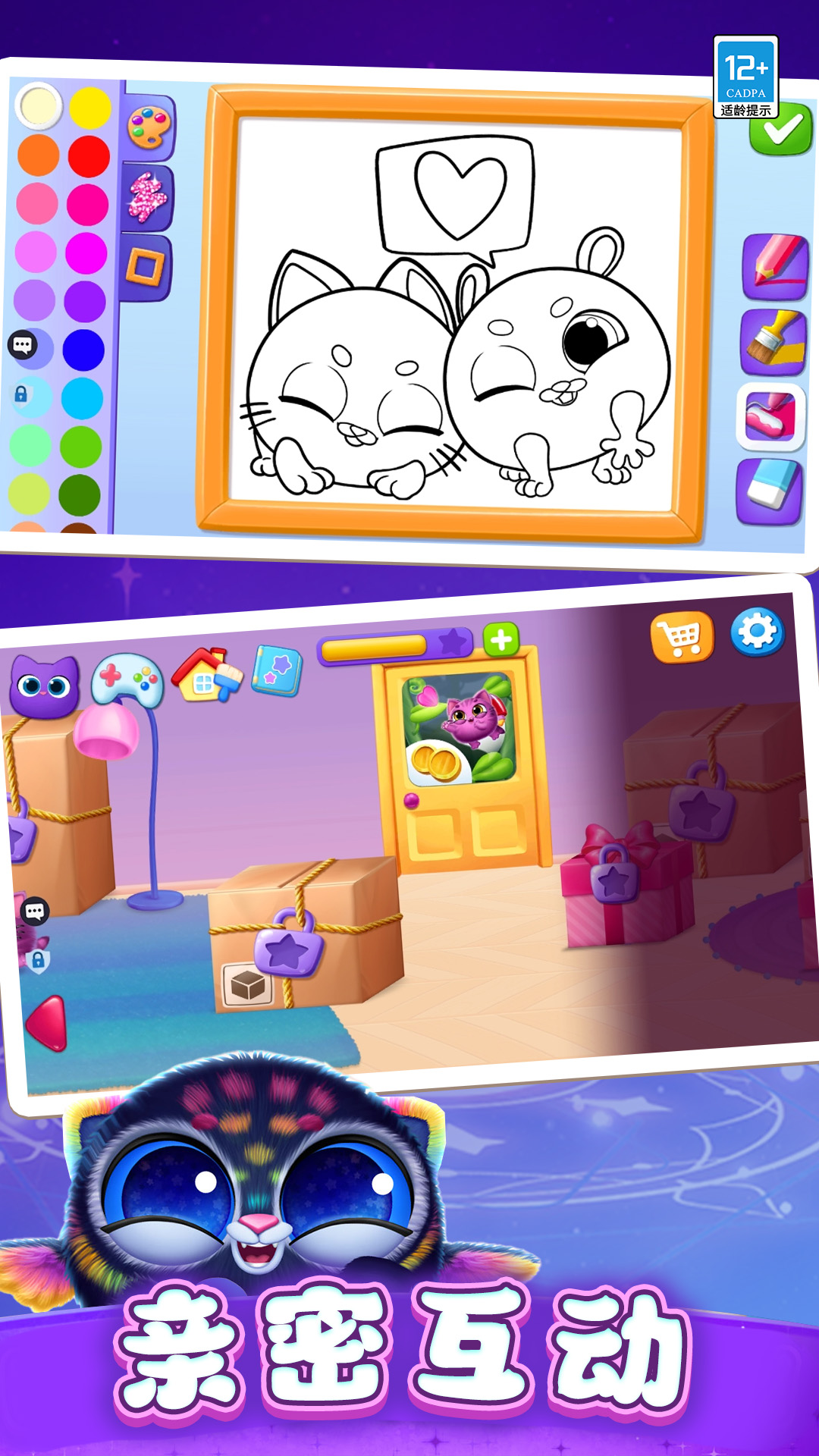 在这个游戏里,你可以通过轻轻敲碎蛋壳,孵化出各种可爱灵动的动物小萌宠,你需要用各种美味的食物喂养它们,照顾它们健康成长;随着萌宠们的数量增多,你还需要为它们扩建它们的生活活动空间,解锁更多的生活设施,让它们能够玩得更加开心!房间内的设施你都可以根据自己的喜好进行布置,为这群毛茸茸的萌宠们提供更好的生活条件!在这里,你还可以通过解锁故事书,了解一些萌宠们之间的小故事,可以更好地了解它们每一只的性格爱好!同时,在房间内还为添加了许多小游戏,你可以和萌宠们一起在游戏内进行探索冒险,完成游戏,获得奖励,这些奖励也可以帮助你获得更好的互动家具!