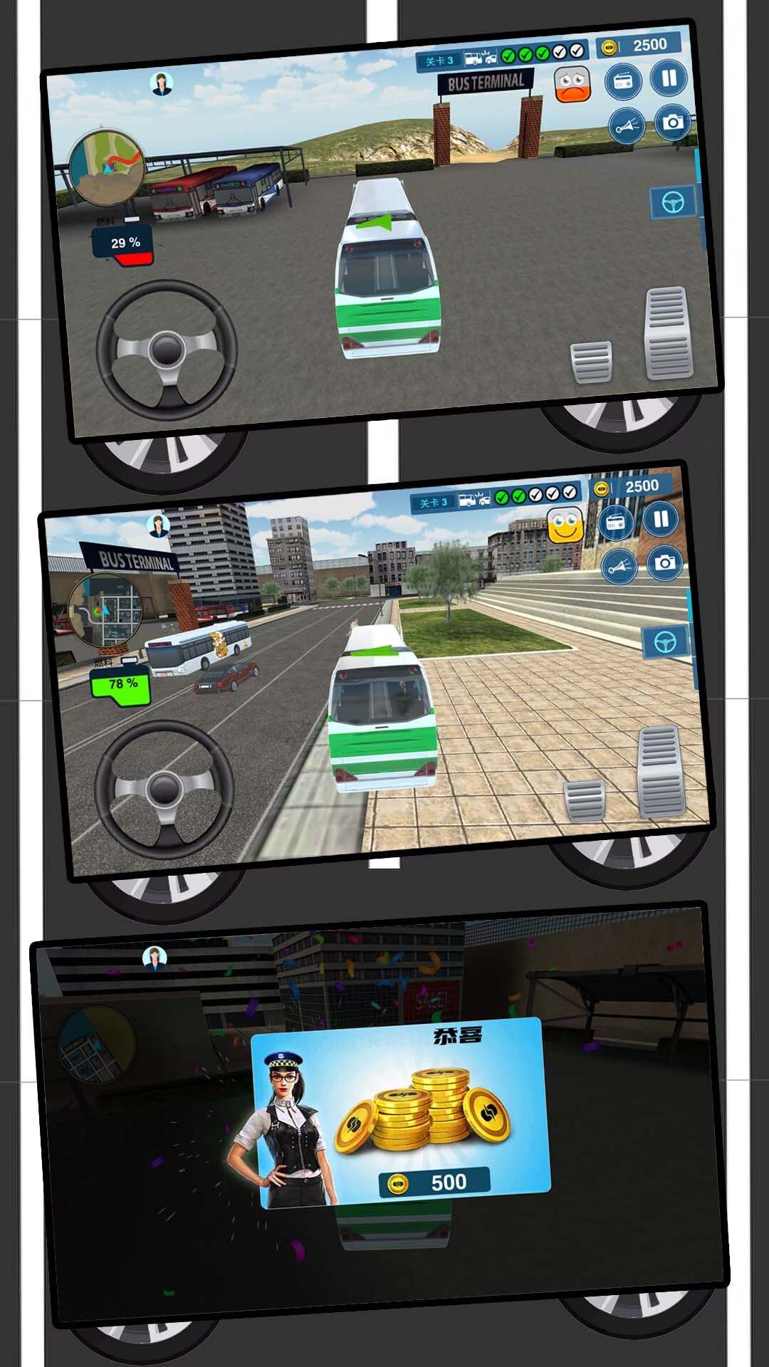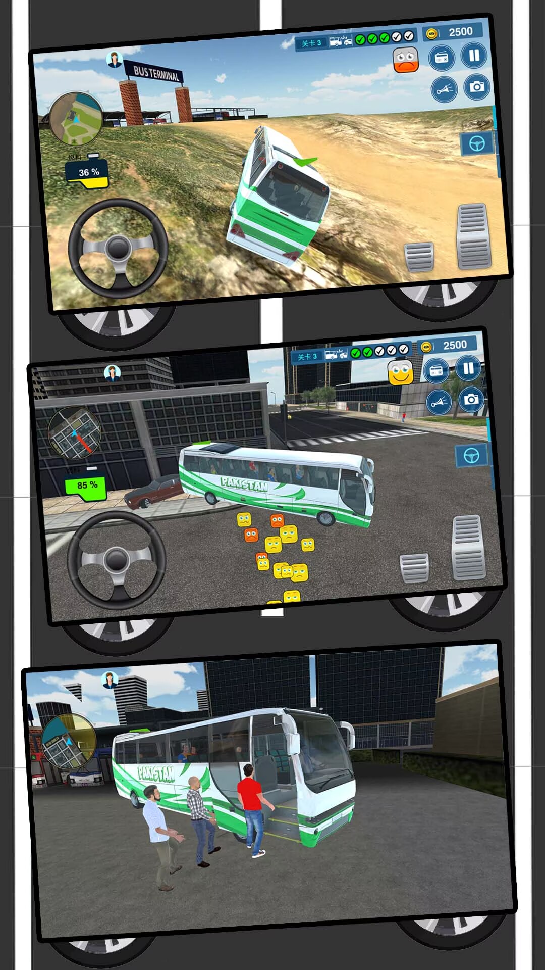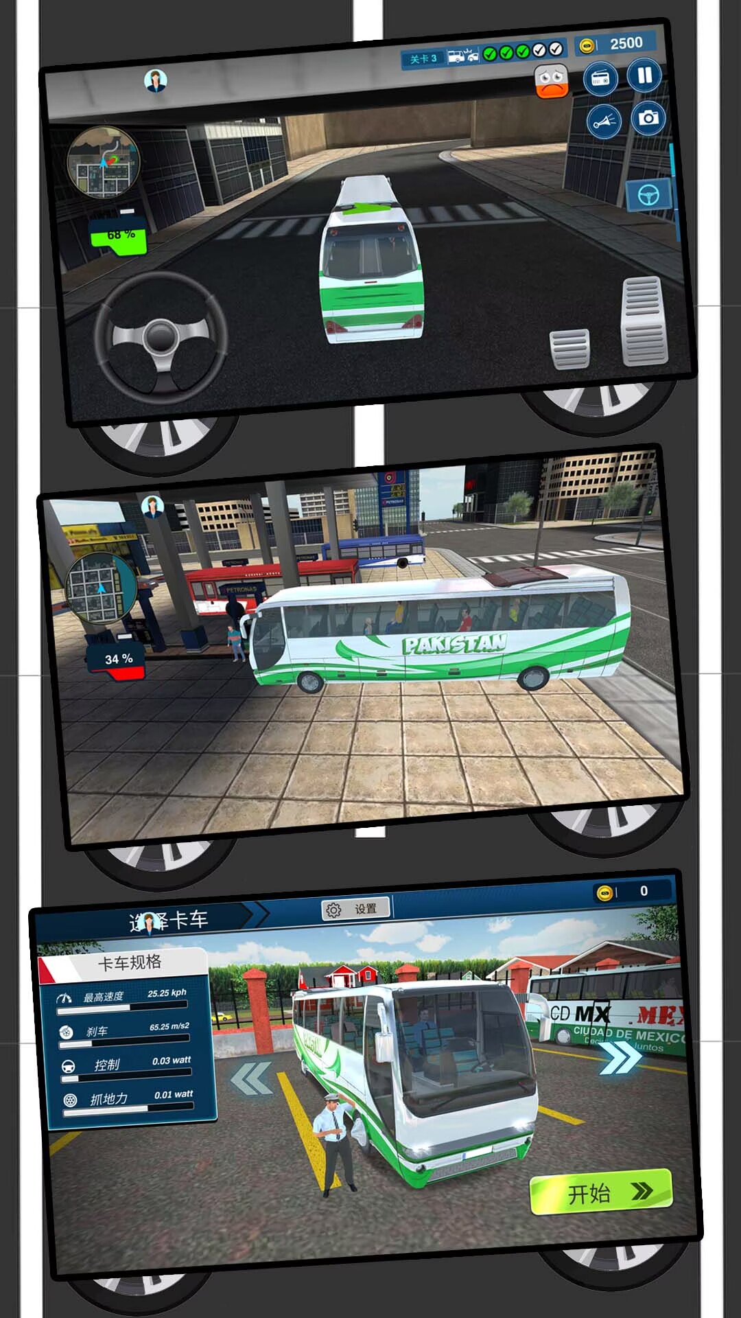 玩家作为一名公交车司机来到游戏中的世界,沿着正确路线行驶,停靠站台,接送乘客,赚取更多的金钱来壮大自己的公交公司。
