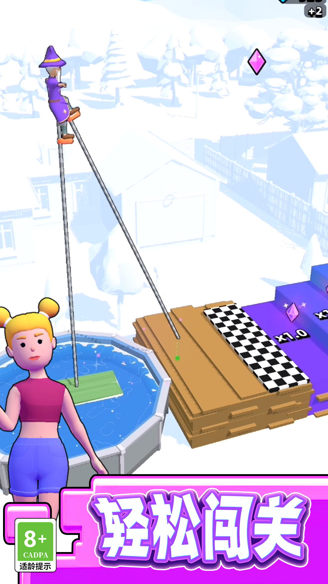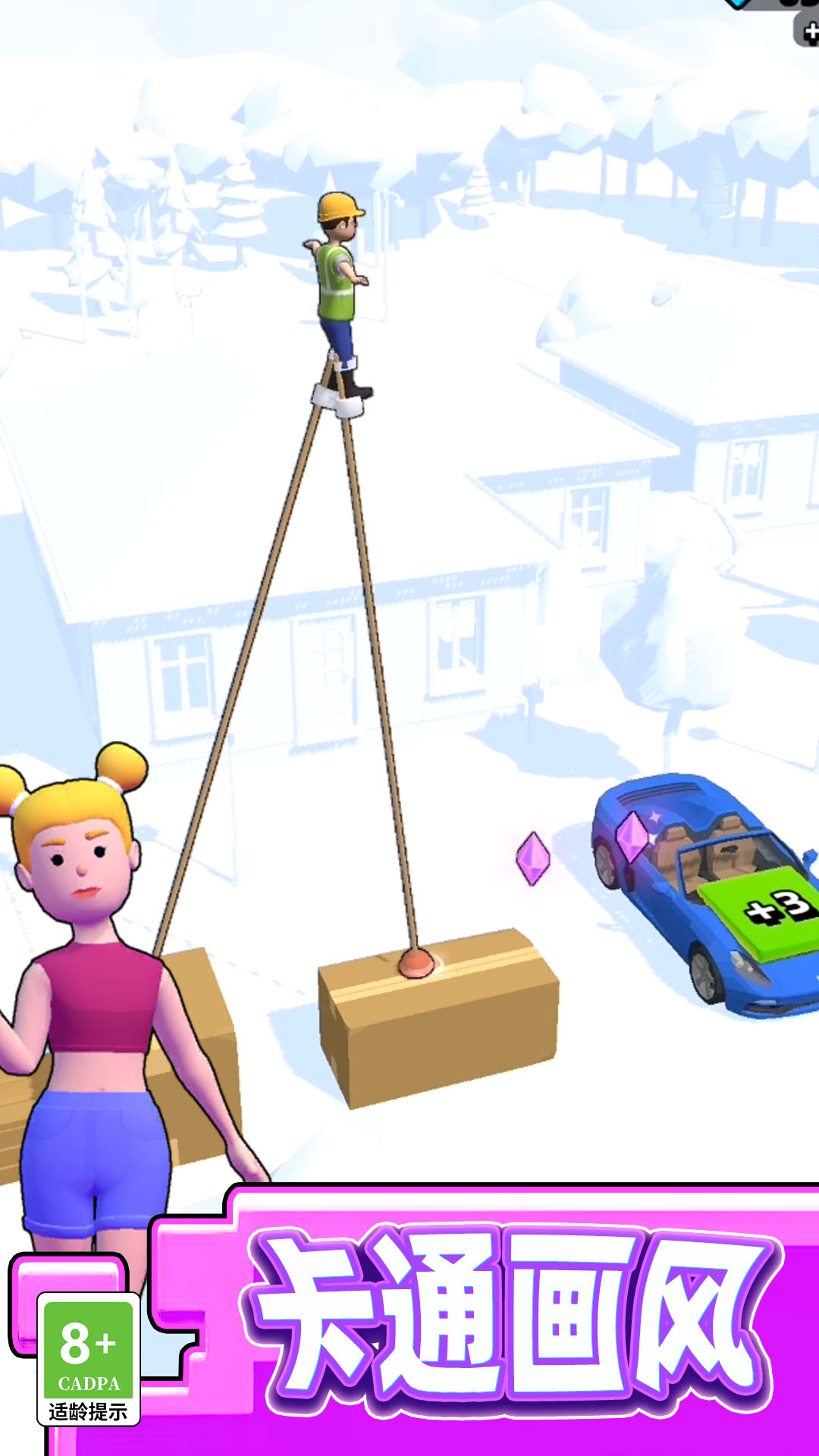 劈叉女孩是一款好玩的休闲类游戏,你需要不断的提高你的高跷的长度和速度,走得越来越远,走的越远收入就越高。
