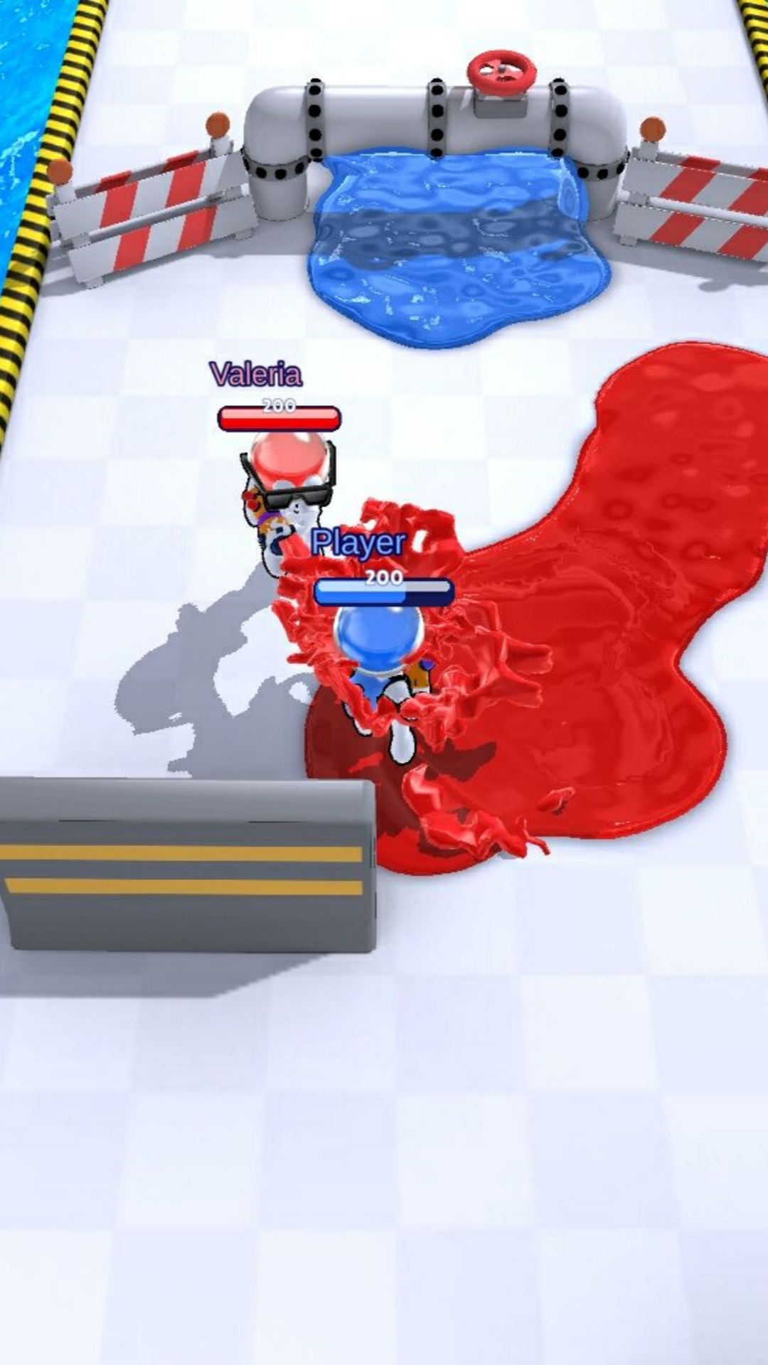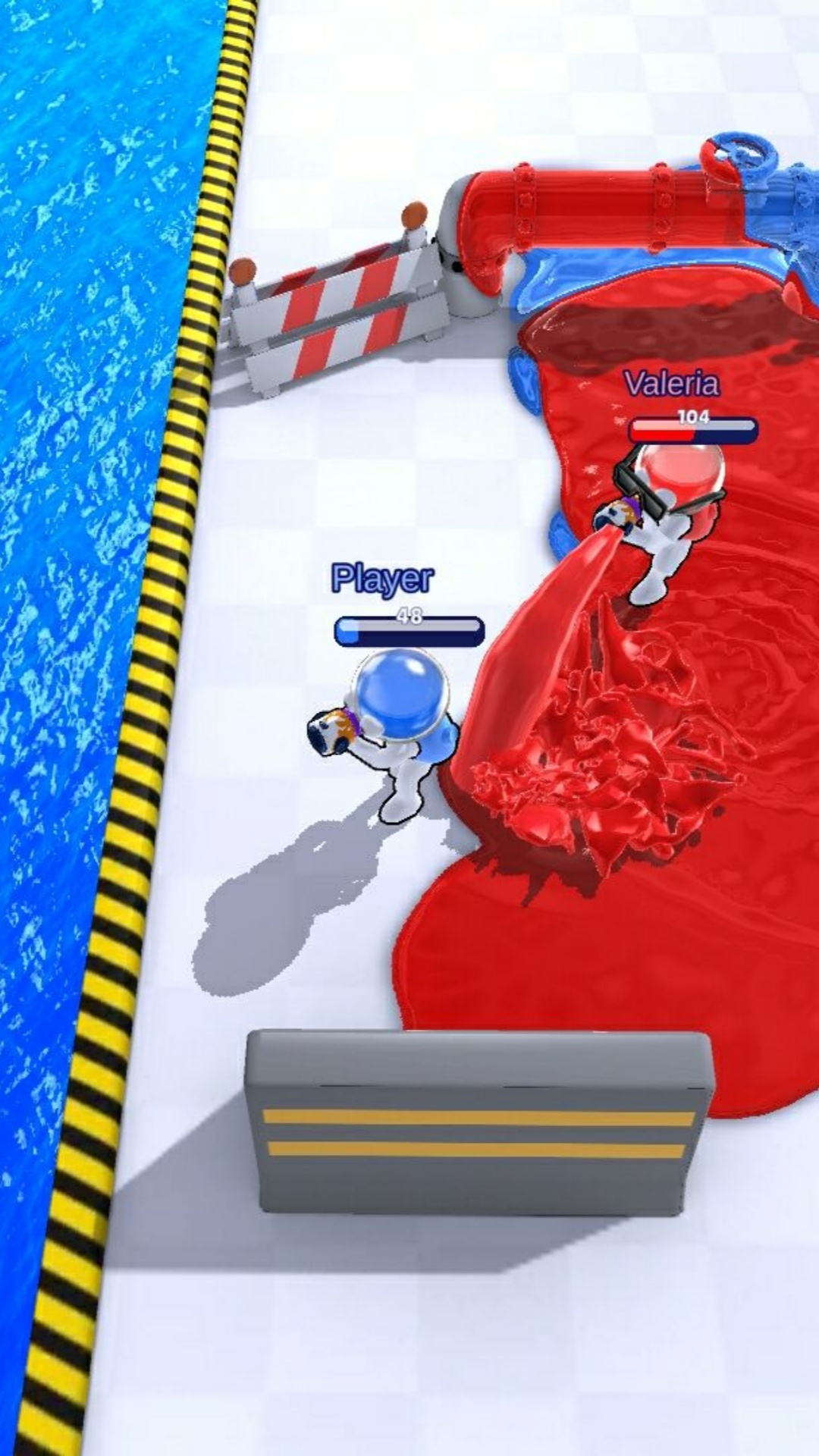 拿一把油漆枪和无限量的染料!与您的团队一起占领敌人的塔楼和基地。染遍全境不留一丝空白!三支队伍的颜色各不相同:红色、蓝色和黄色。地图上的每个团队都有自己的基地和油漆射击塔。你的任务是通过淹没敌人和油漆战场来占领敌人的建筑!您可以无限制地涂抹周围的一切,染料永无止境!在您团队颜色的油漆溢出的地方,您可以潜入其中,移动得更快,恢复健康!