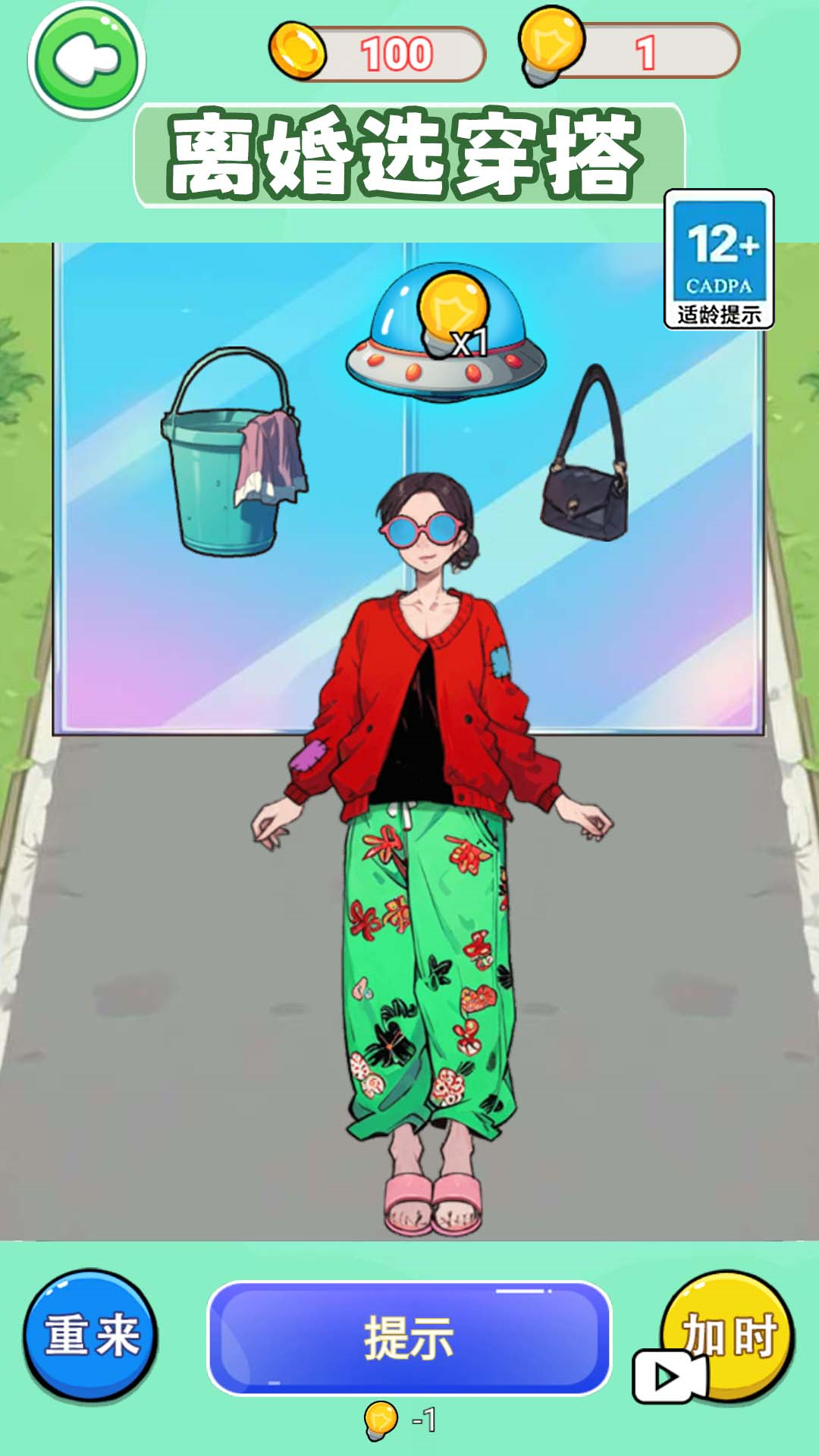 《离婚选穿搭》是一款休闲益智类的选择小游戏,去帮女孩们选择合适的穿搭,快来帮她们选择吧,让他们回到巅峰。
