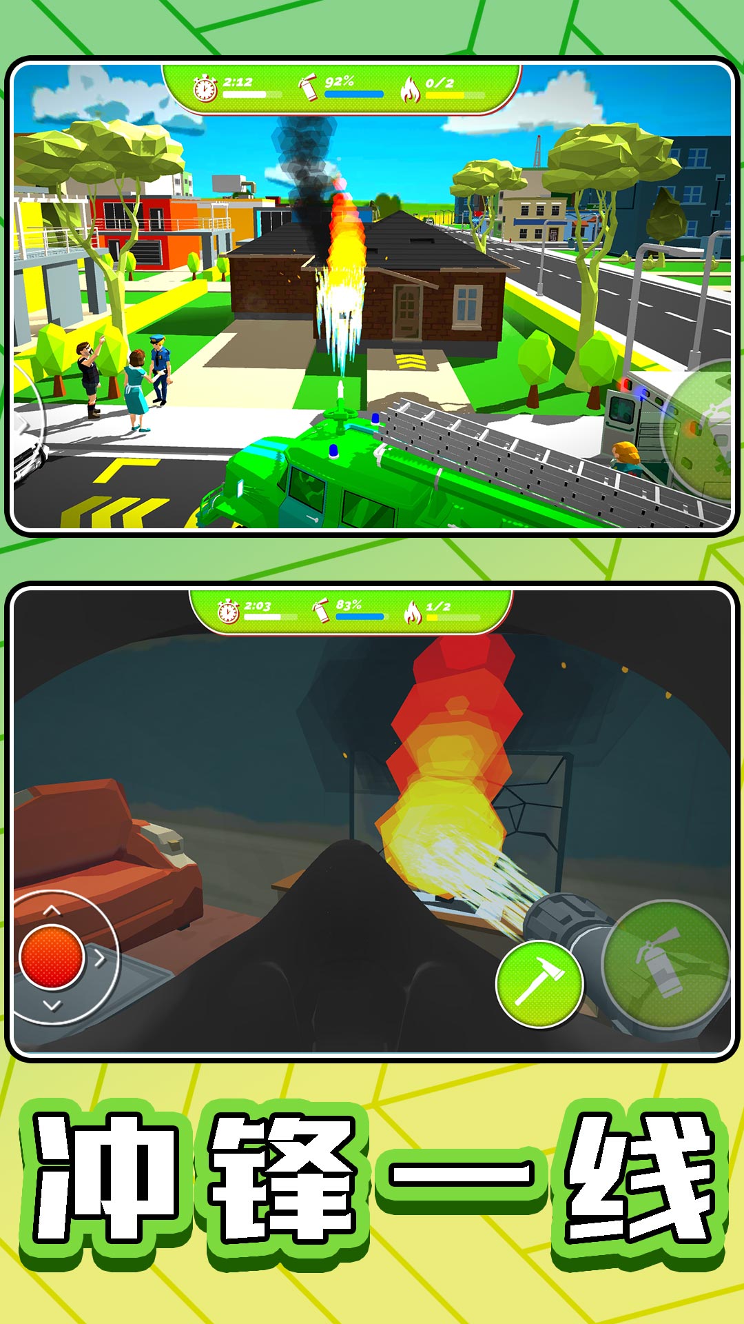 一款卡通消防员模拟类手机游戏,这款游戏给玩家们呈现的是一个真实的3D世界,玩家们作为消防员需要去消灭城市中出现的火灾。游戏中玩家们在火灾现场可以选择不同的消防车和水的体积进行针对作业,并且游戏不单单是救火,还有各种救难任务,玩家们不仅要灭火,还要从患难人群的家园中拯救人们。