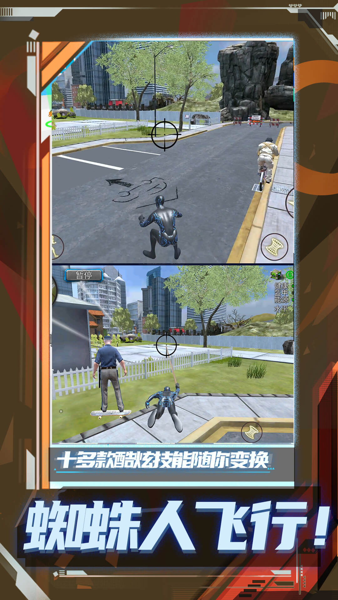 这是一款模拟都市竞技的游戏,里面的角色是一个穿着一身黑色有特异功能的超级英雄,游戏的画风逼真和优美,让你瞬间爱上这款游戏。
