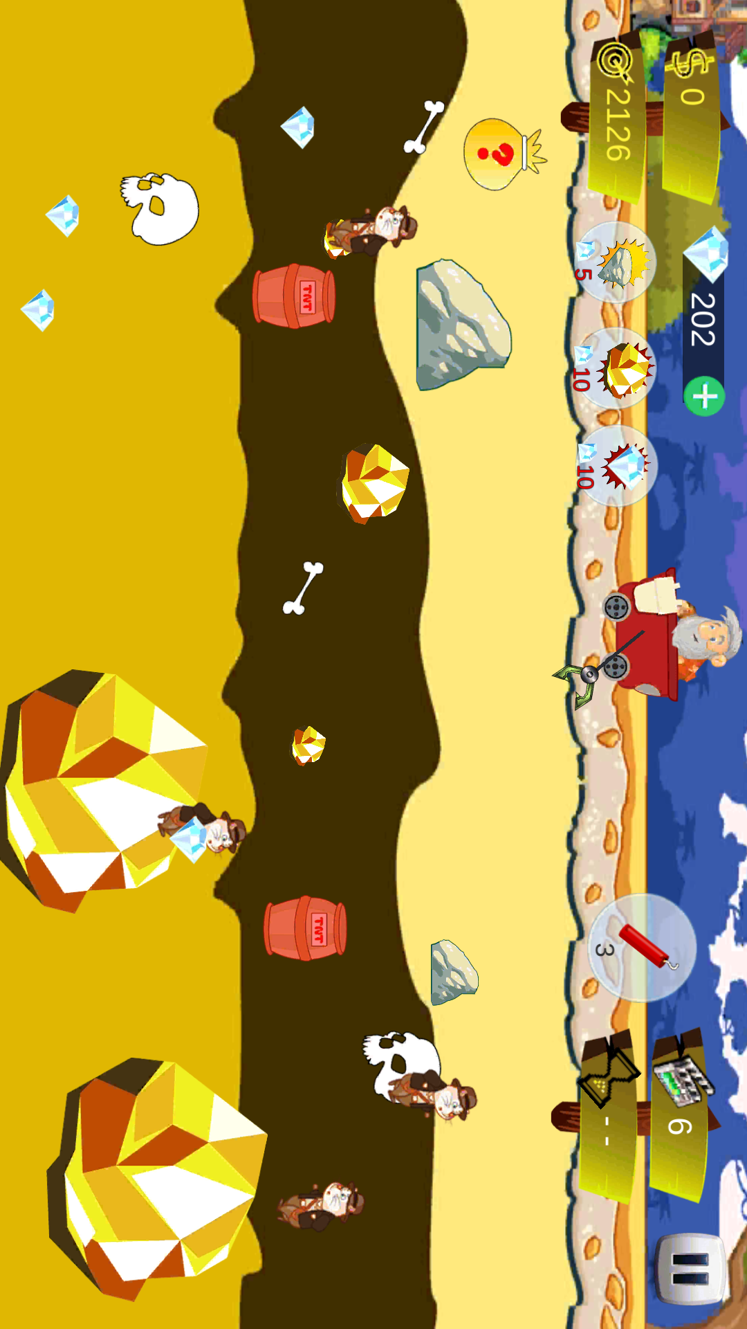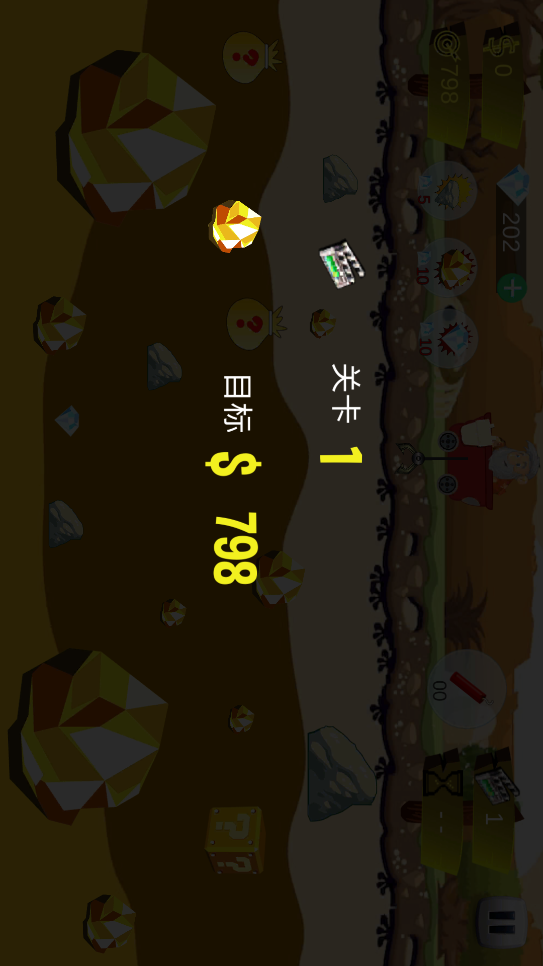 炸药:按↑ 可以使用,炸掉钩子上的物品,快速收回钩子。