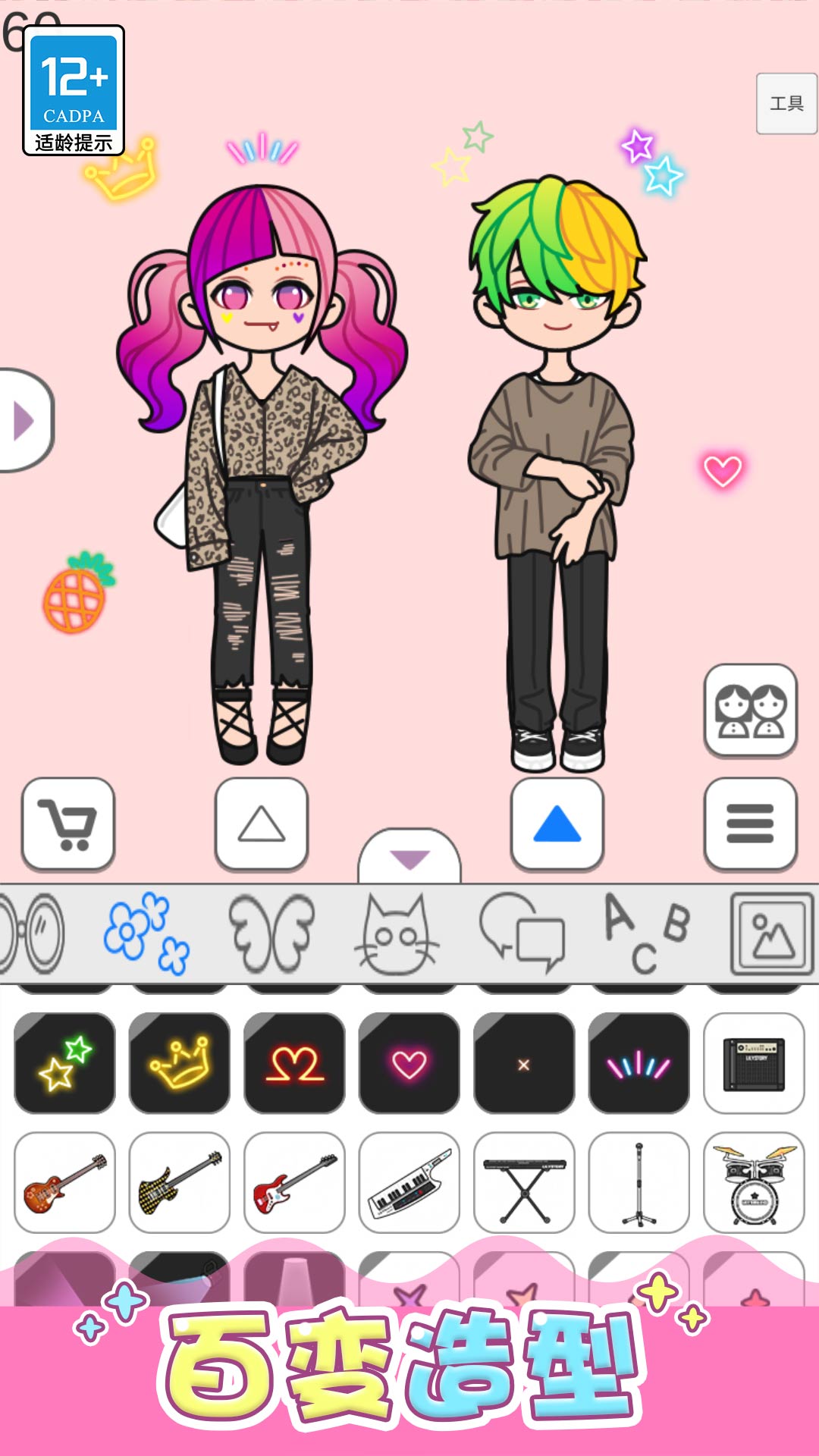 1.卡通风格的换装游戏,制作你的专属形象。