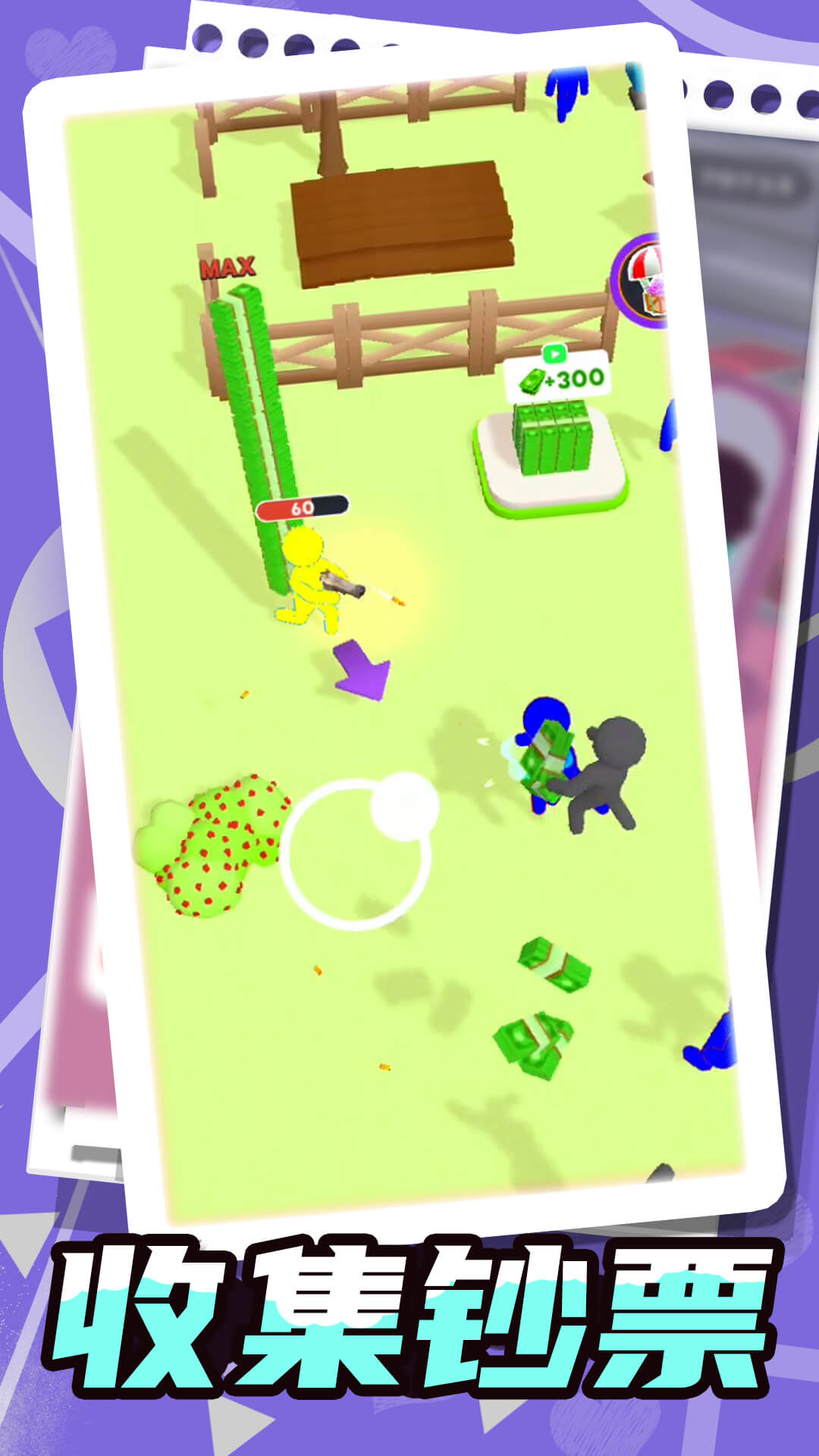 射击火柴人是一款非常好玩的冒险生存小游戏。作为玩家需要消灭敌人,获得金钱升级家园和装备。解救平民,一起建设基地,满地图清理僵尸,收割所有僵尸,游戏中有各种各样的武器。包括有武装飞机。快来下载体验吧!