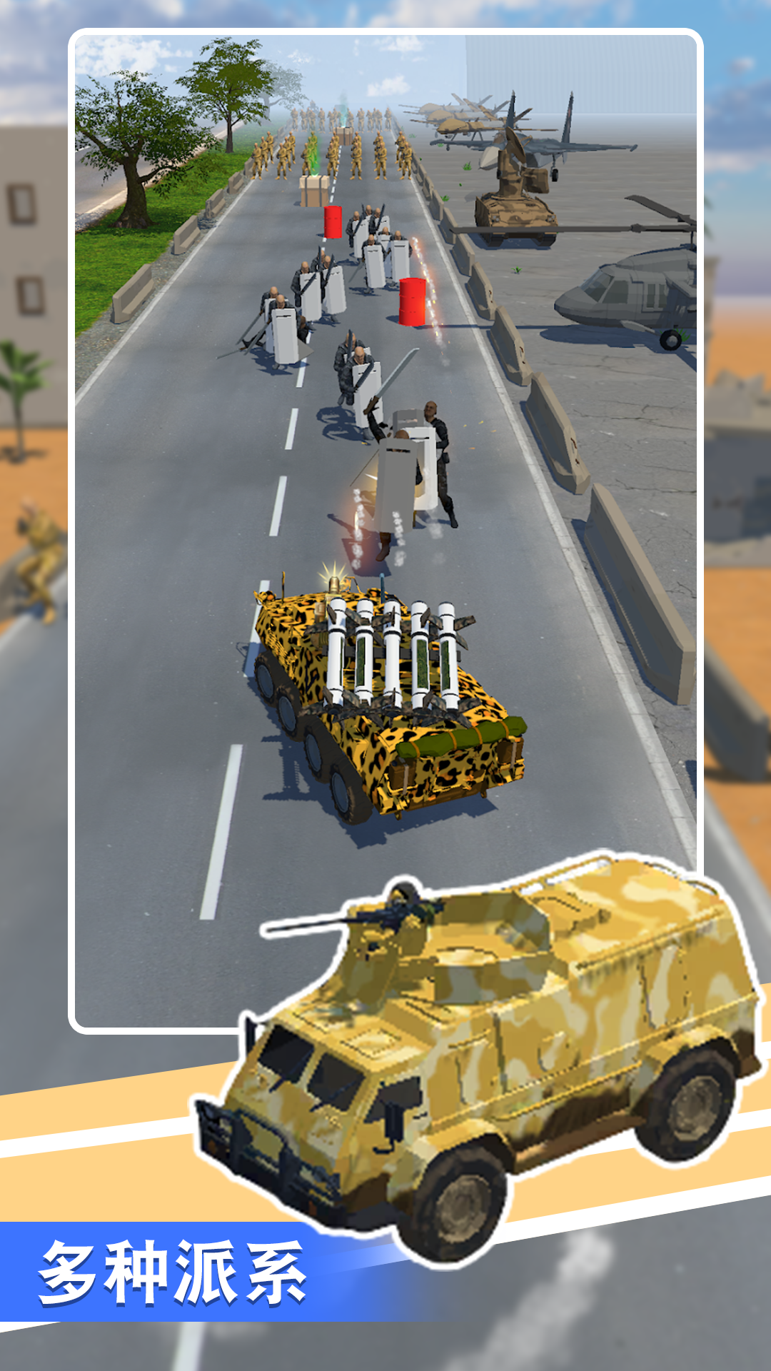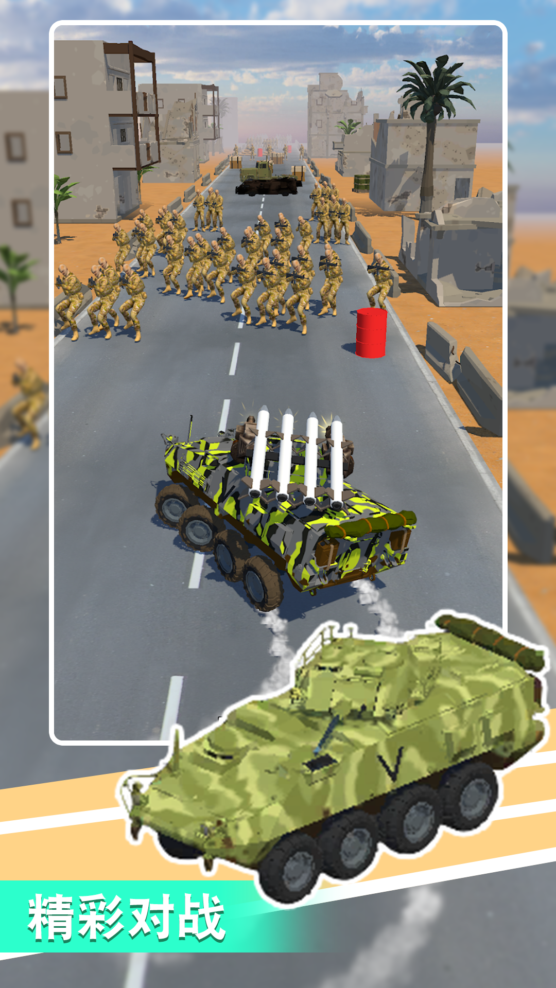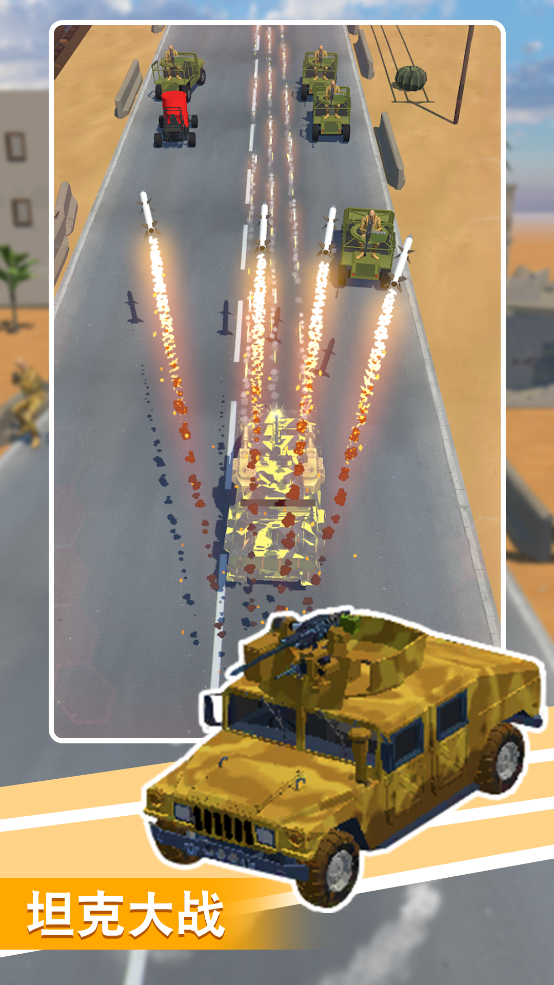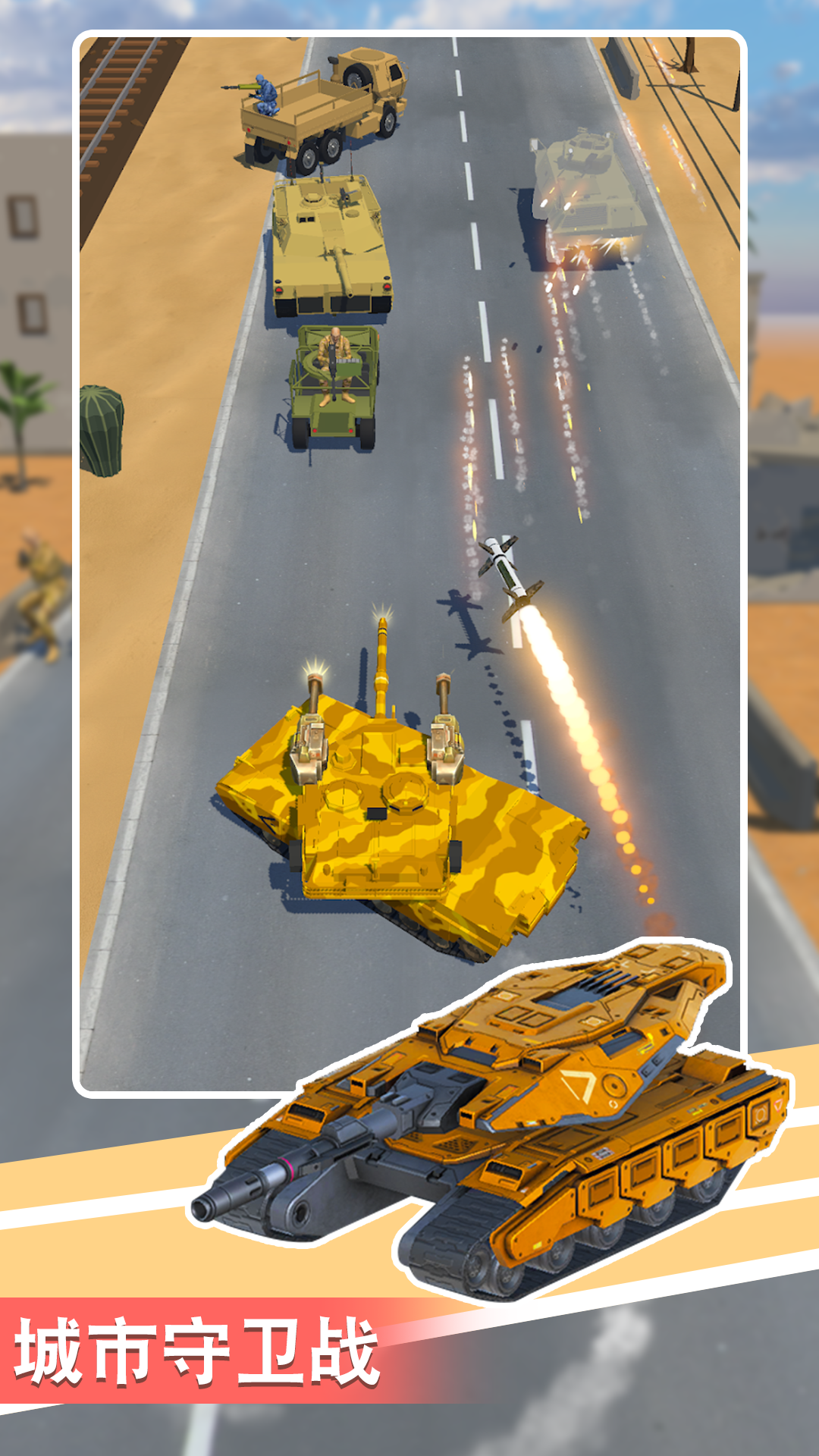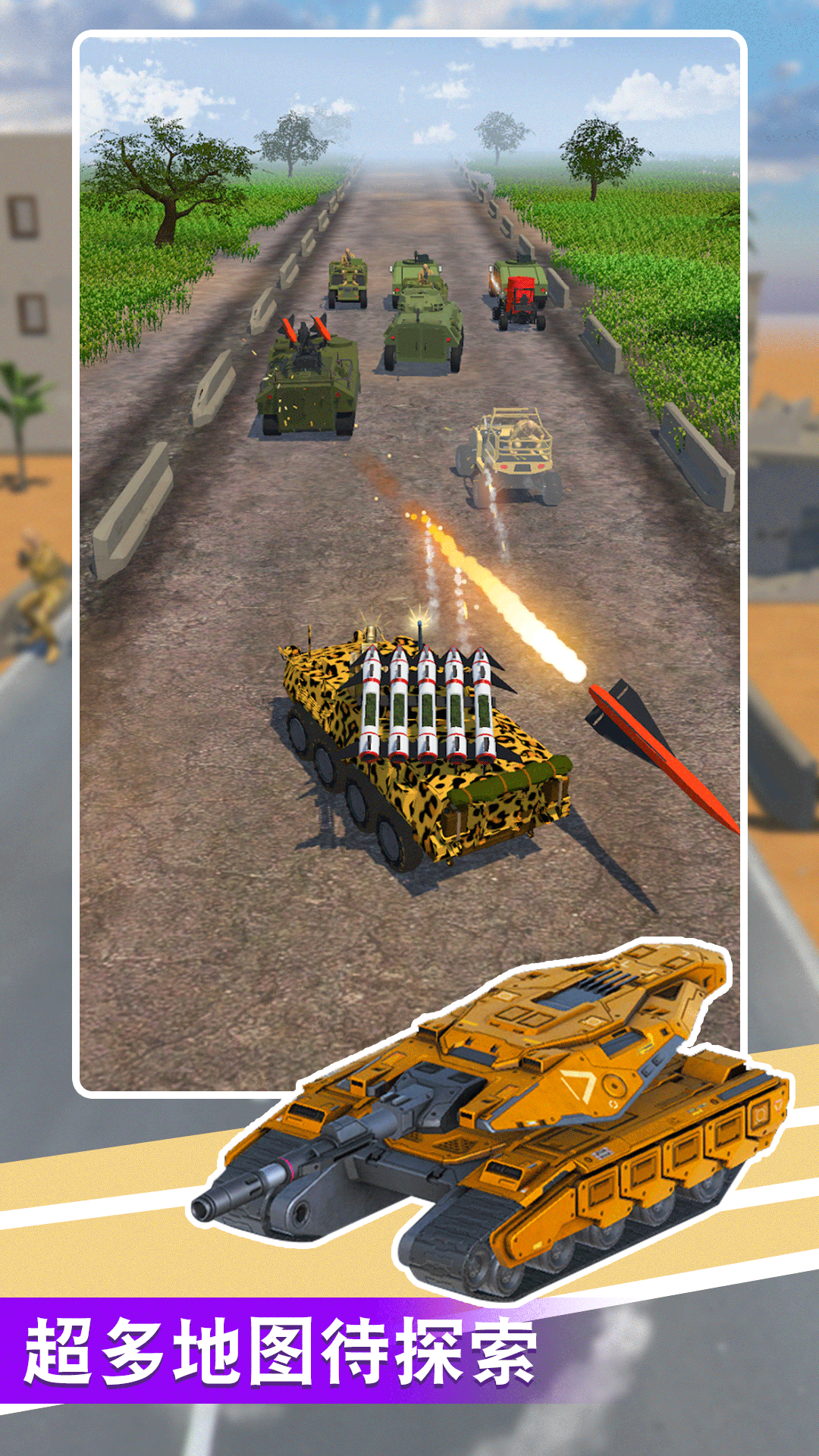 这是一款激动人心的坦克射击游戏,在游戏中你可以通过左右滑动来控制你的塔克来攻击敌人,你的目标是摧毁敌人的车辆、士兵等,同时你可以通过打破箱子或摧毁敌方车辆来升级武器。加入我们,控制你的坦克,一边装备和升级武器,一边探索许多敌人和新武器!