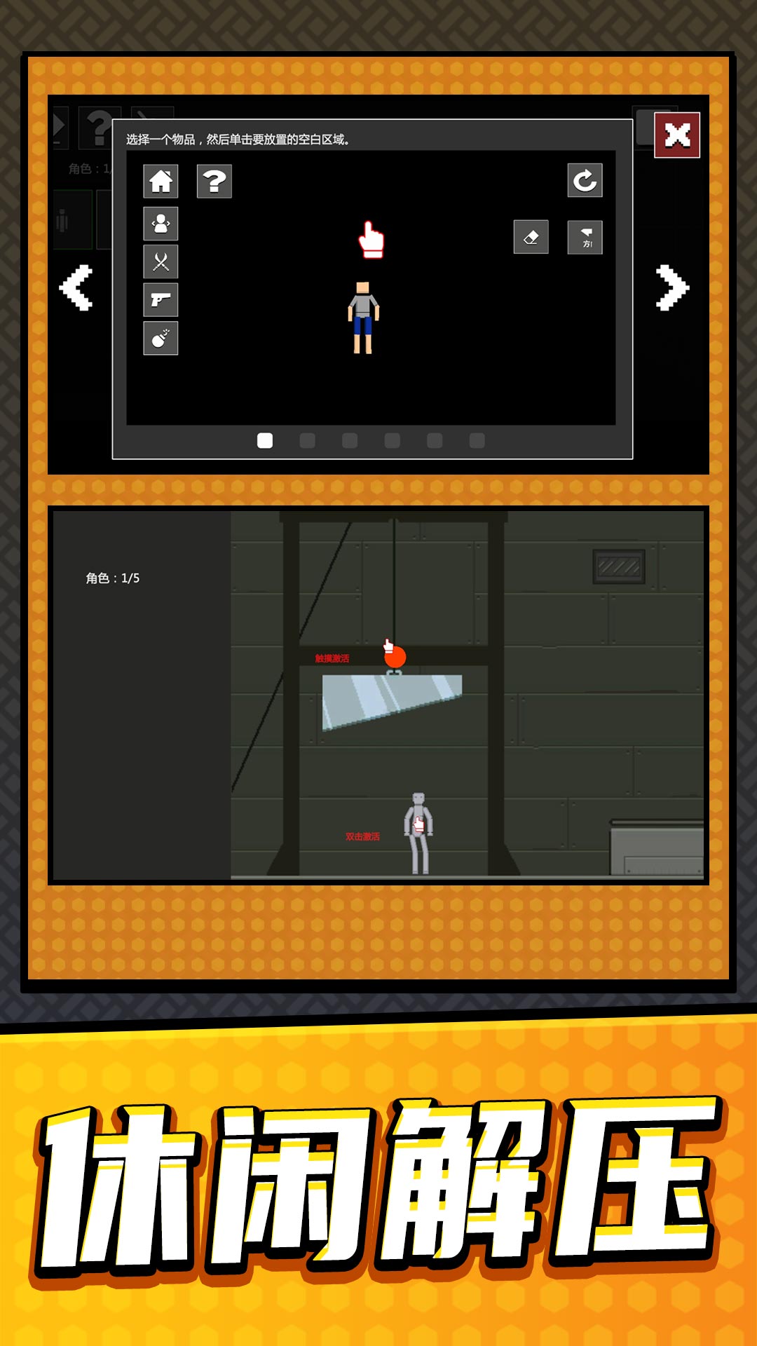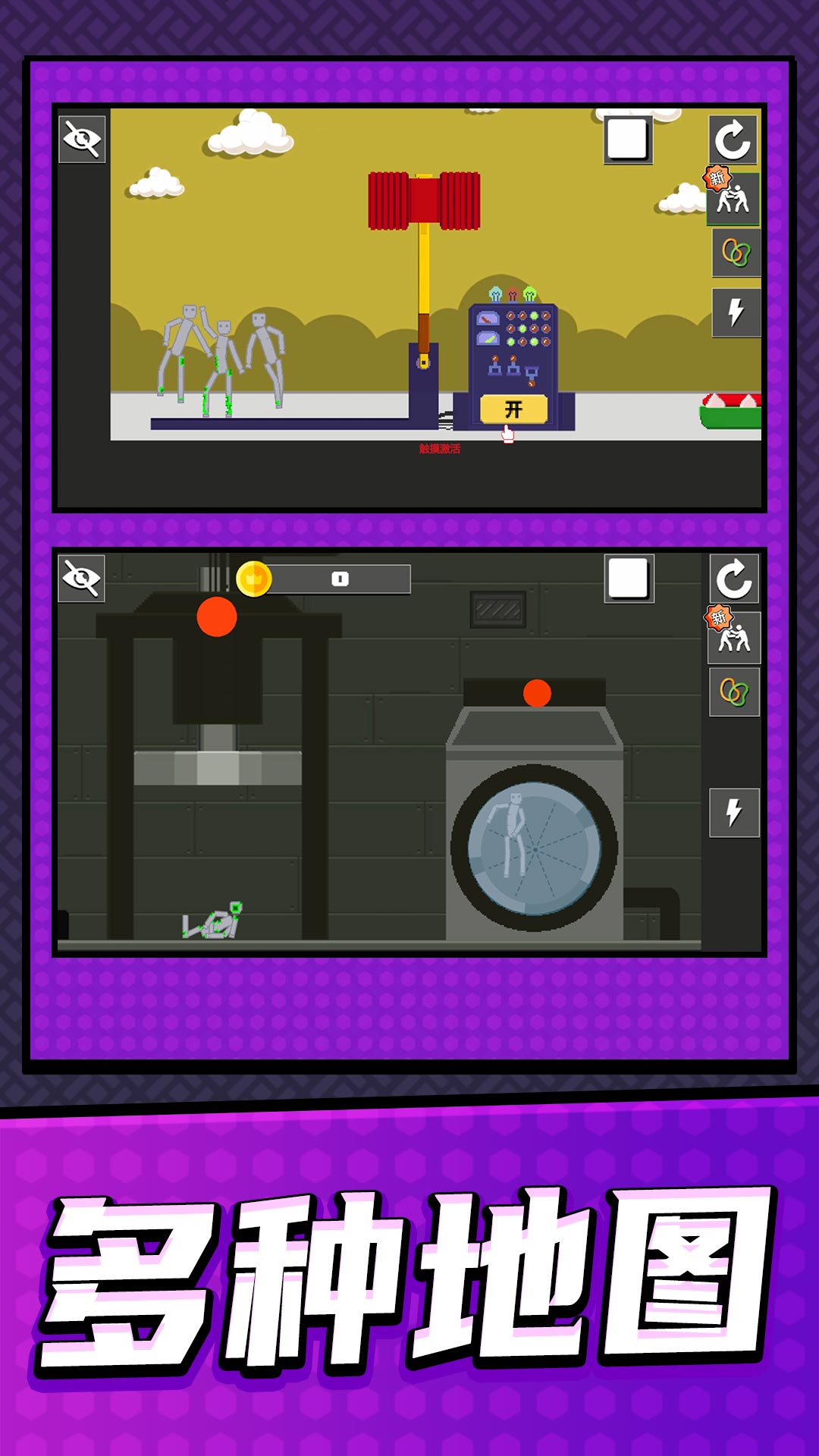 是一款2D沙盒物理破坏模拟游戏,为你带来逼真的破坏体验。在游戏中,玩家可以自由从各种武器和工具中进行选择,使用枪、刀、火、酸、电、激光和炸药来攻击布娃娃。或是创造致命的陷阱和场景,从高处投下、用重物砸碎等方式来进行破坏,观察布娃娃的状态和反应。