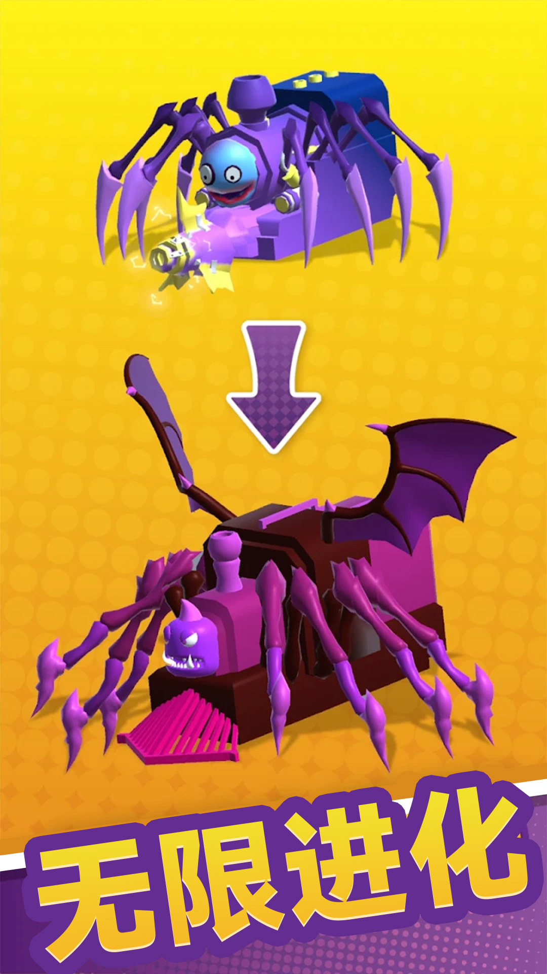 成为蜘蛛火车怪物,吃掉字母王国的所有记忆。跑去召集一支蜘蛛火车小队,与字母王国的战士们战斗。立即与蜘蛛怪物群一起入侵字母王国!通过在路上收集蜘蛛火车怪物并将它们全部合併来增强你的小队。击败所有敌人!