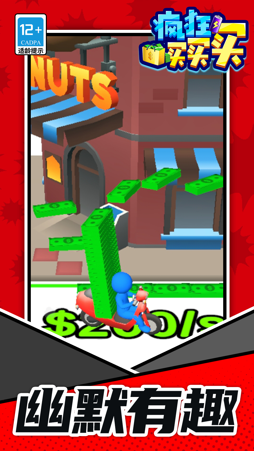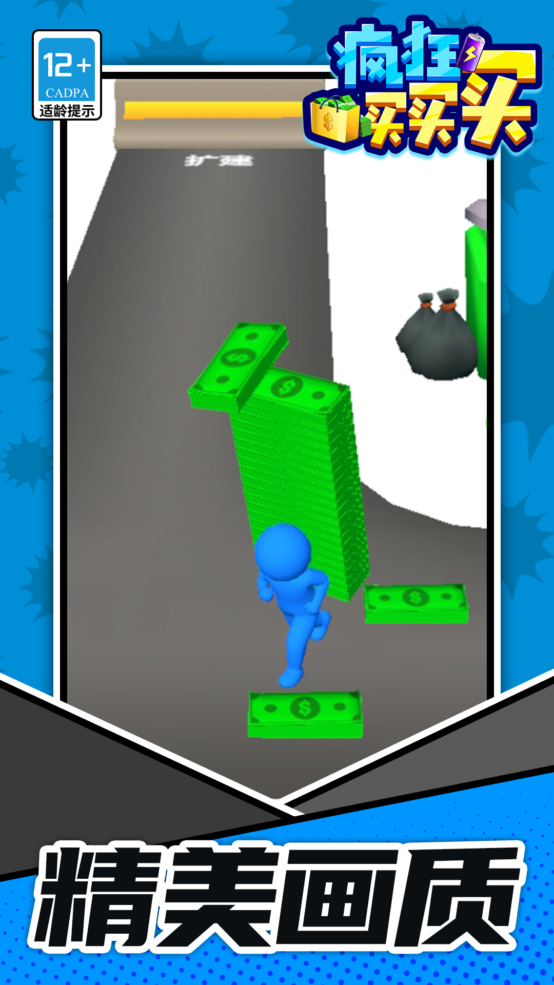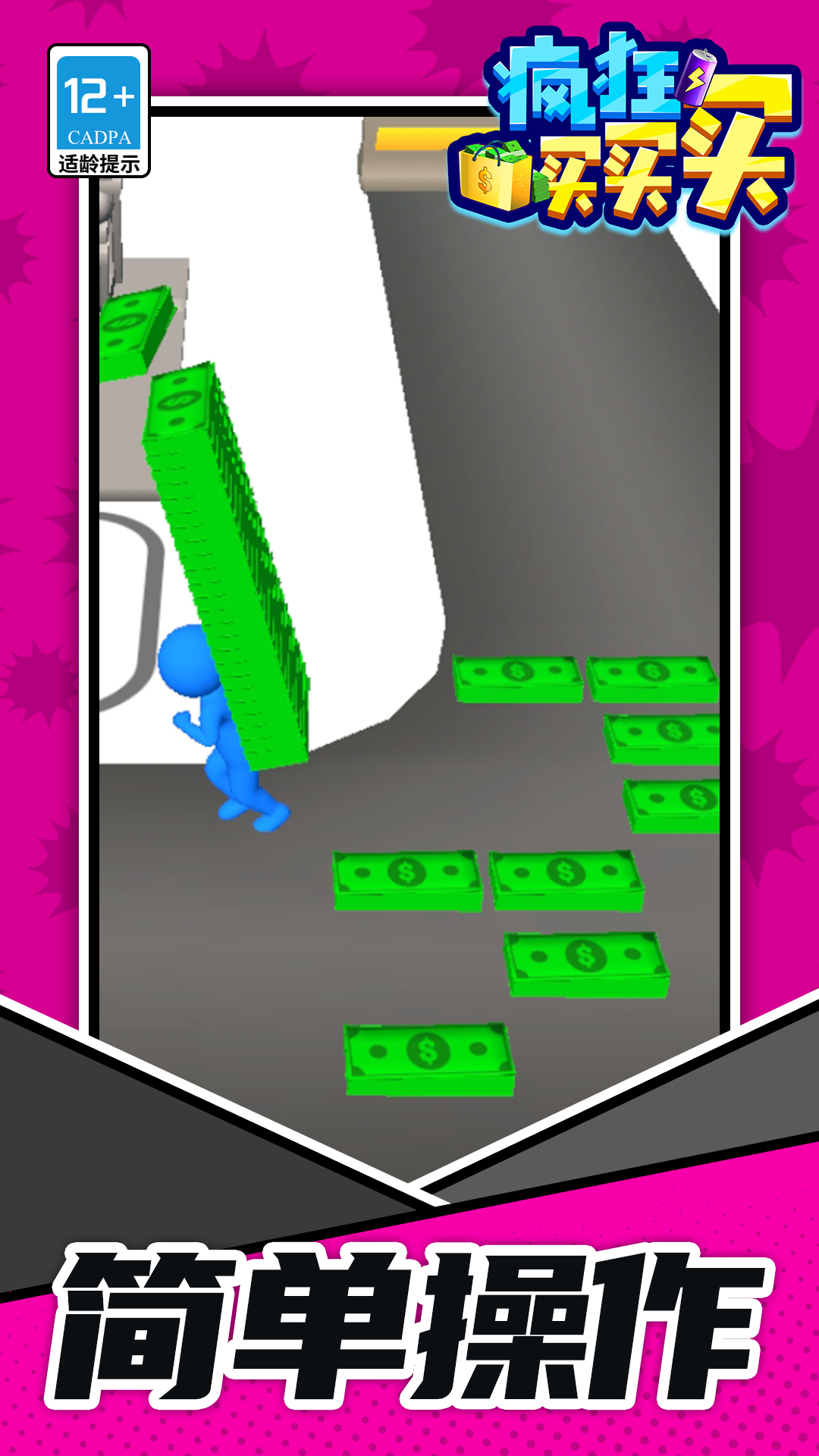 《疯狂买买买》是一款模拟经营休闲小游戏。玩家开局需要收集在街道的钞票,提升经济实力来购买地块解锁各种商业设施和开启新区域,被解锁的商业设施会产生丰厚的收益租金;玩家还可以升级个人属性以及商业区域,提升城市的繁华程度。一起来买地块,创造属于你的商业帝国吧!