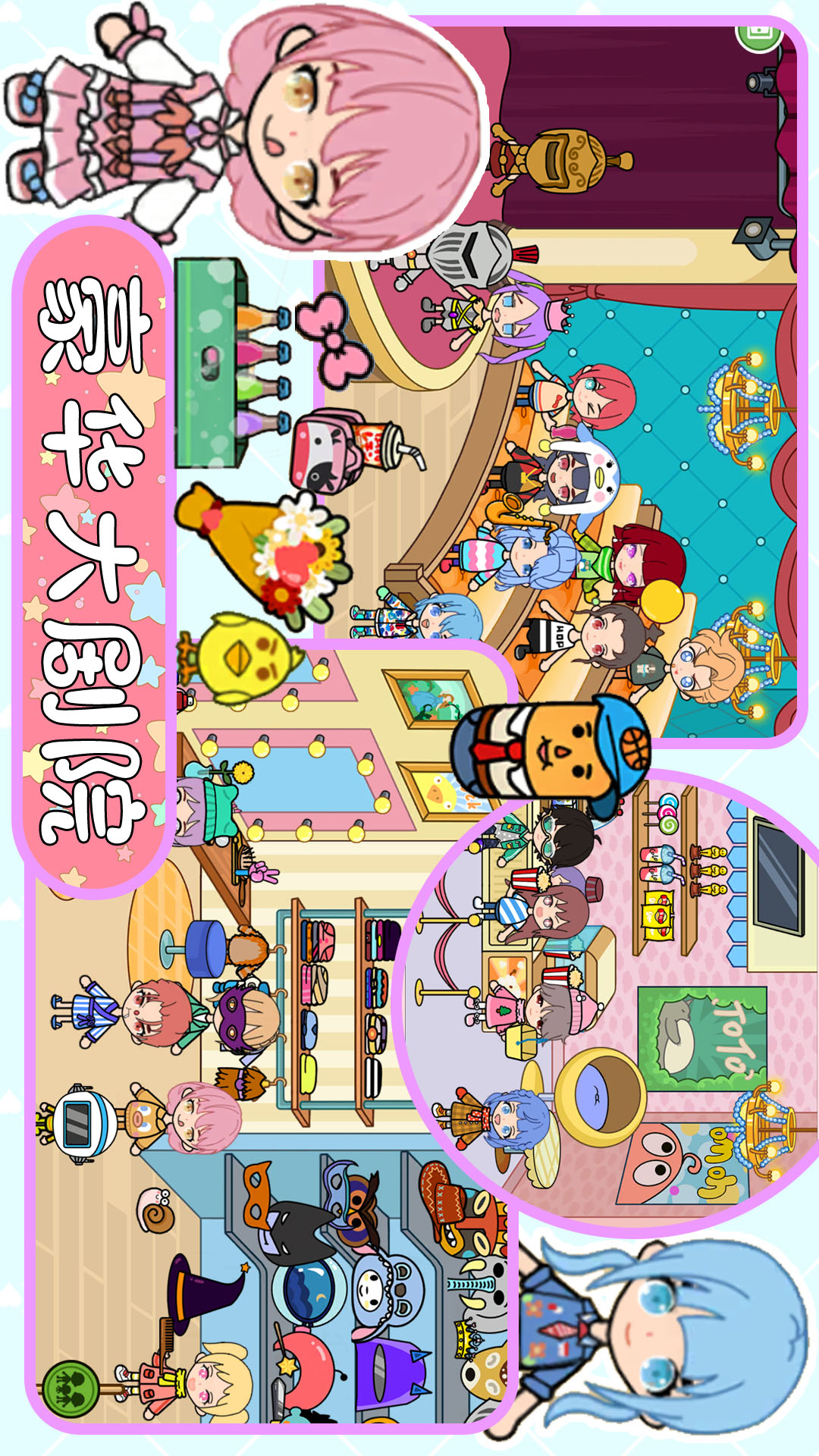 公主欢乐探险世界,你可以搭建自己的理想世界,并创作出自己更好的故事。在里面寻找隐藏的宝藏,上百亿种脸型搭配,随心所欲的服饰组合!探索全新城市,这就是创建自己欢乐探险世界哦!
