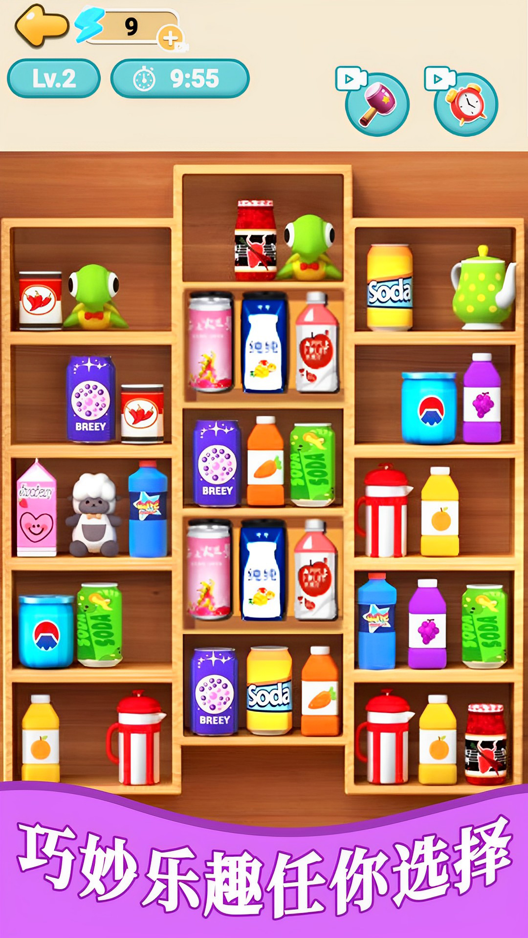购物一时爽,一直购物一直爽,面对一筐筐杂乱无章的超市战利品,你的冰箱还好吗?刚刚完成超市购物的你,已经回到家准备去填满你的冰箱了吗?我超爱整理冰箱的~现在开始使用不同的物体、杂货、饮料和更多的物品在冰箱货架上进行填充吧,并尝试把它们全部装进去。一个接一个地清空你的购物篮,找到完美的位置进行分类和冰箱补货,你想怎么做都行!