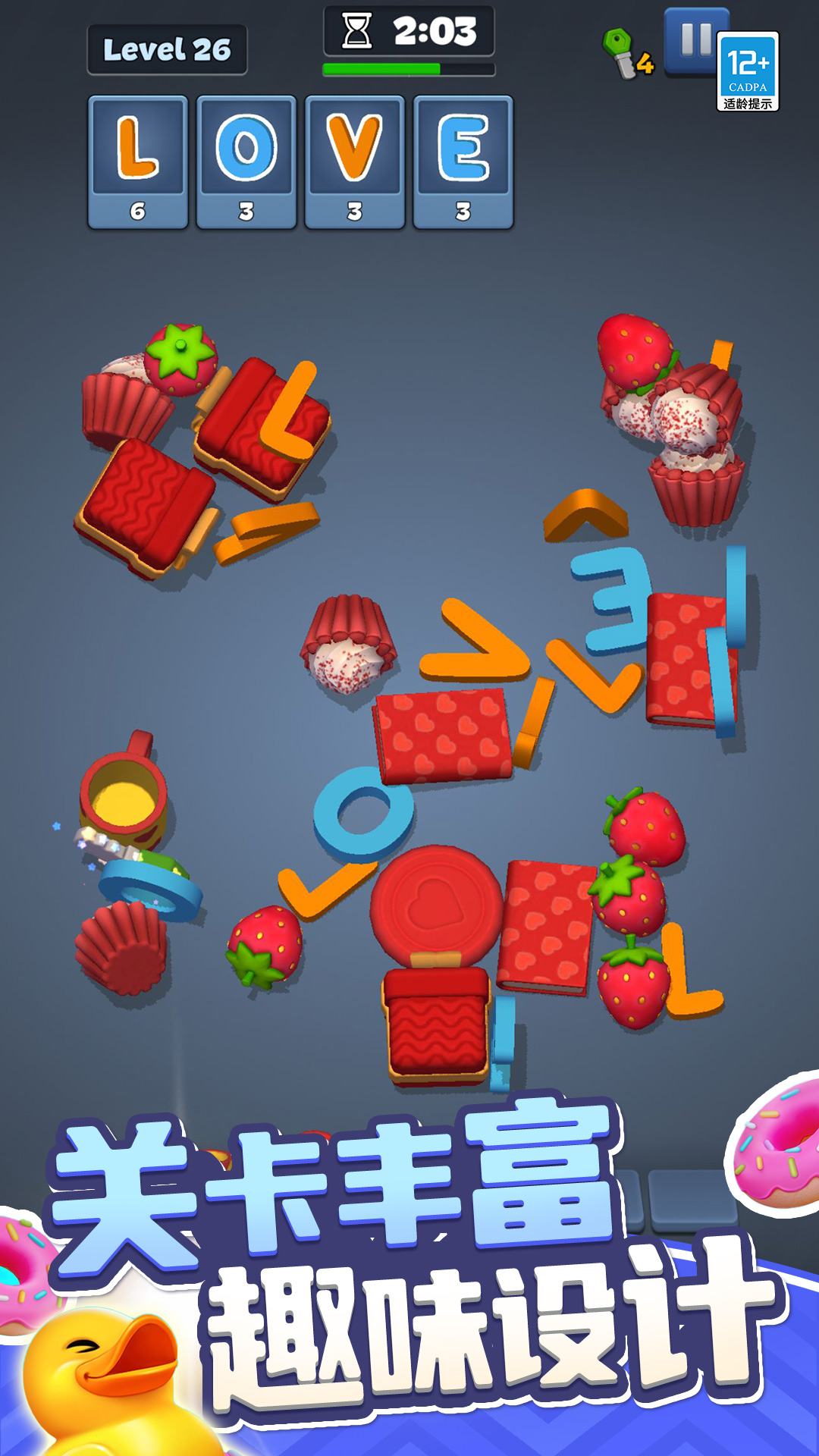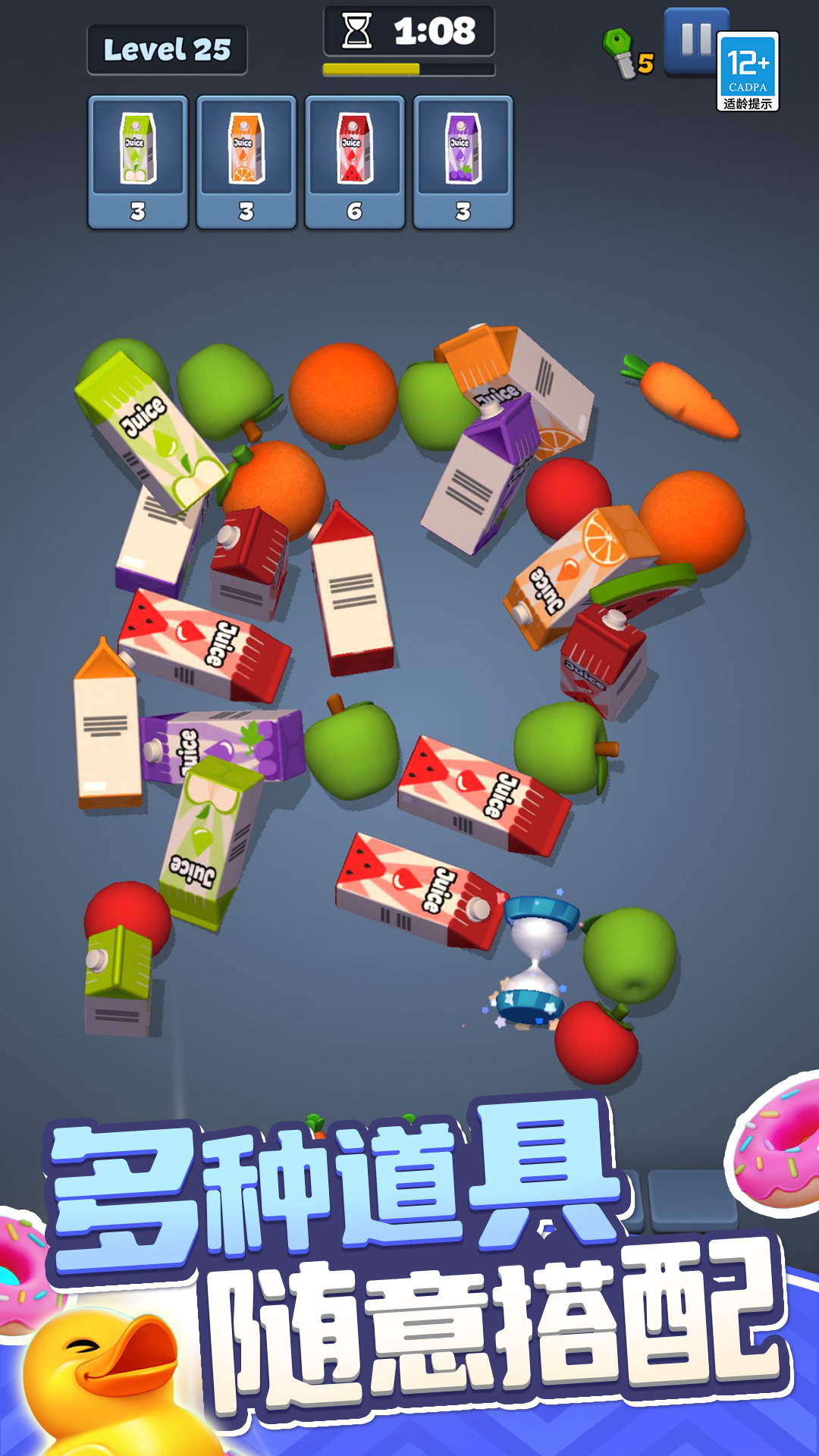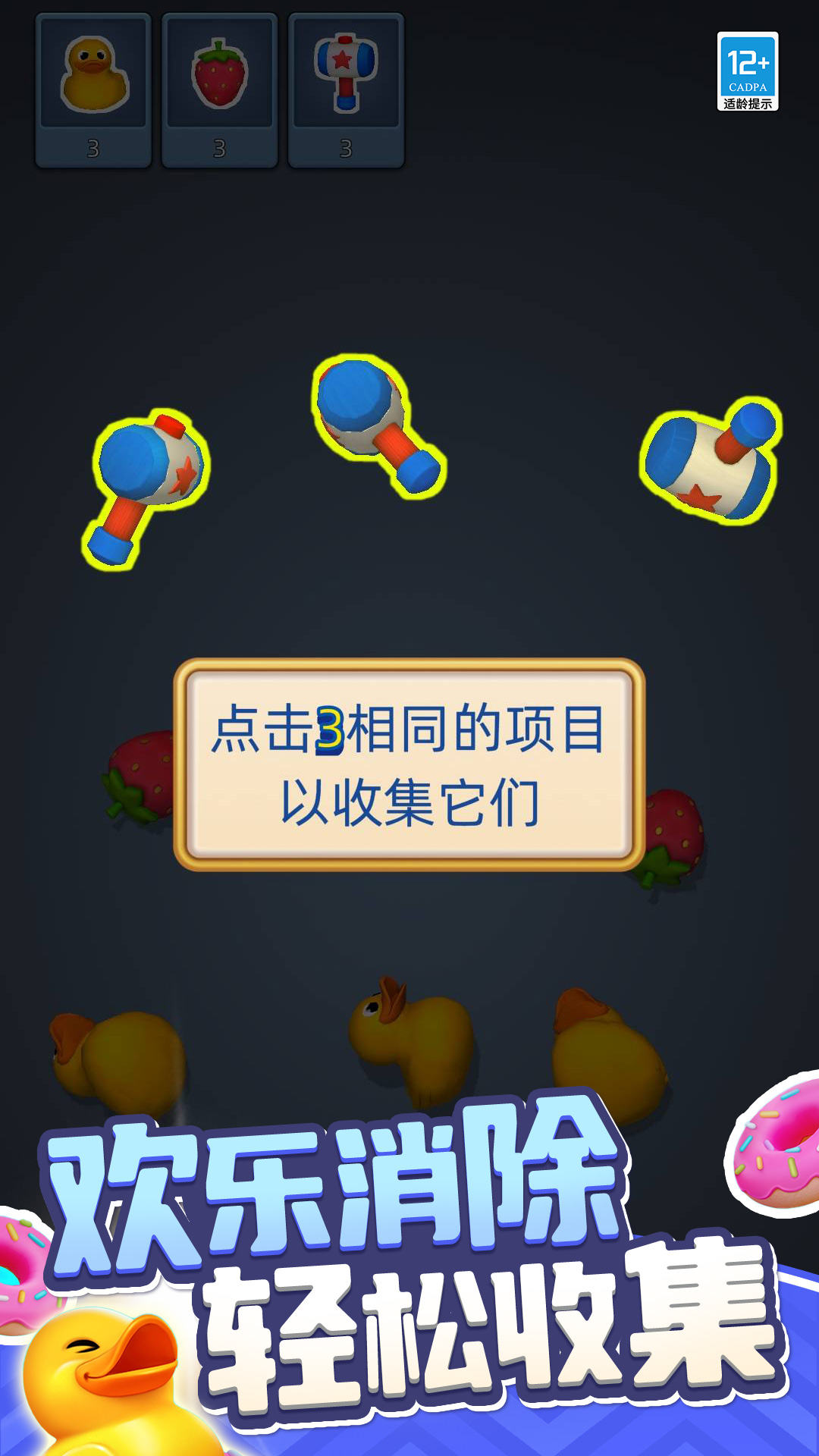 大家来消除,操作简单,物品与色彩鲜明易分辨!