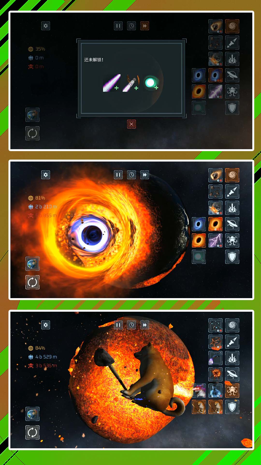 游戏中的核心玩法——创造与毁灭,更是让人欲罢不能。通过收集资源,你可以建造庞大的星际帝国,发展科技,壮大军队。当你的实力达到一定程度时,便可以释放黑洞之力,吞噬一切敌人,成就宇宙霸主的传奇!