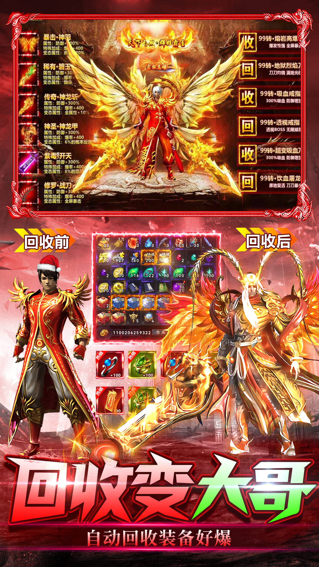 极品装备不再是土豪专属。只要触发幸运大爆,任何怪物都有概率掉落高品质的装备。专门设计回收装备增加“幸运大爆”次数机制。
