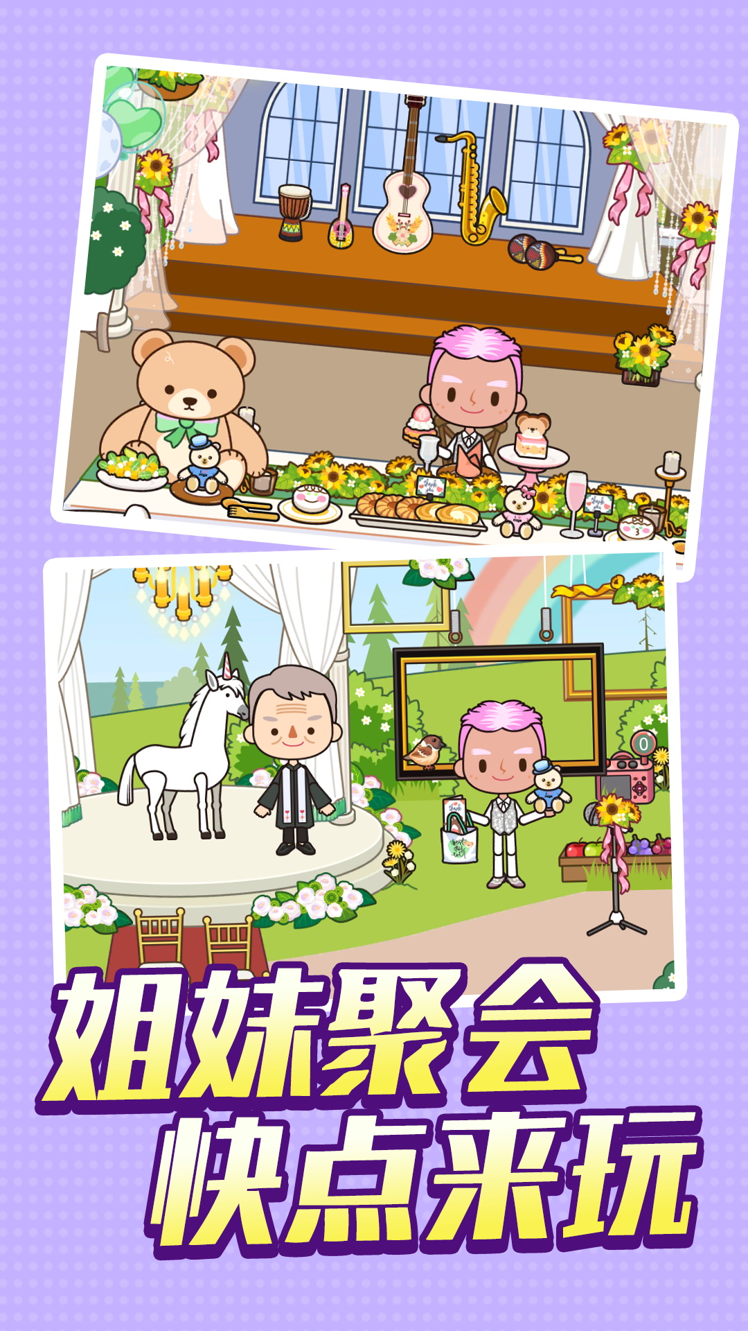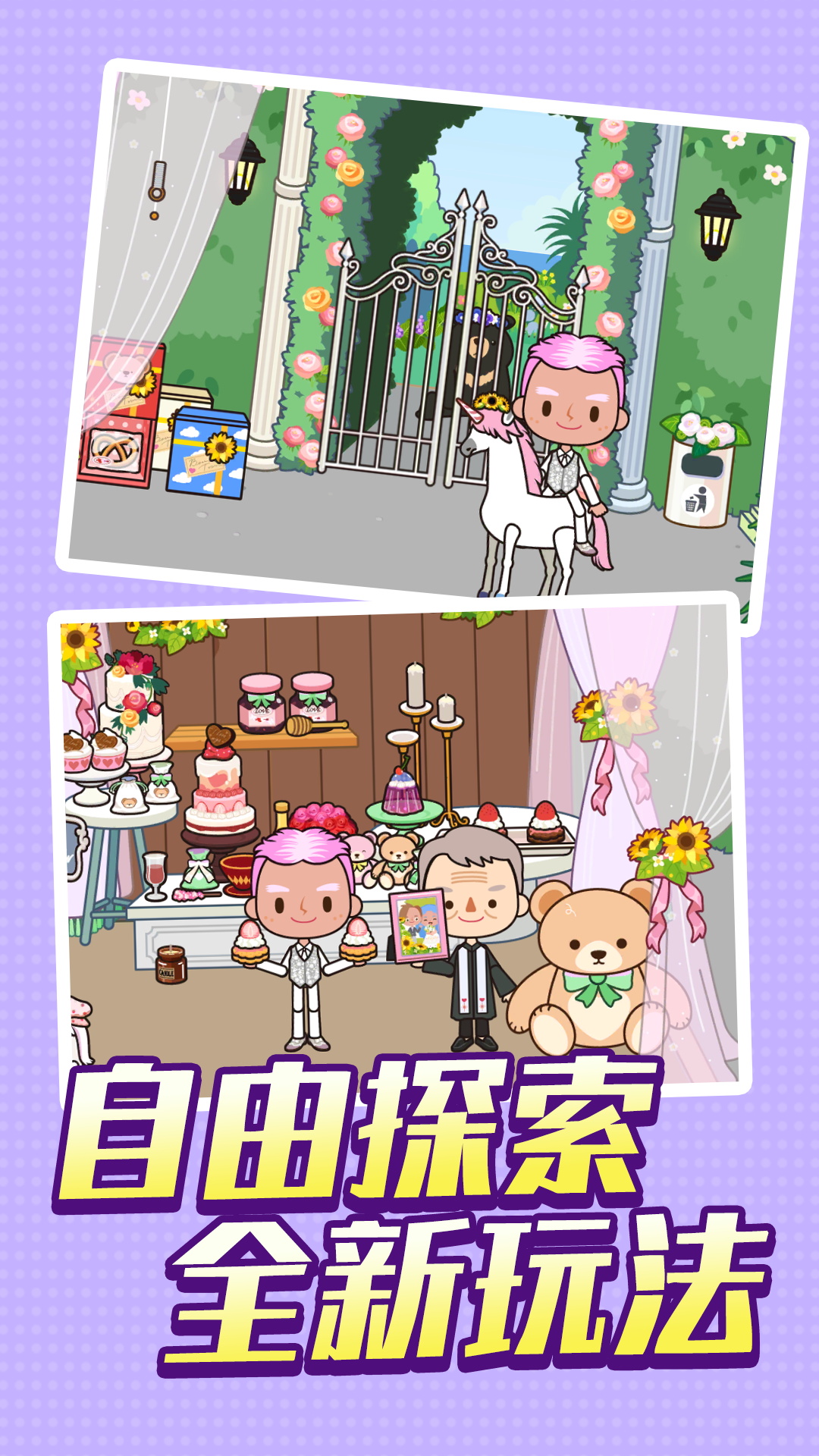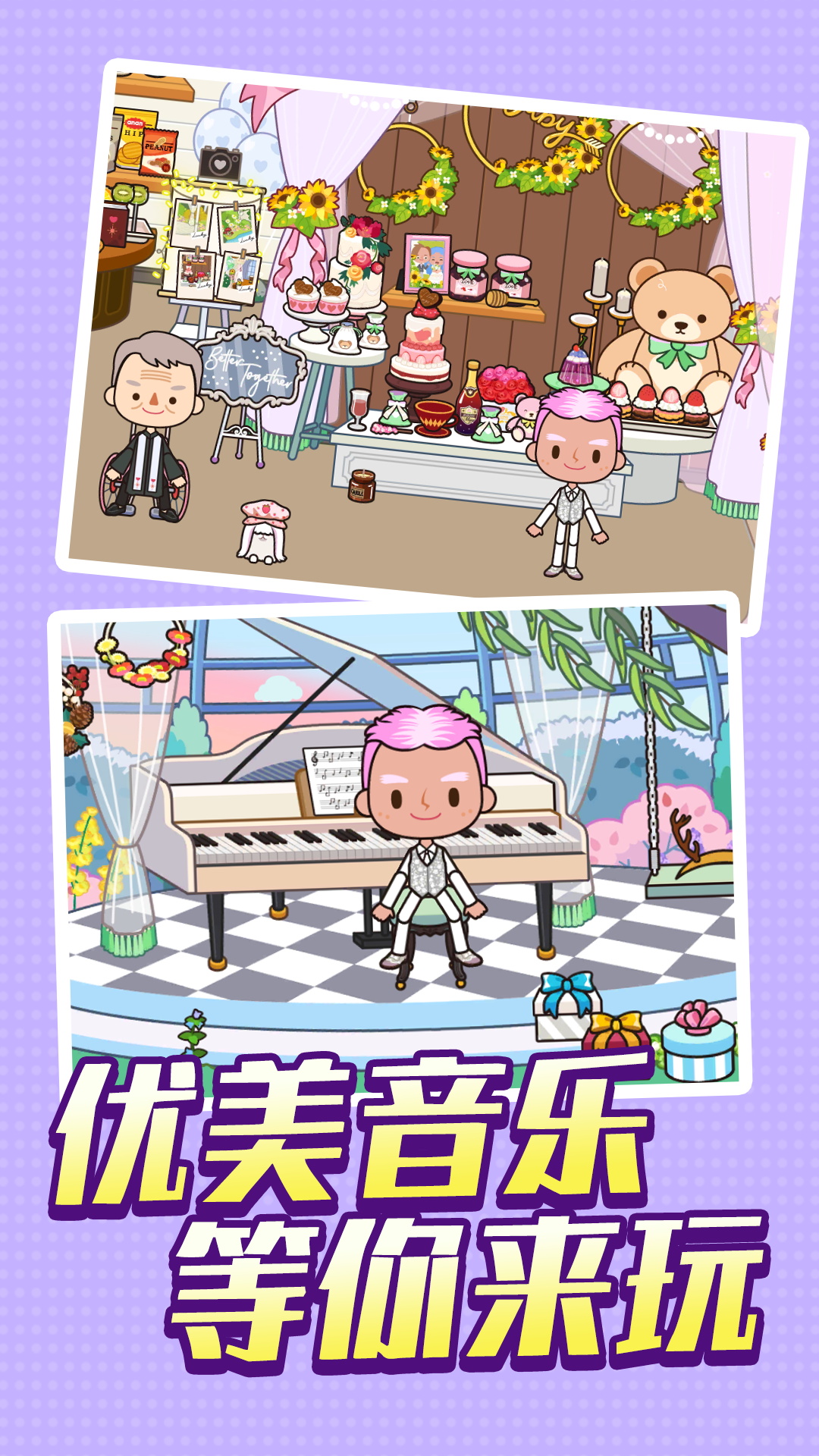 快乐人生模拟器是一款全新的开放式模拟游戏,可让您建设的地盘,为自己创造更好的故事。在游戏中,您可以探索城市场景并与其中的所有物品互动。例如,在厨房里,您可以从冰箱中取出食物、在烤箱中烹饪、打开和关闭所有门等等。不仅如此,您还可以与人物互动:更换他们的衣服、添加化妆品和有趣的帽子、给他们换衣服或让他们拿着物品。您可以在游戏里发挥您的想象力,创造您自己的故事。