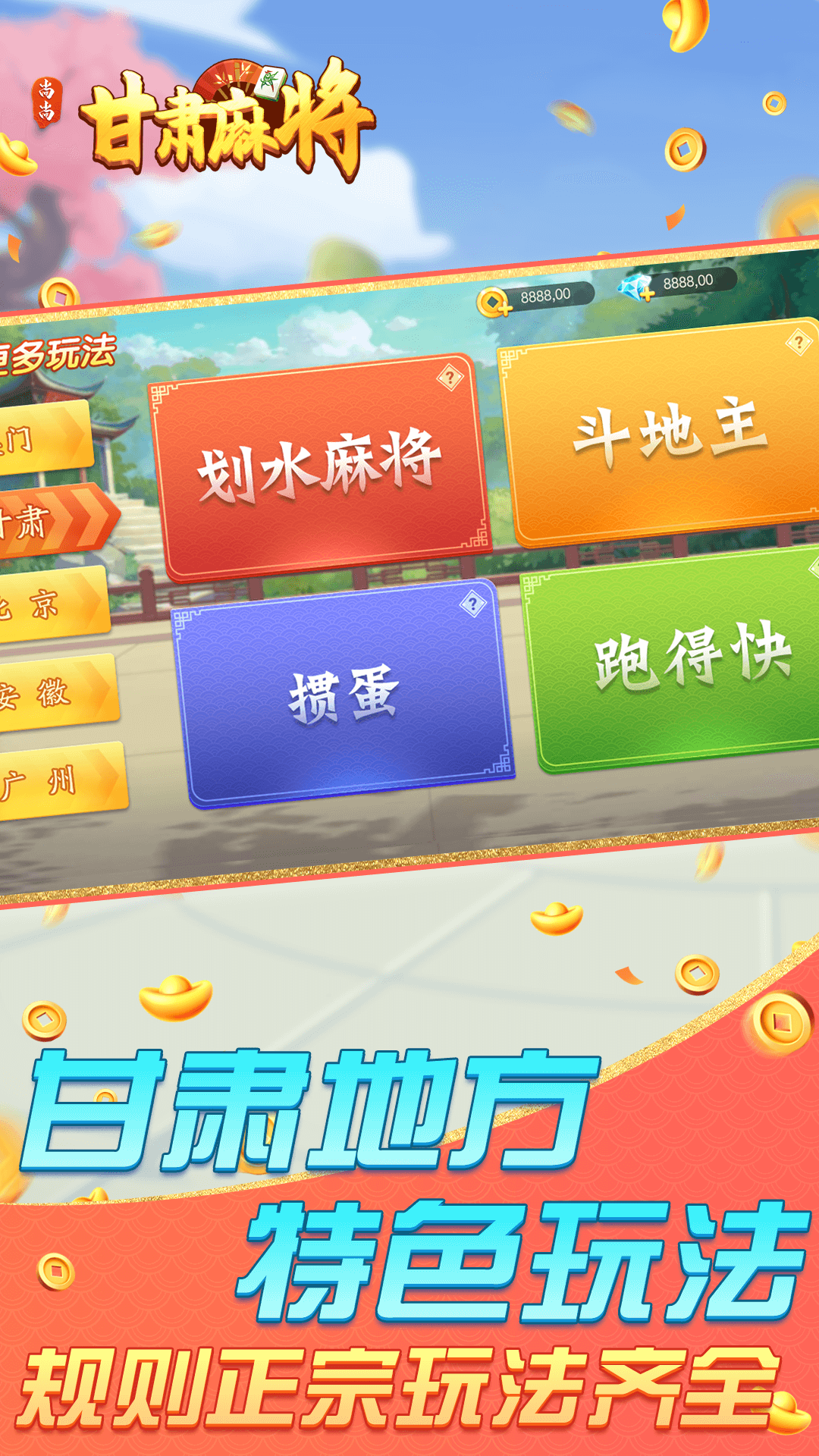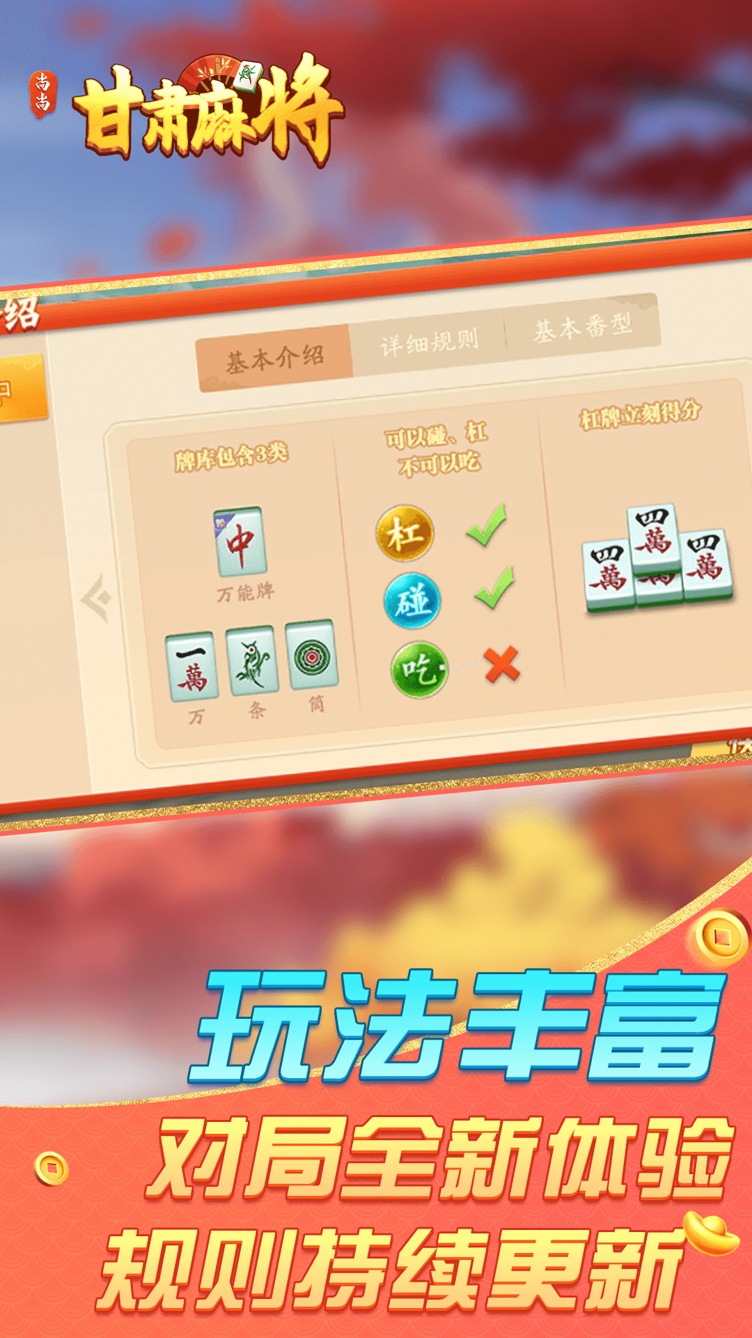 全国火热的甘肃麻将,包含血流红中、血流成河、血战到底等多种经典玩法。可以好友对战,也可全国匹配,快来体验吧。