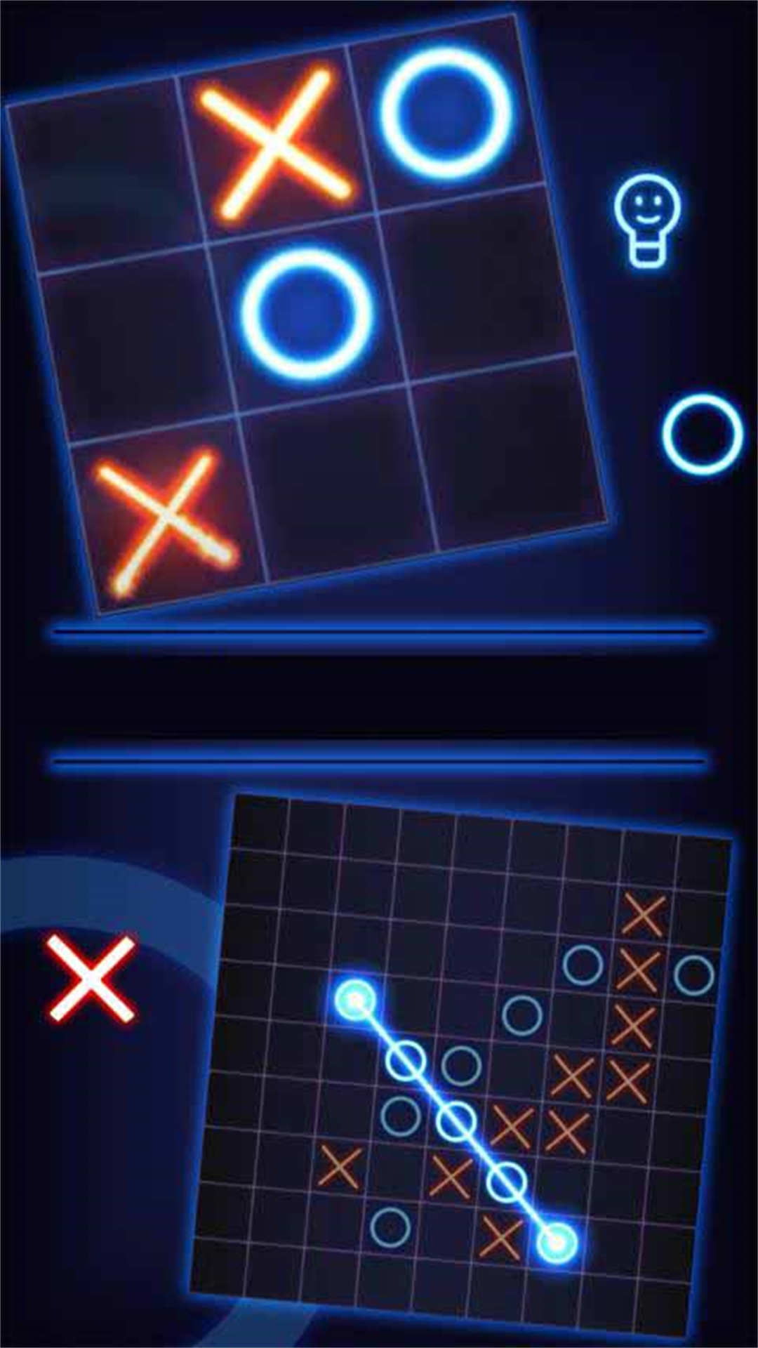 井字游戏是一款非常好玩的井字棋类游戏,简单的游戏规则,轻松容易上手,操作非常简单,喜欢这种类型的游戏千万不要错过,快来下载试试吧。一款益智游戏,它调节你的打法,高深莫测。不同于其他井字脚趾市场上的游戏,你总能找到发光井字AI要新鲜和有趣。