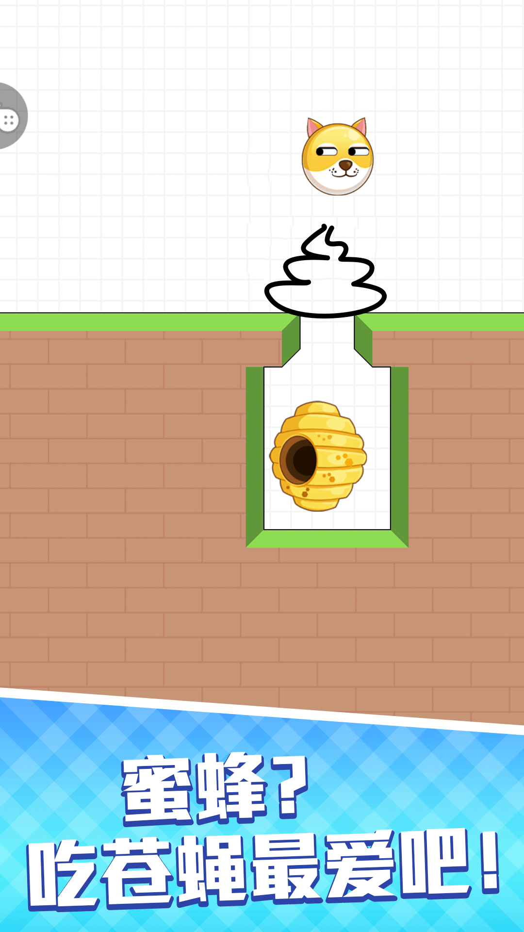 小心!可爱的狗有危险。邪恶的蜜蜂出来蜇他。拯救这只狗的方法是画一条线来阻止那些蜜蜂。