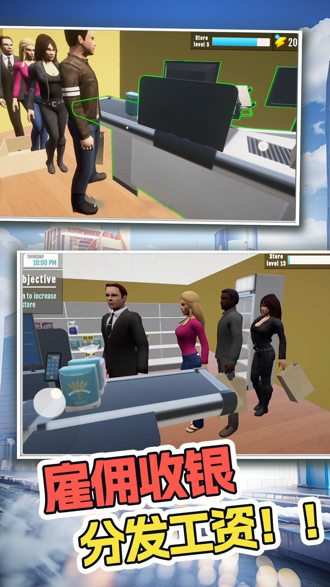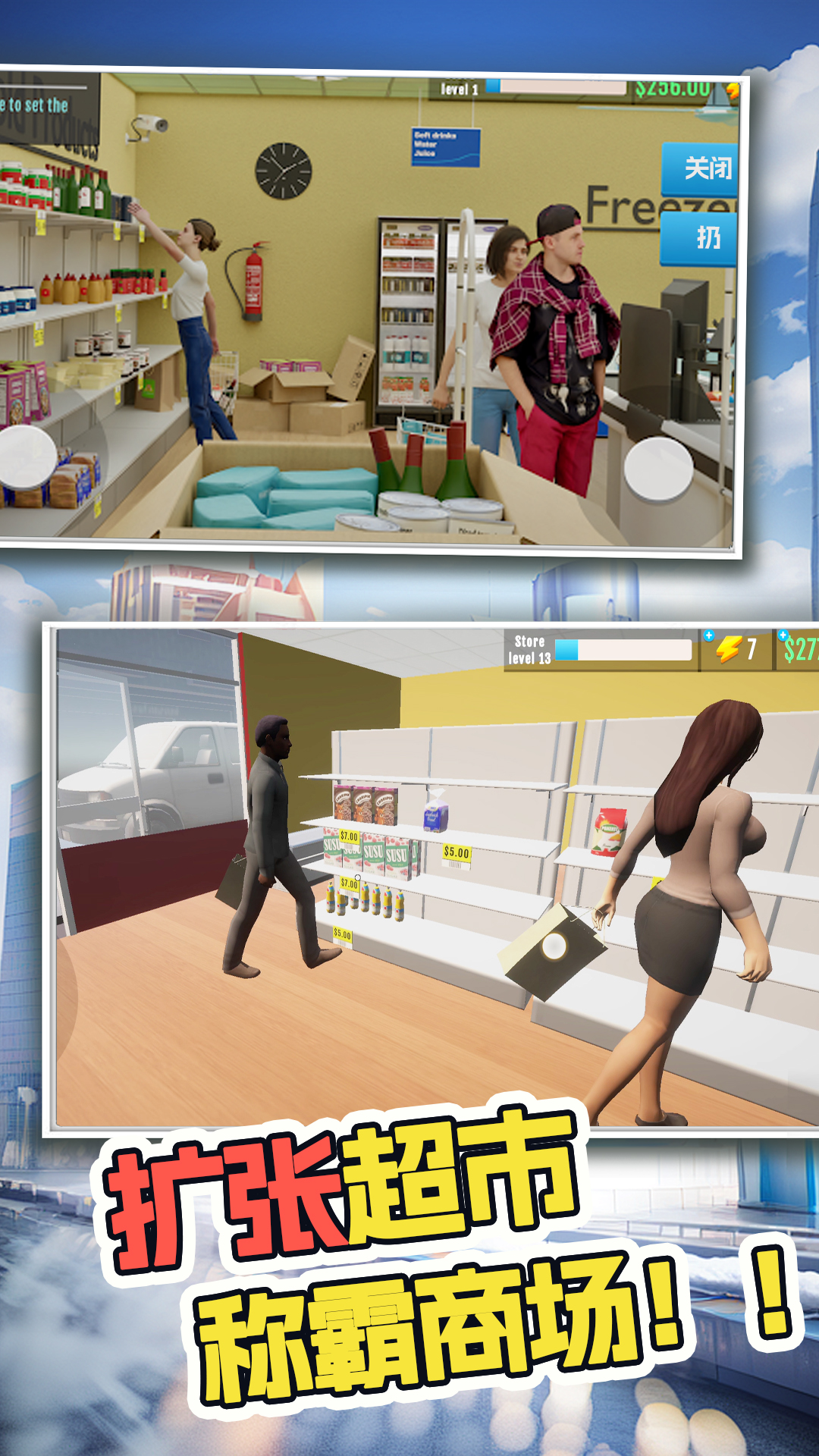 进入游戏中,拿到创业资金扩大您的商店,使其更大并提供特别的服务。创建促销活动并设置有竞争力的价格,以便商品快速销售。处理现金和卡付款,并提防小偷。你还需要保护以防止任何小偷从您的商店偷东西。随着时间的推移,要对超市进行翻新、粉刷墙壁或悬挂新的灯具和装饰品。您将在超市模拟器的开放世界中完成这一切,不要破产,实现真正的财富进化。