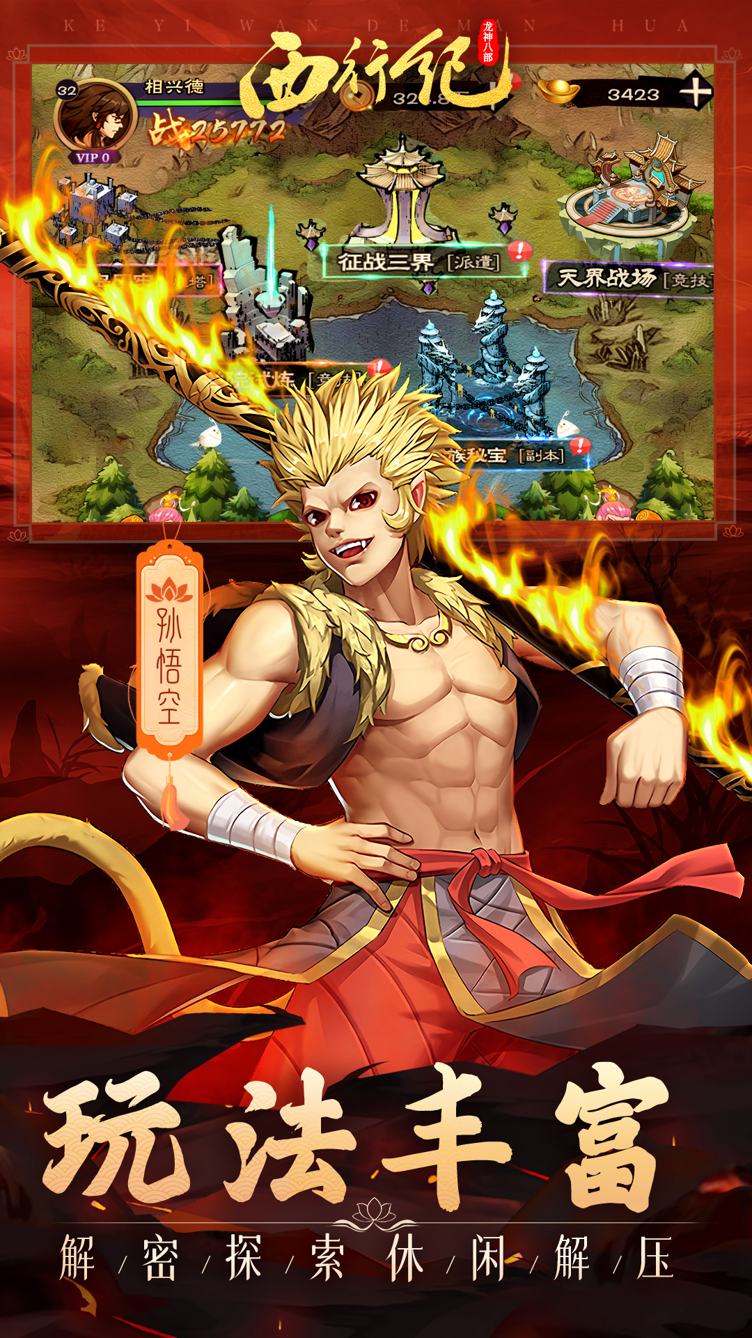 还原经典国漫《西行纪》,让你沉浸式体验漫画剧情,遨游于天界战场、浮岛囚牢、穷奇水道等经典场景,降妖除魔、披荆斩棘一路向西而行。