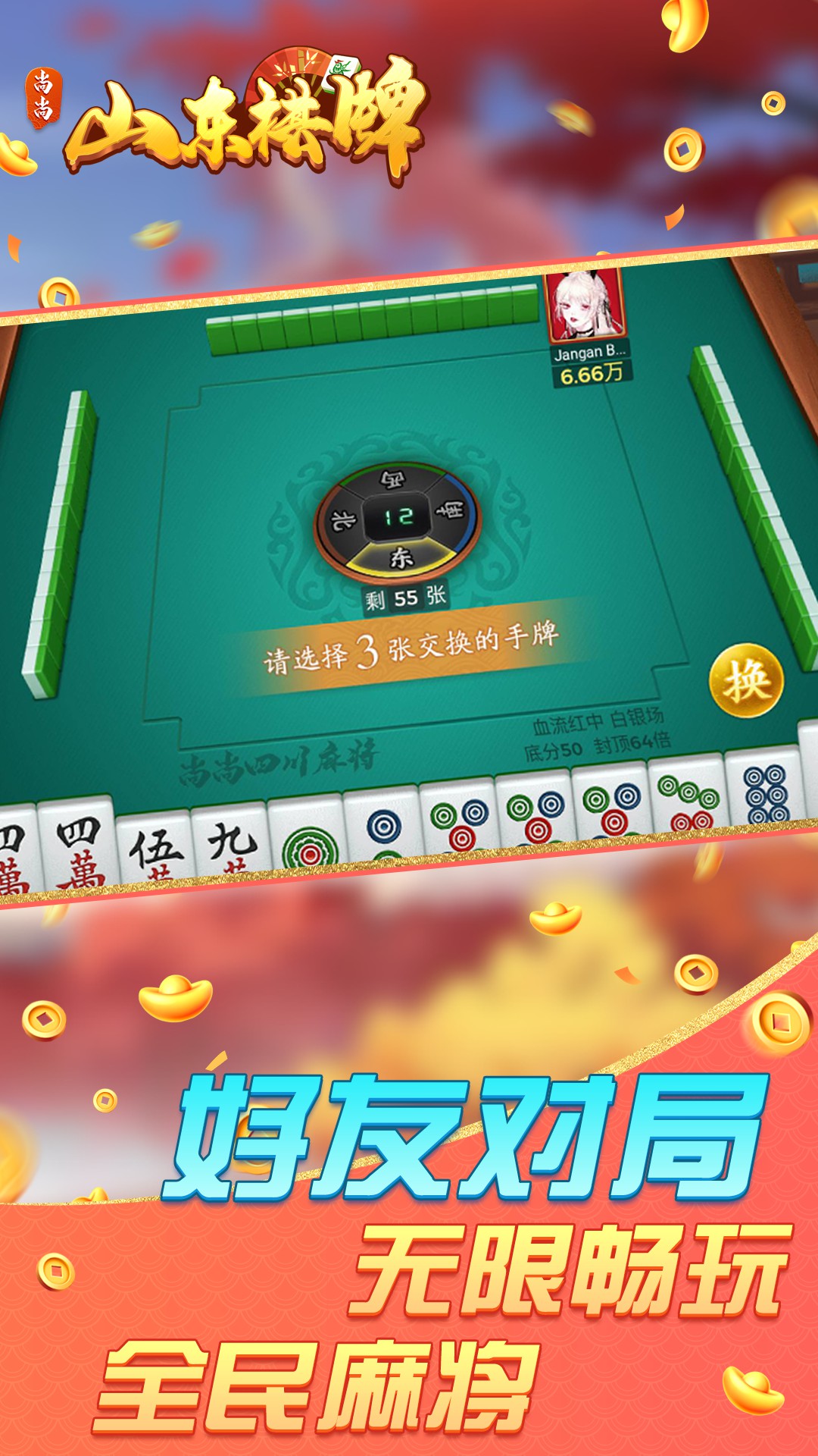 全国火热的山东棋牌,包含血流红中、血流成河、血战到底等多种经典玩法。可以好友对战,也可全国匹配,快来体验吧。