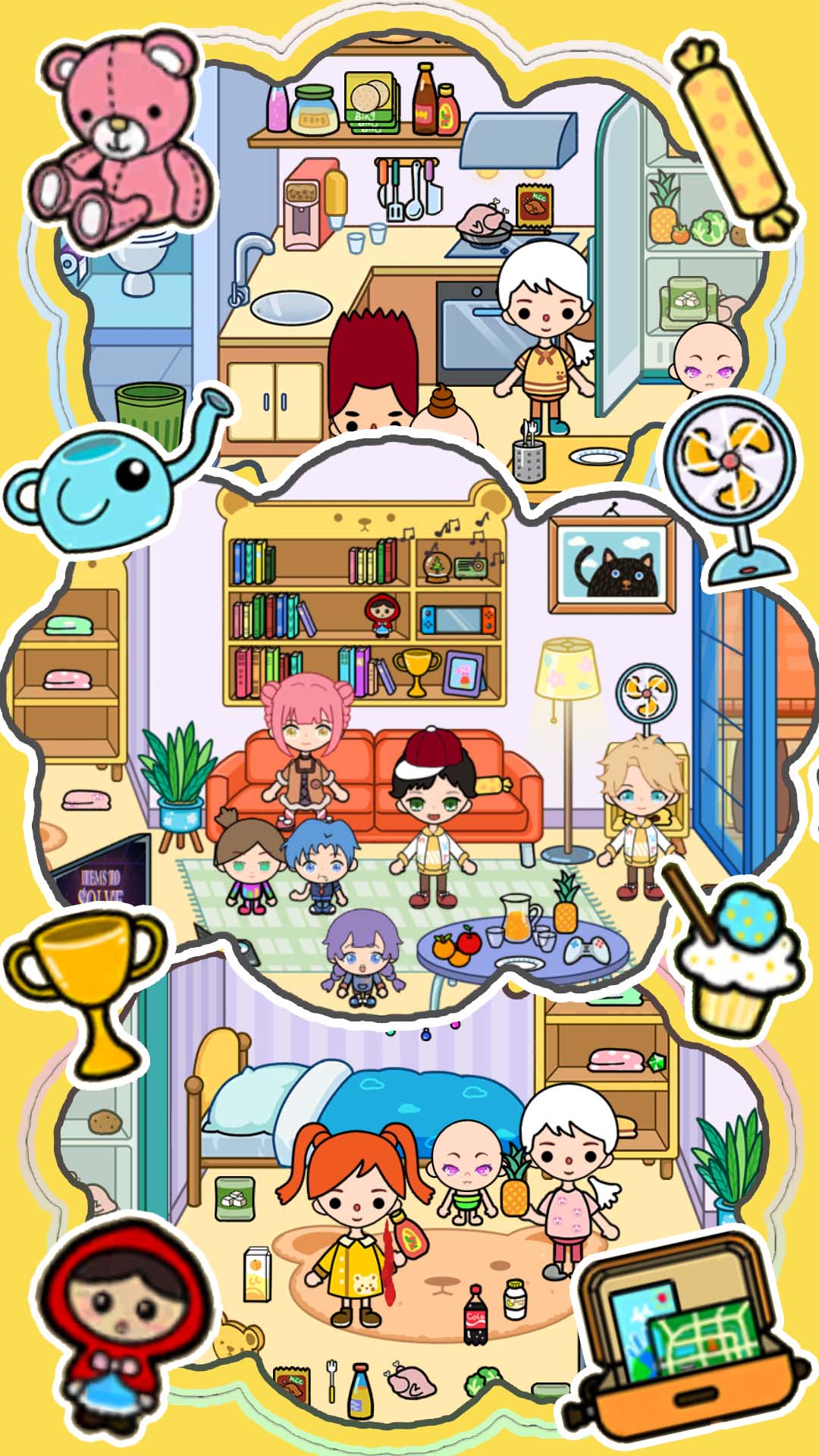 鼓励好奇心和探索。孩子们可以创造自己的场景和方式来玩可以在商店中找到或创建的数千种物品。与您的孩子一起玩耍,调节转化为学习的过程,或者只是开怀大笑。为您的孩子创建和设置有趣的任务和例程,尝试物品,发现新的游戏方式,并学习新单词。