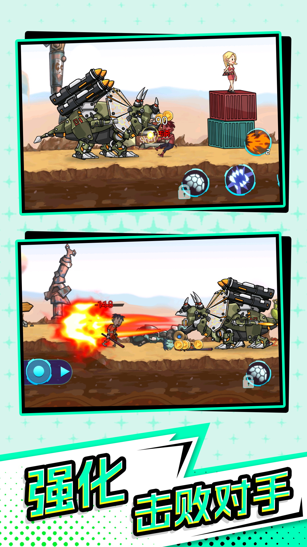 控制恐龙冒险,消灭路上的敌人