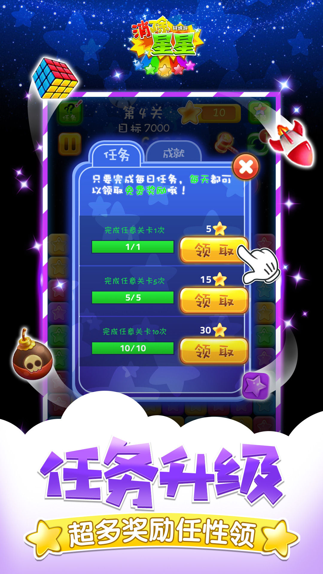 消除星星又叫消除星星,无需流量,操作简单,关卡丰富,游戏流畅。随时随地免费畅玩,天天爱消除,开心消消乐。