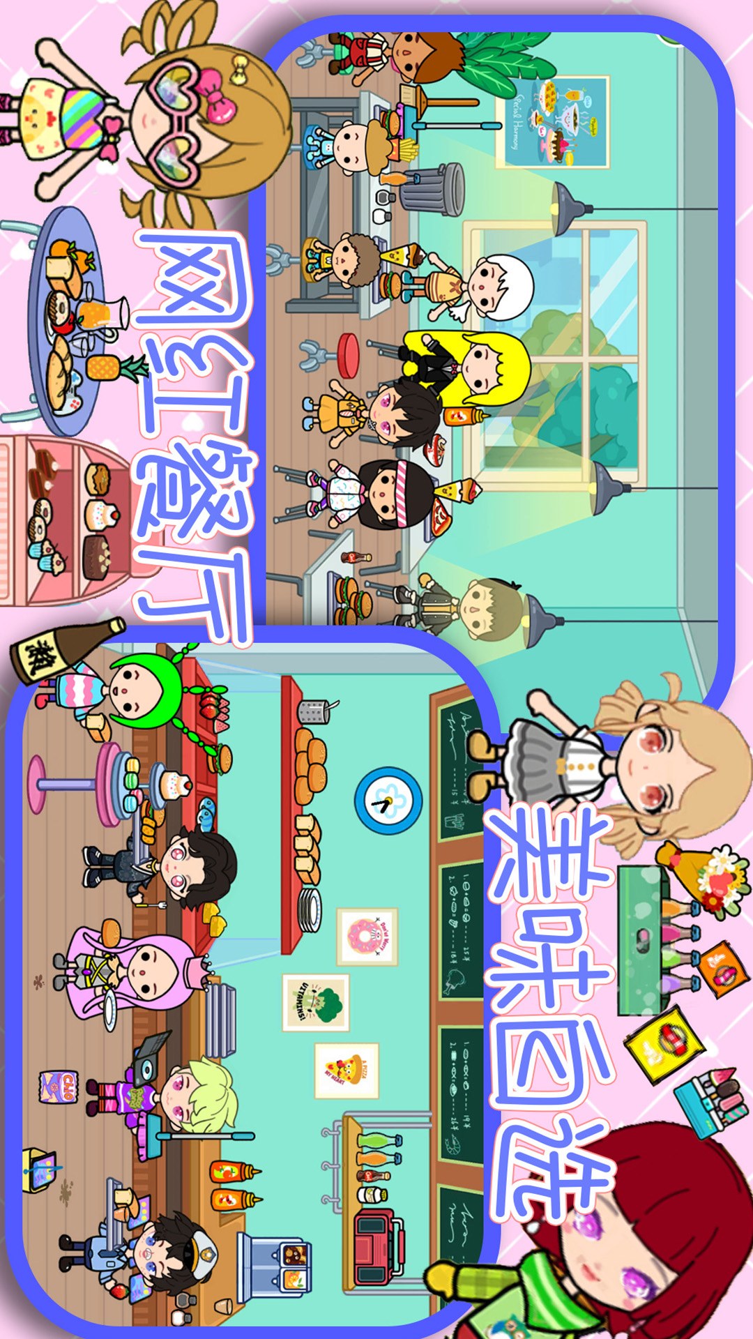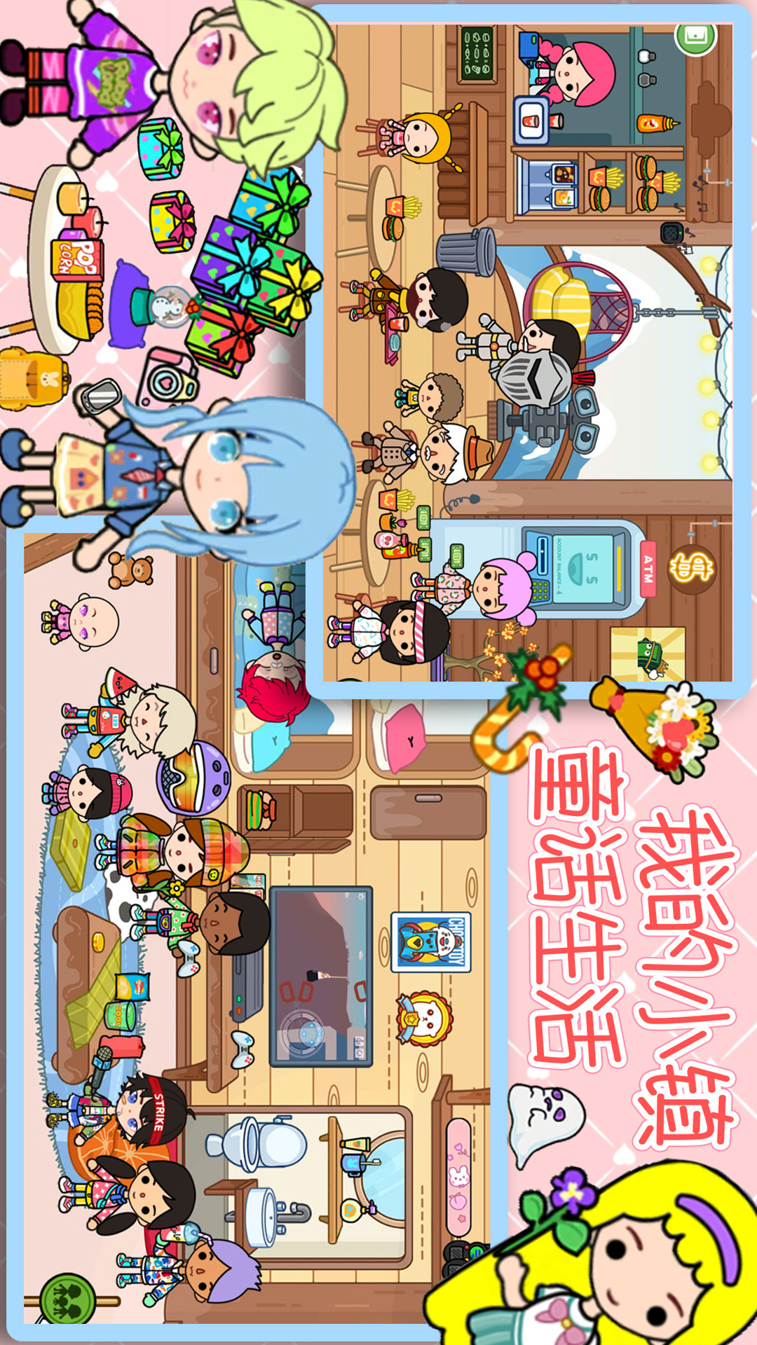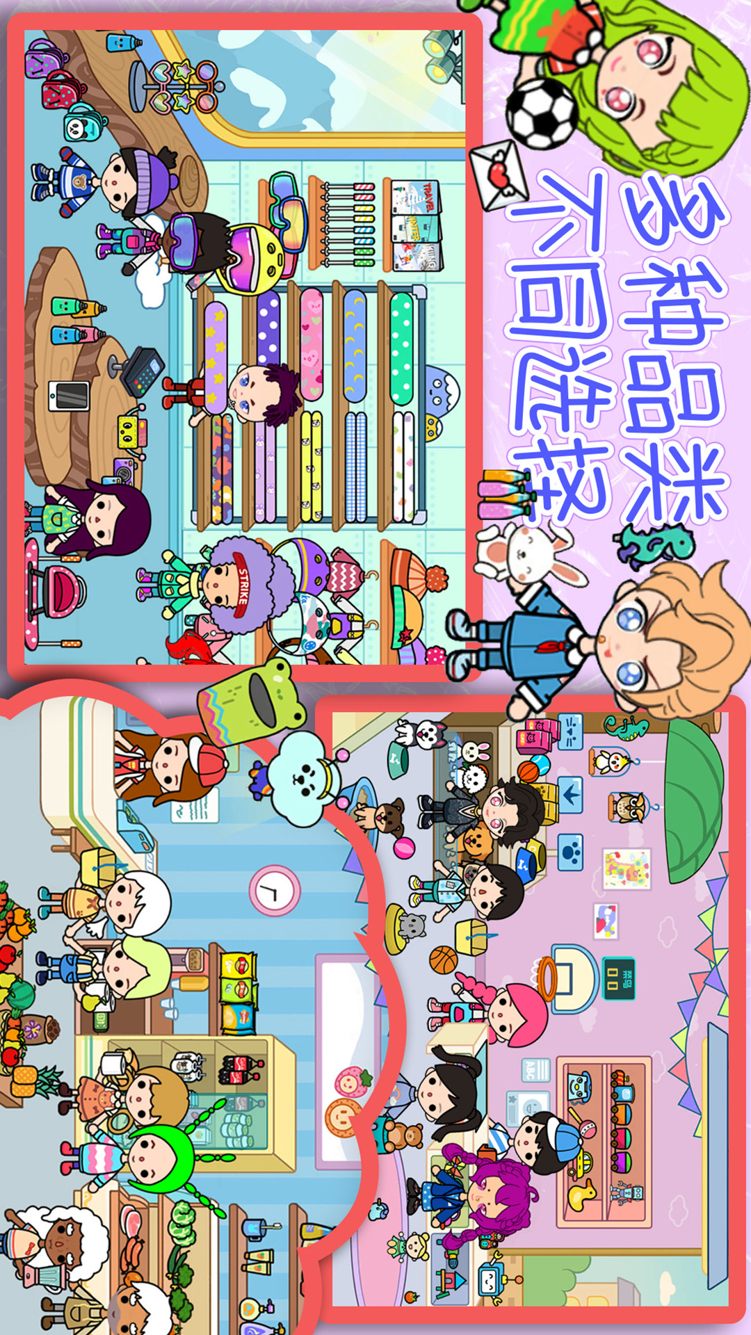 -百种场景:公主城堡、购物中心、游乐园、美装沙龙、水上乐园、度假区(海滩&小岛、观光区)等等......