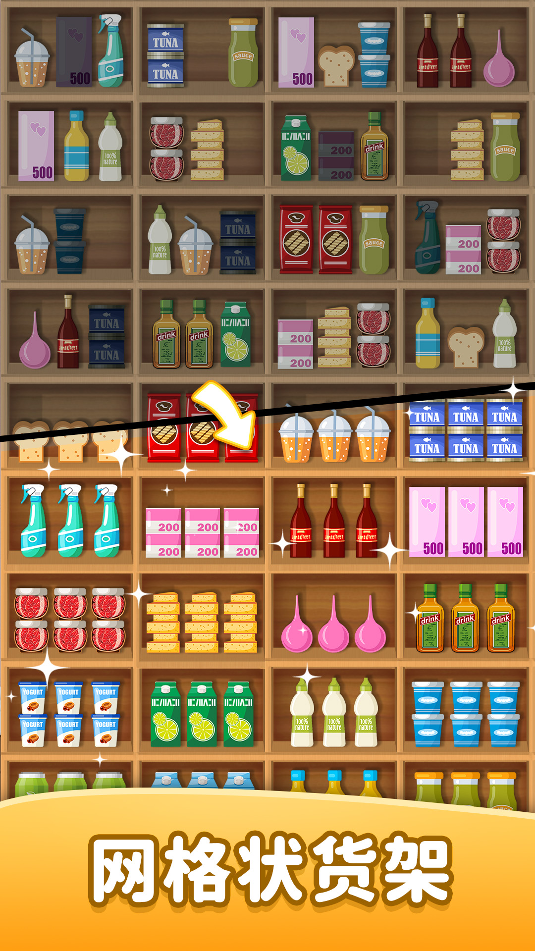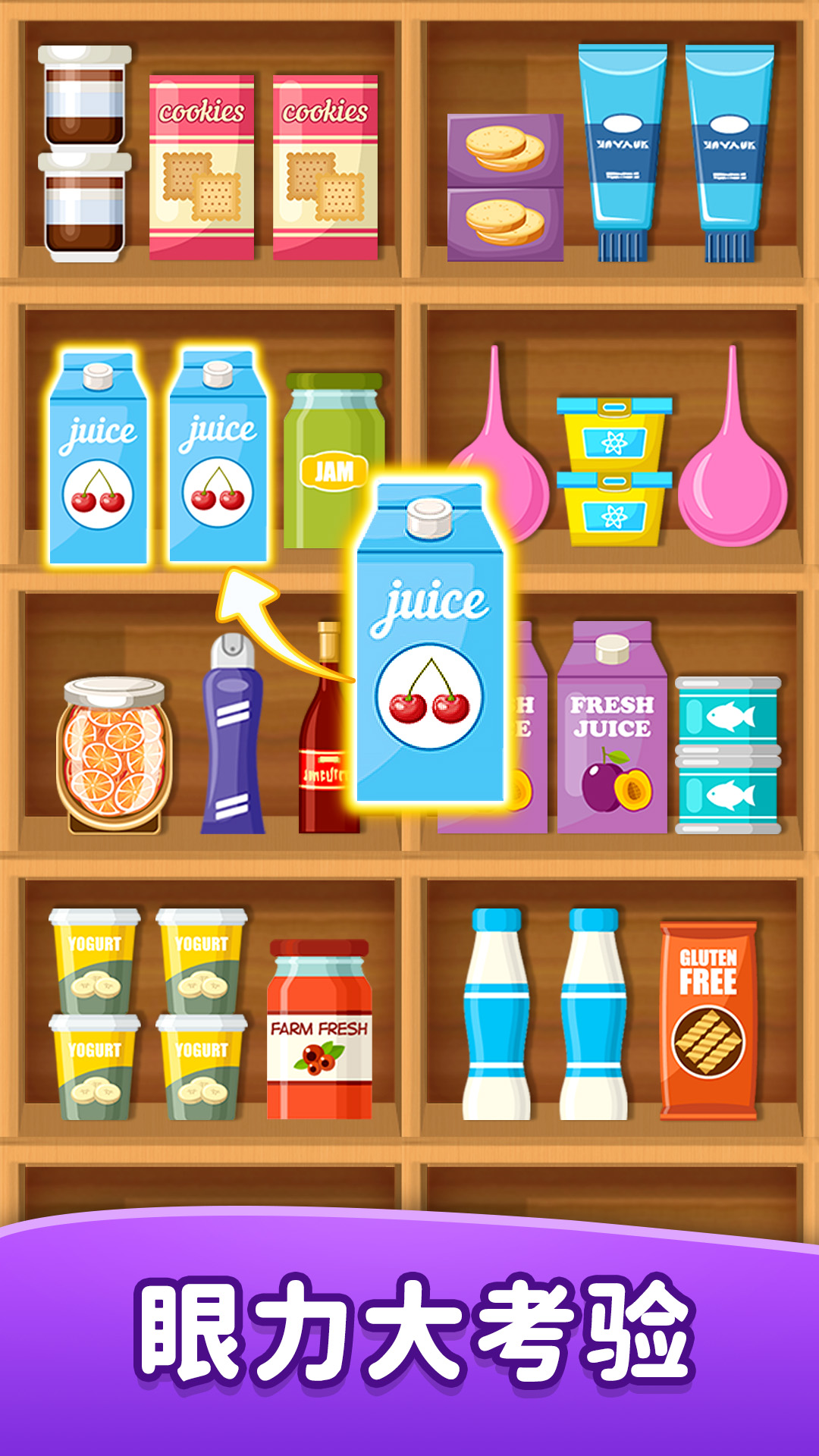这是一款能让你上瘾的休闲益智解压游戏。游戏设置了多个收纳盒,每个收纳盒只能容下3件物品,每次只能移动一件物品,当3个相同的物品放到一个盒子里就算收纳成功,在一定时间内所有物品归纳完成则挑战成功。