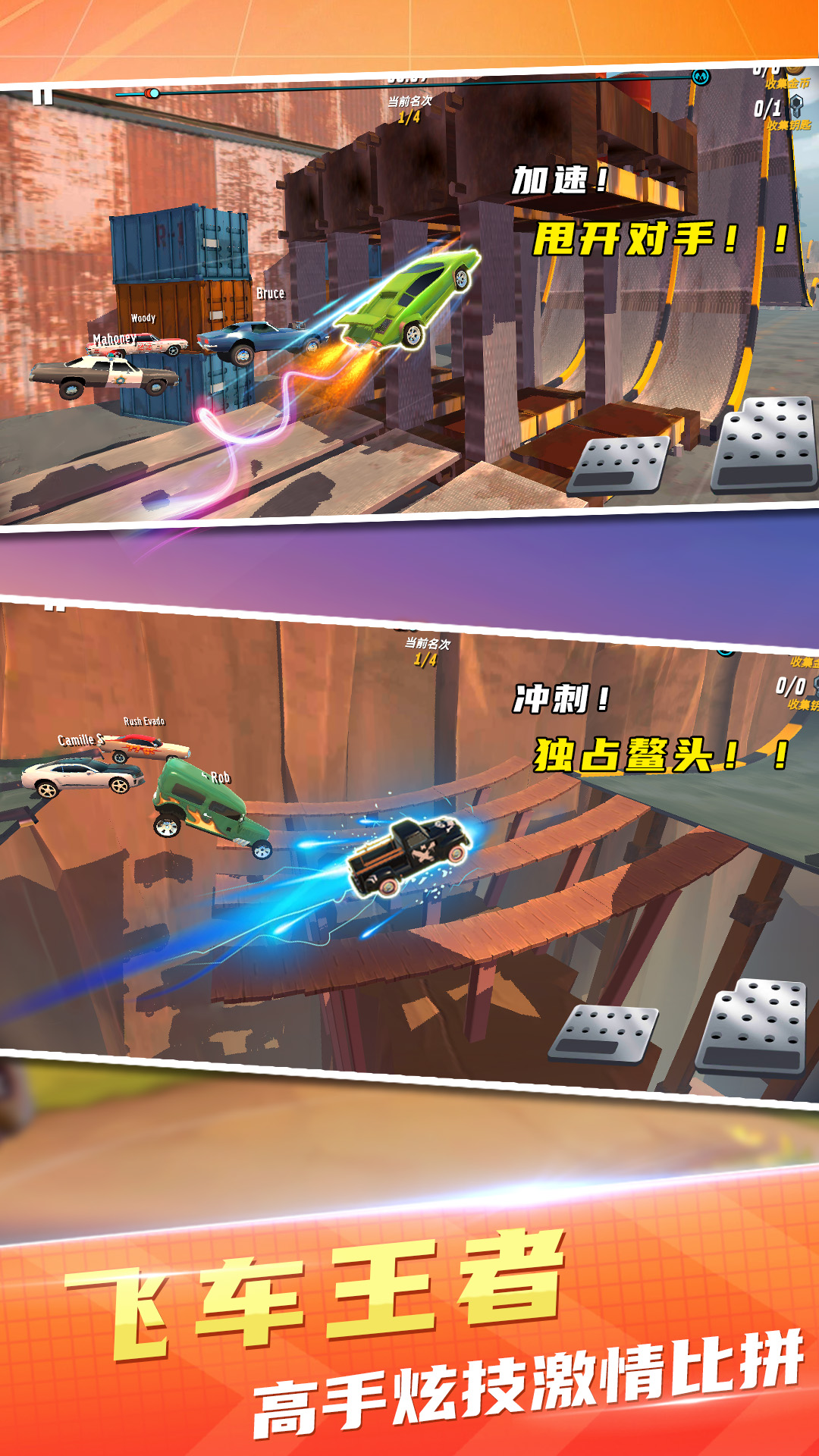 -超真实的3D场景让你直呼过瘾!猛踩油门在工业区滚滚岩浆里夺命狂奔,在高山悬崖上飞跃旋转,在海滩乐园、风车小镇中领略异域风情。操控酷炫的赛车腾空飞跃,冲击你的视觉感官!