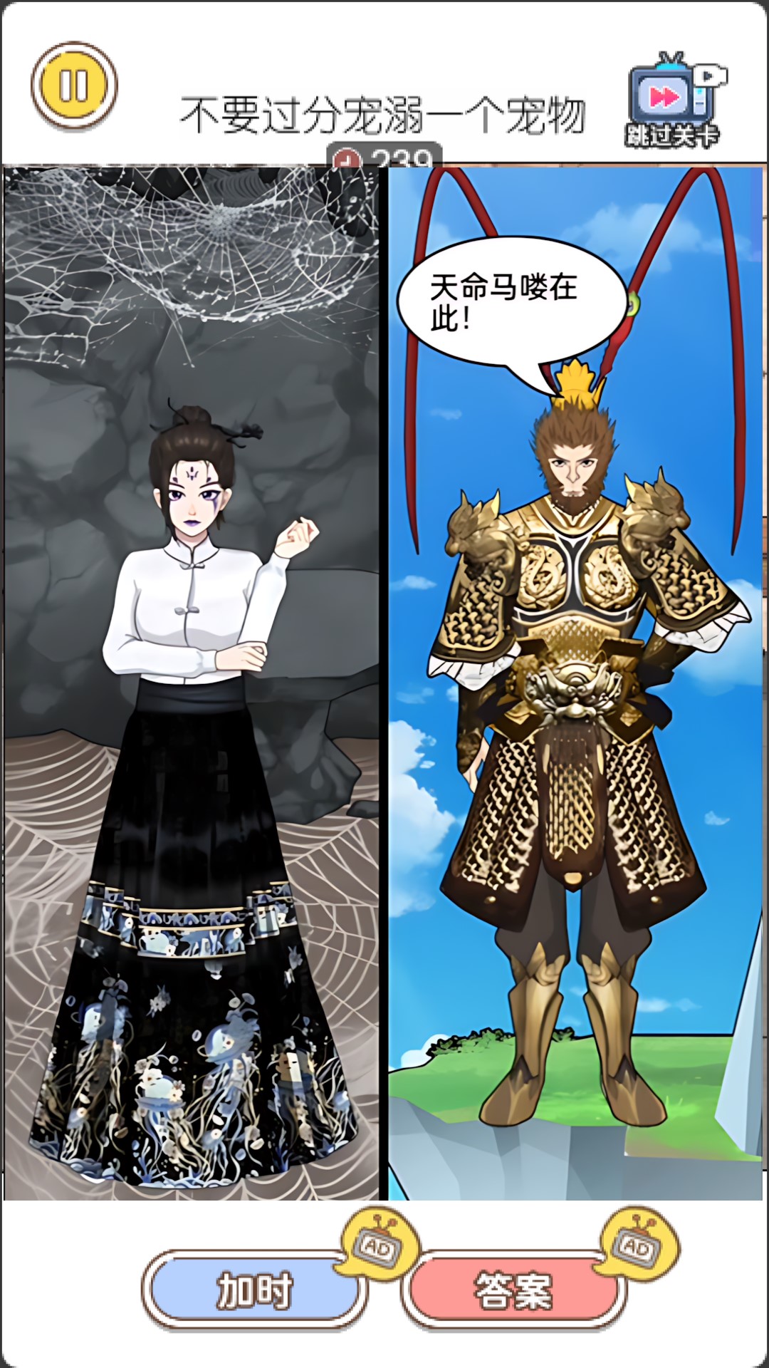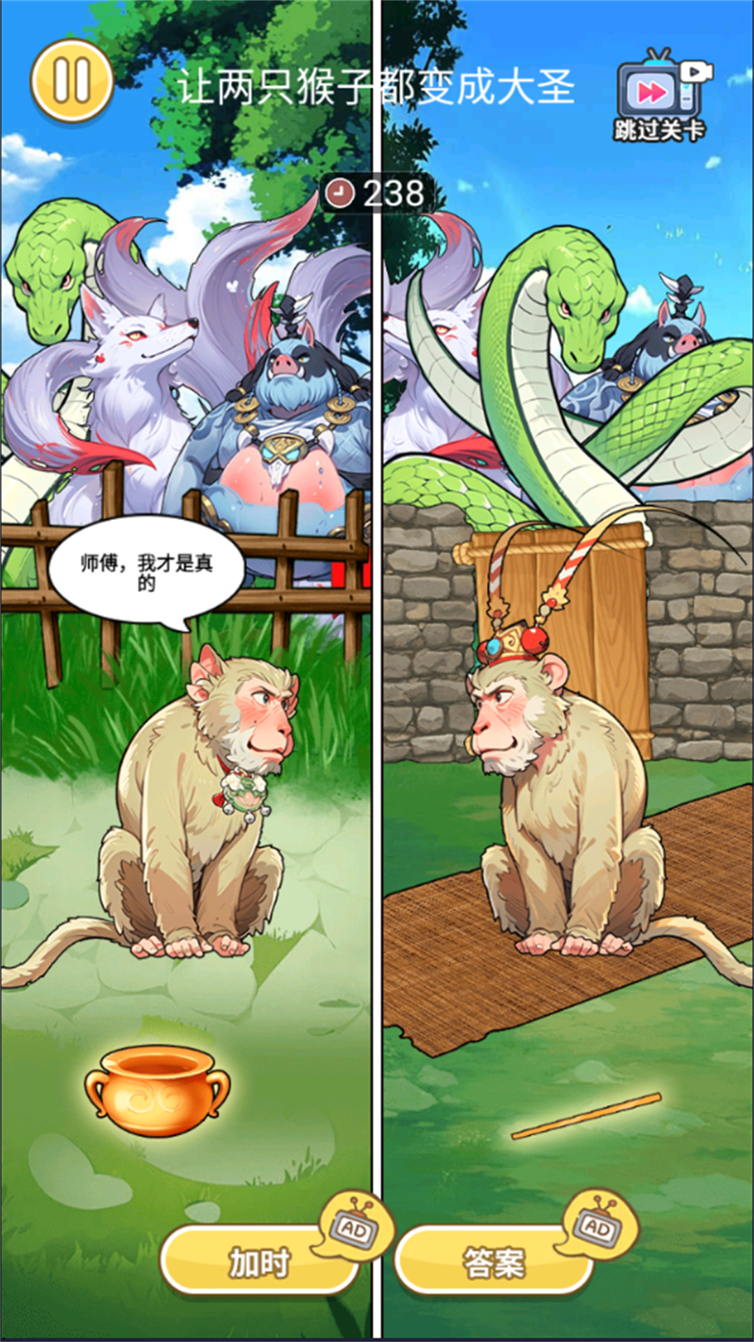 《神话怪谈》是一款充满悬疑与趣味的单机休闲益智找茬游戏,在游戏中,玩家面对真假悟空的诡异怪谈之中,通过观察力和细心,找出隐藏在场景中的细微差异,揭开真假悟空的谜团。