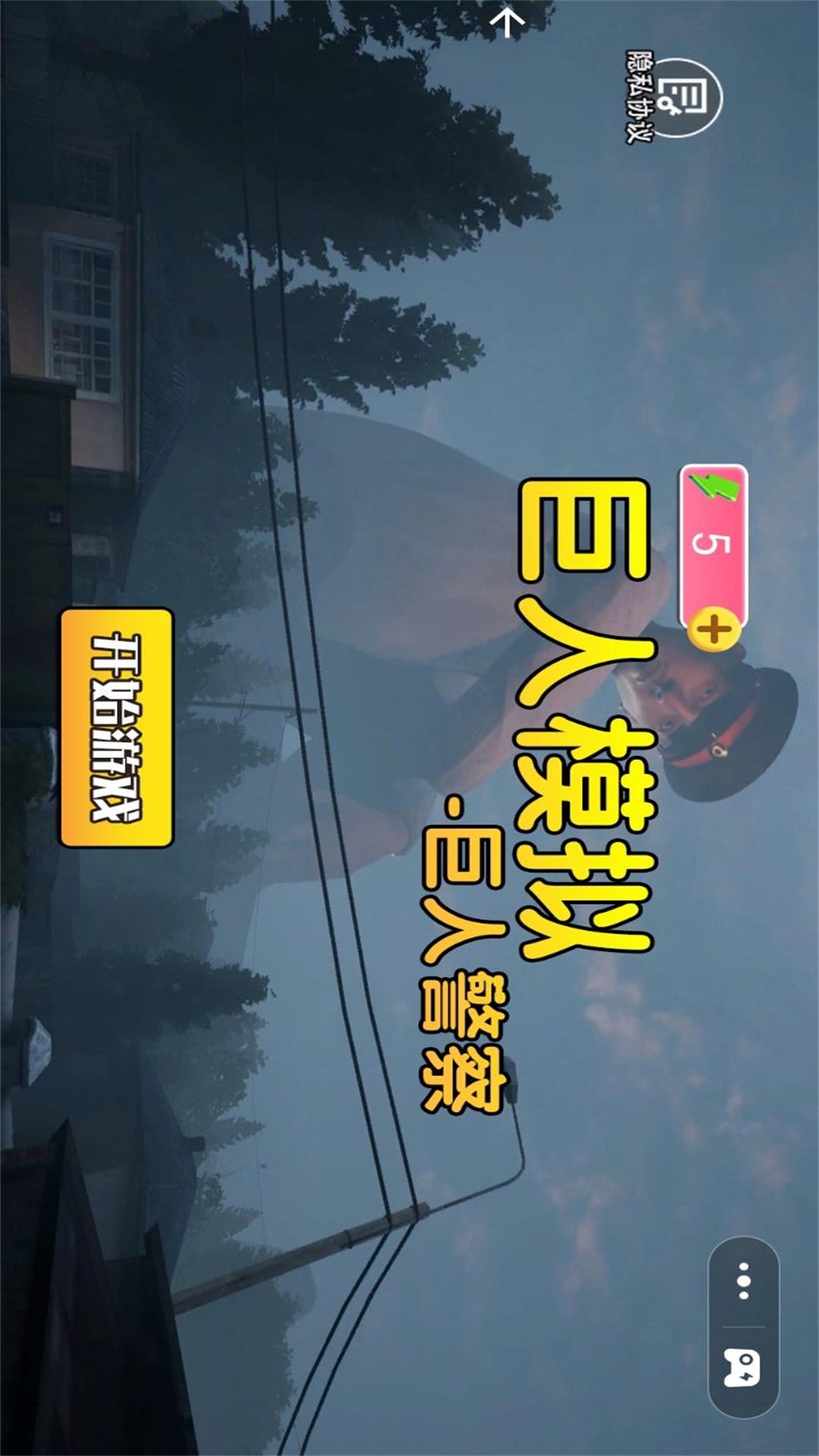 巨人模拟-巨人警察是一款超现实沉浸式逃跑模拟器,玩家身处一个超现实、有巨大警察管理的城市中。在平平无奇的一天,你突然被告知,你被捕了。现在,想办法逃跑吧。