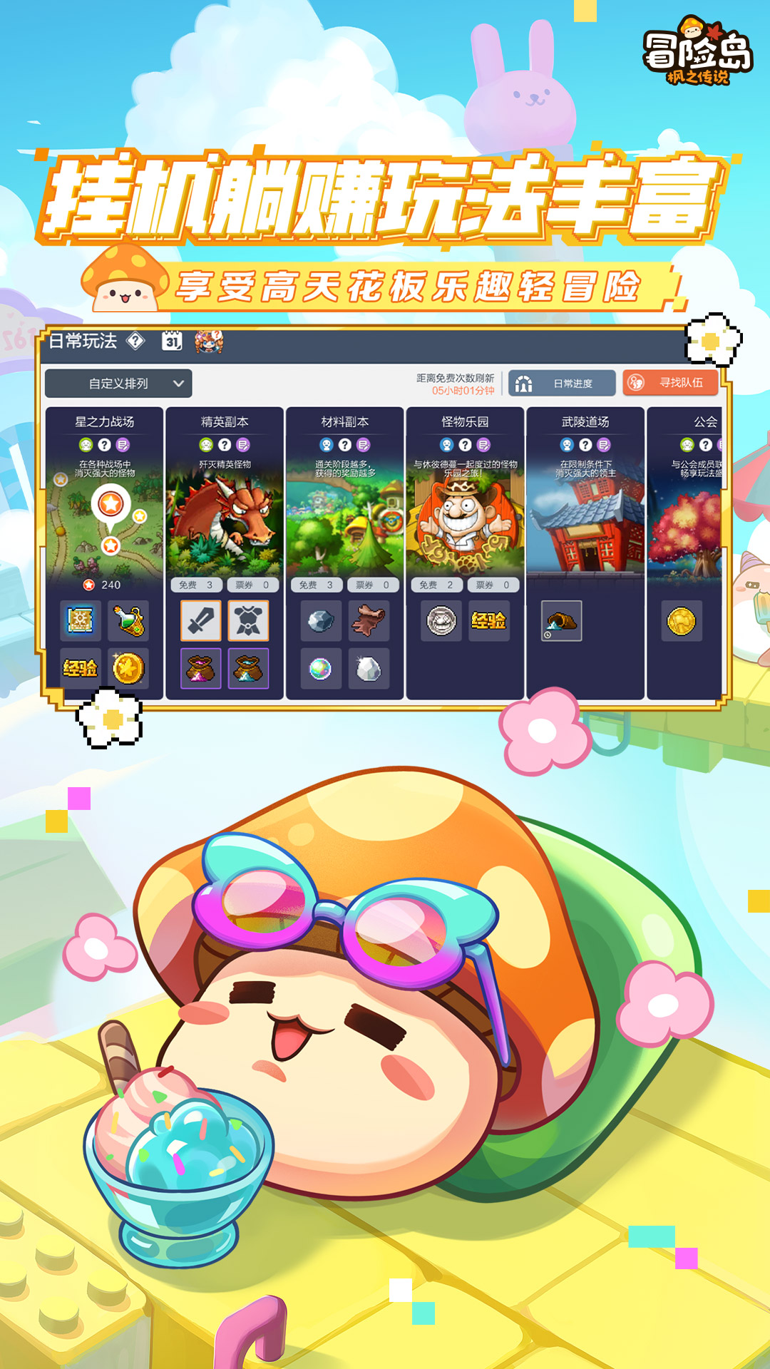 【组队挑战】无论是单人独闯还是组队协同挑战,《冒险岛:枫之传说》都能满足玩家需求。和好友组队共同挑战强大BOSS,就能收获丰厚奖励。