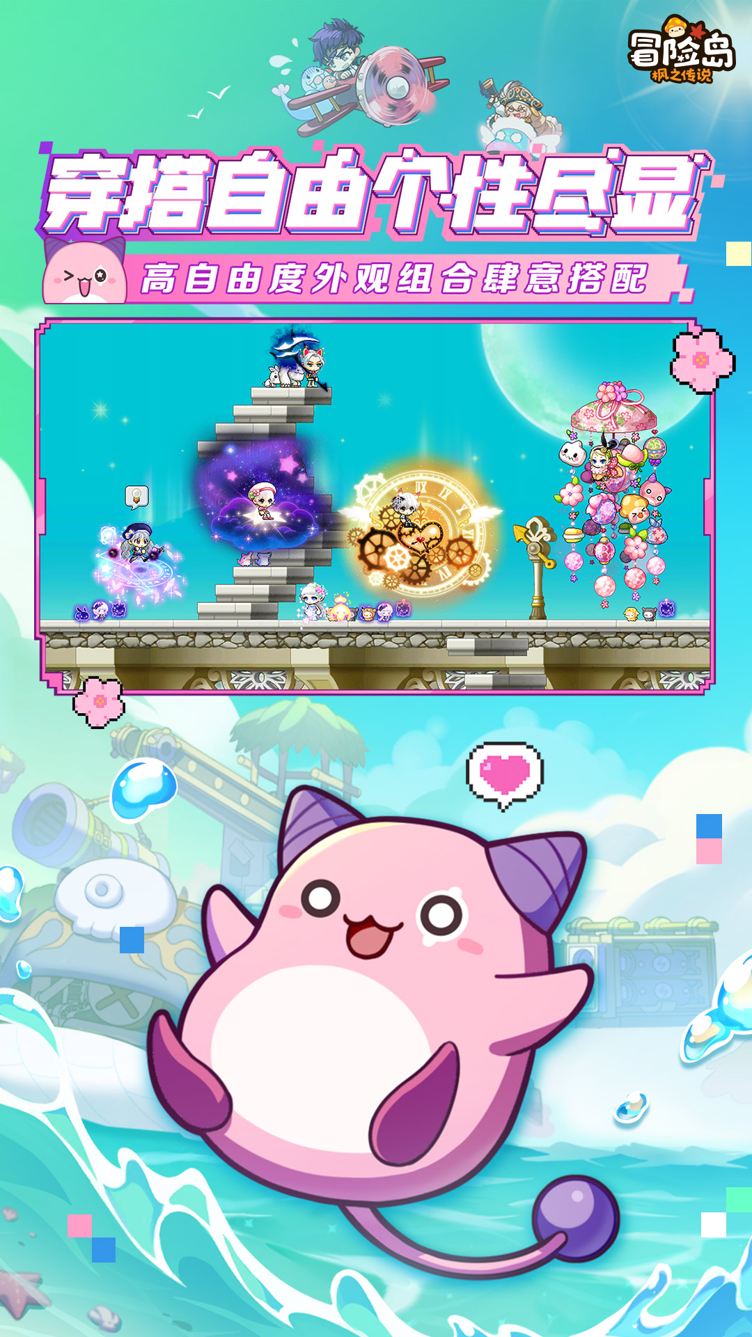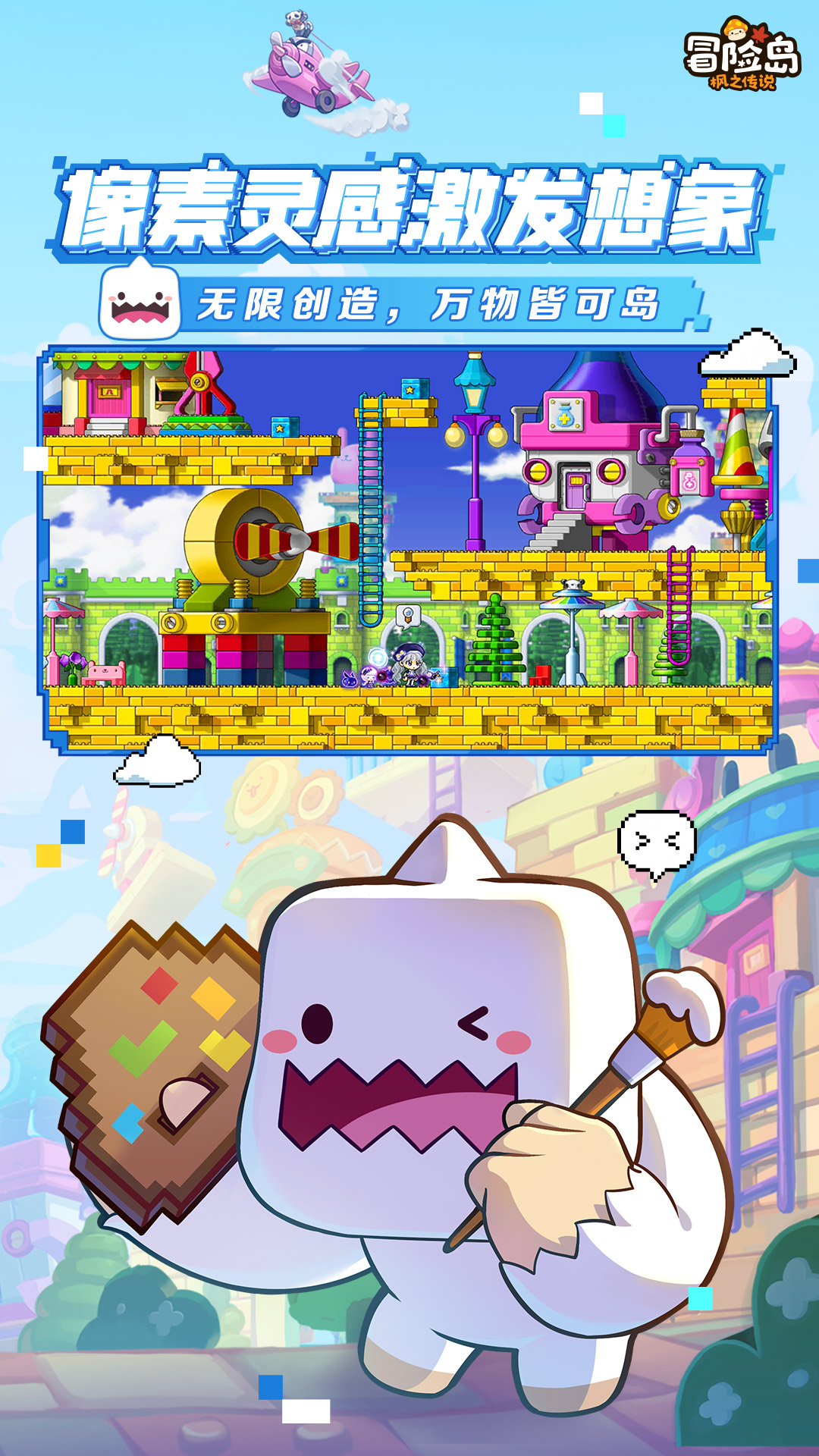 【像素灵感,激发无限想象:无限创造,万物皆可在冒险岛呈现】游戏中的像素风格能够激发玩家的想象力,在这个世界里,仿佛有着无限的创造力,任何事物都可以在冒险岛中出现。