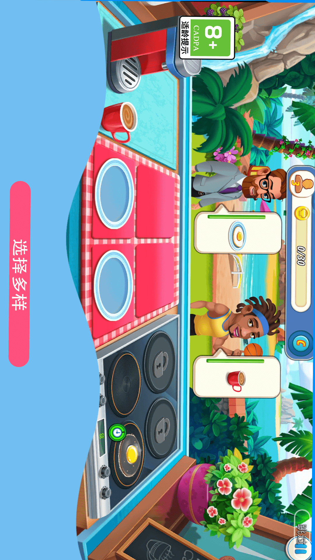 成为著名的大厨,烹制美味的饭菜、甜点和饮料,装修自己的餐厅,环游世界各地,探索美食文化,发展自己的美食帝国!让餐厅恢复营业并吸引越来越多的顾客。让烹饪之旅开始吧!为您的厨房电器恢复、装饰和升级,提高您的烹饪能力,揭开这家餐厅的秘密,享受与游戏内顾客的交流,成为有史以来好的厨师。精美的图形、专业的效果和生动的声音,您将立即被吸引。