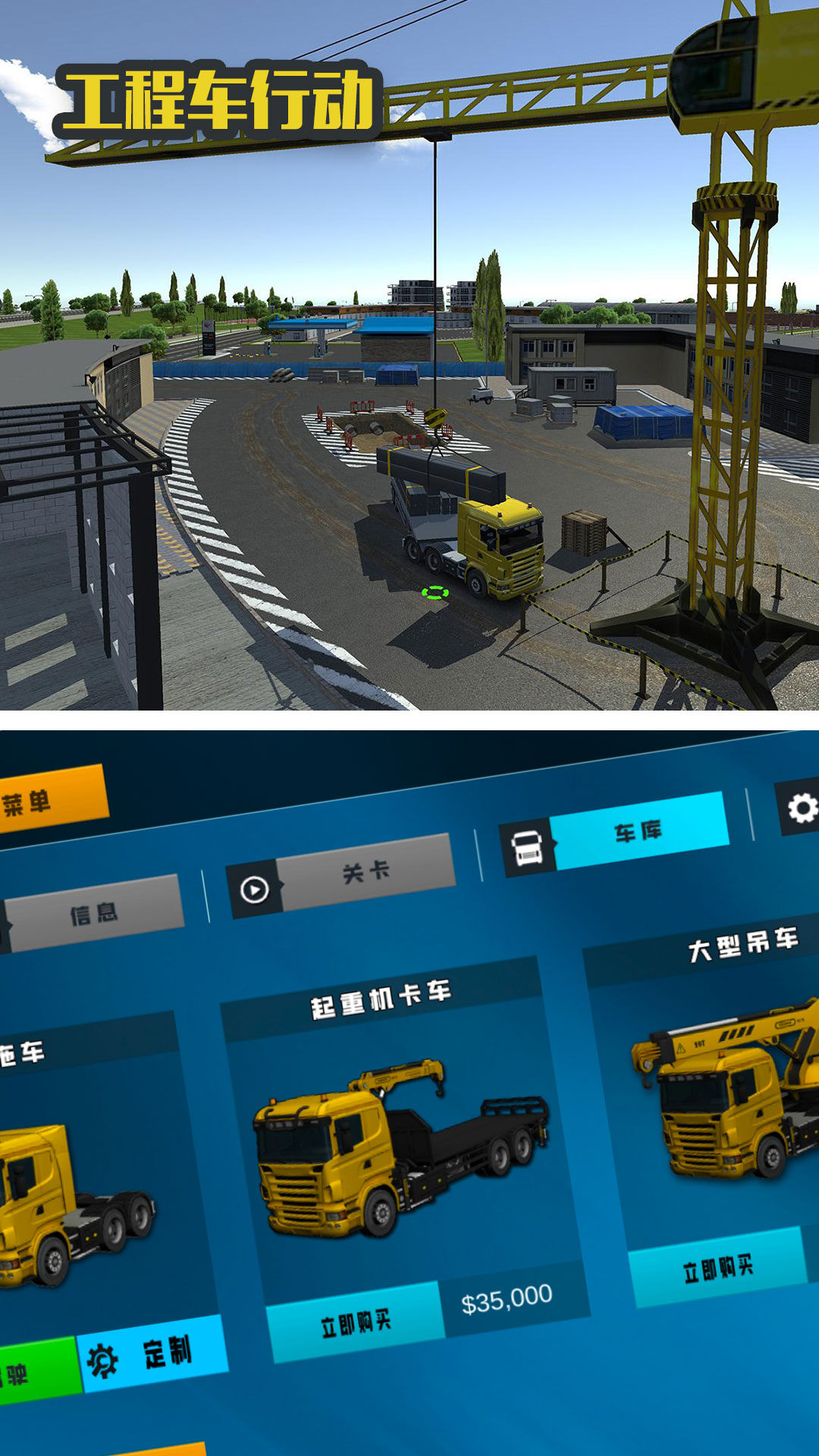 游戏中,玩家可以体验驾驶各类工程车辆,比如重型卡车,吊车,搅拌车,挖掘机,故障牵引车等等,完成简单或复杂的任务,从而获得奖励。