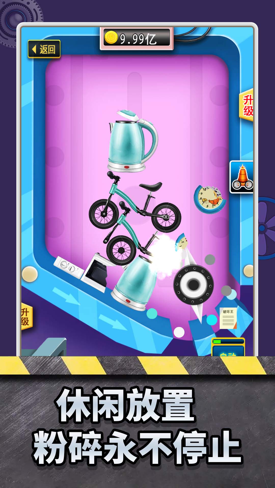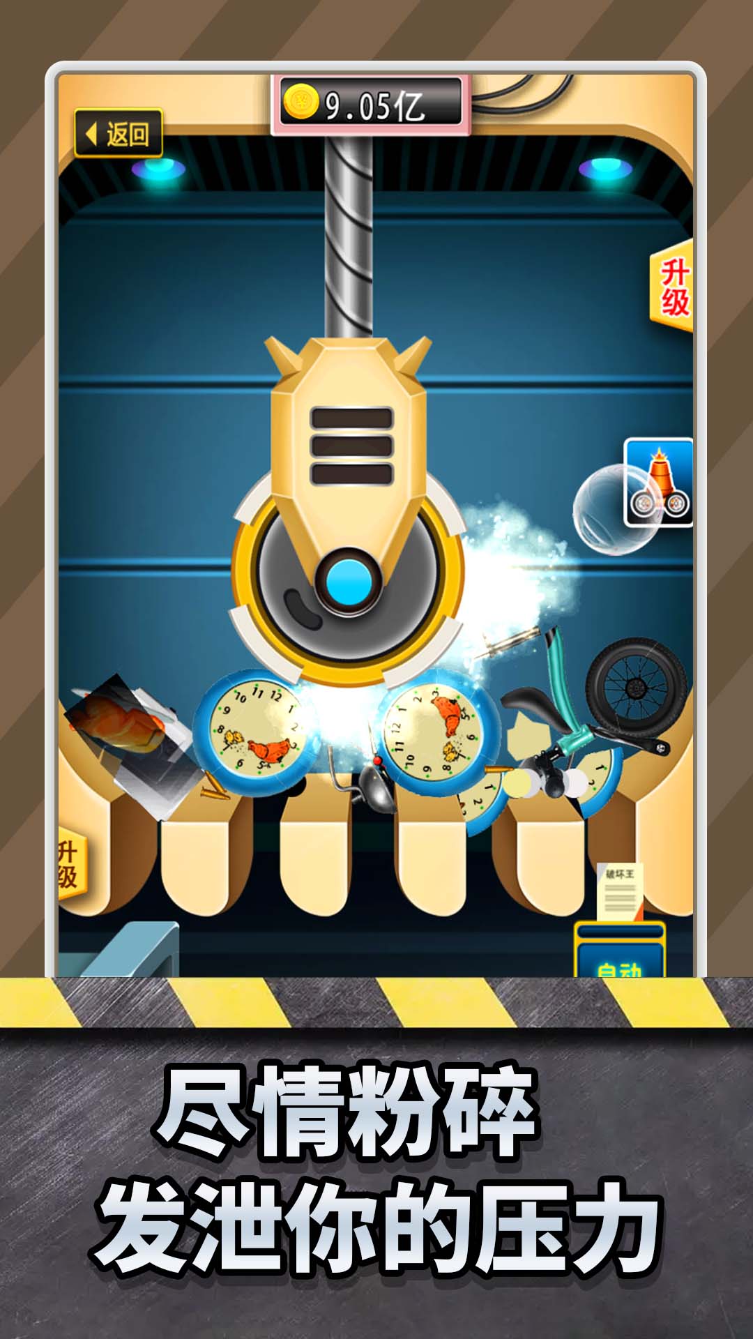 不断升级你的粉碎机来粉碎物品,没有时间限制,无人能够阻碍你的发泄。