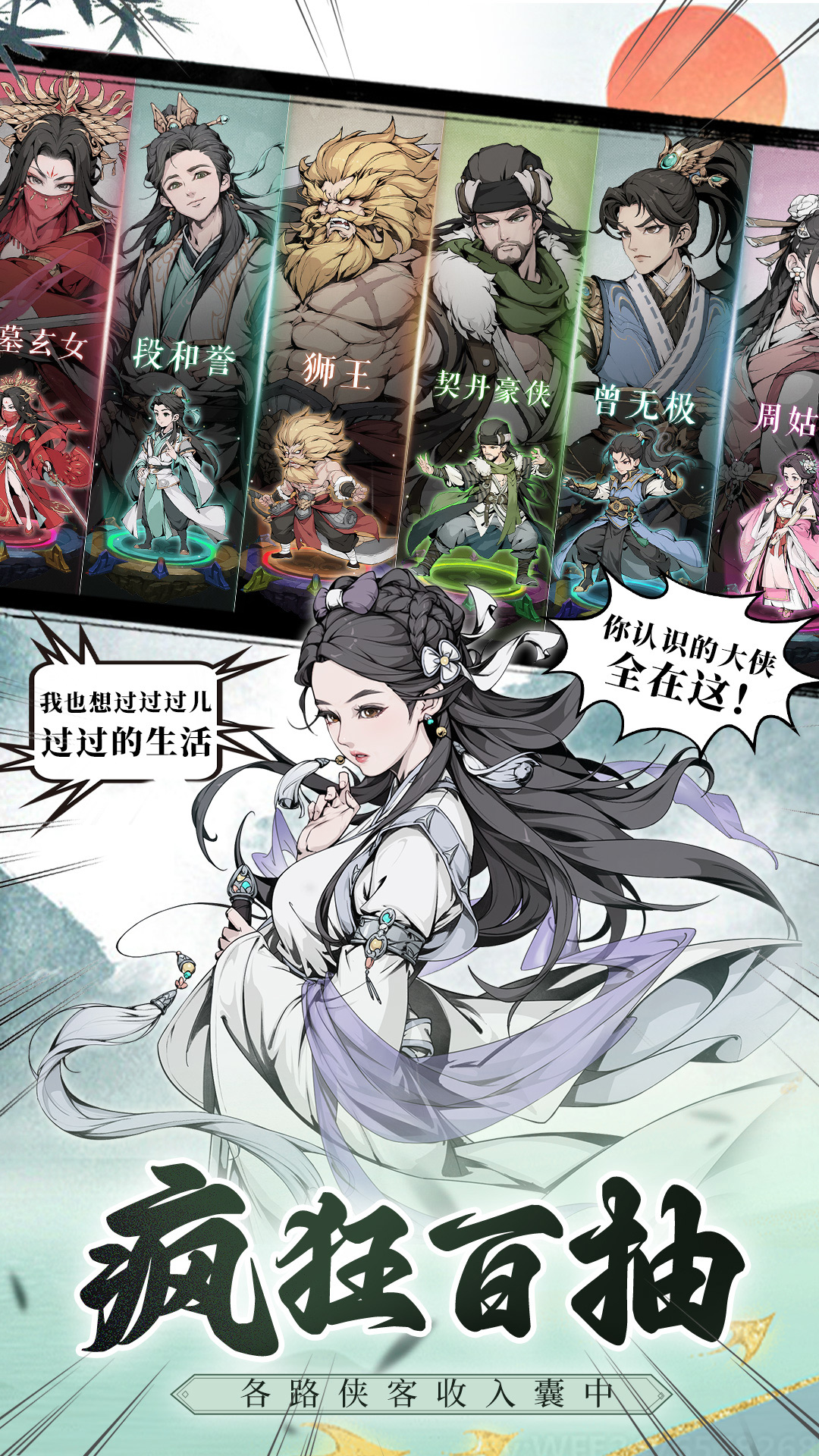 ●佛系挂机:轻松放置,不肝不氪,享受从菜鸟到大侠的成长快感,体验酣畅淋漓的江湖历程。