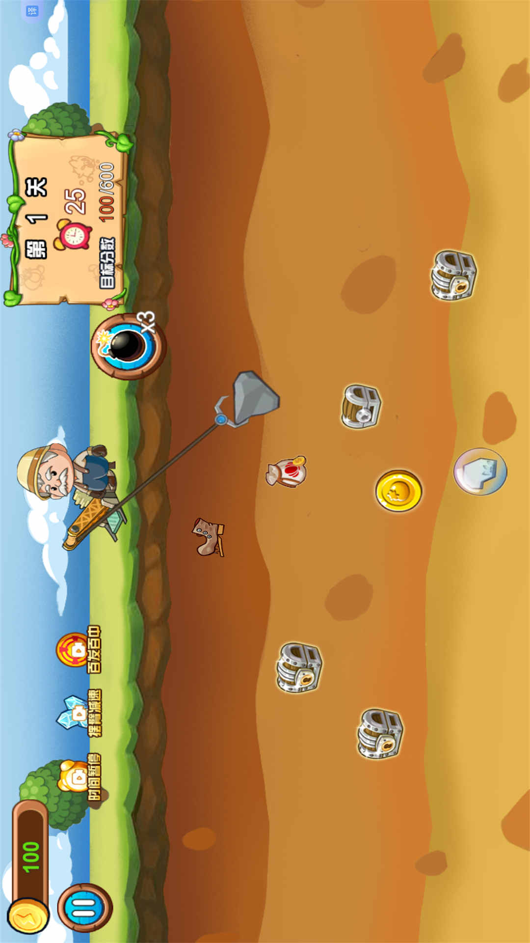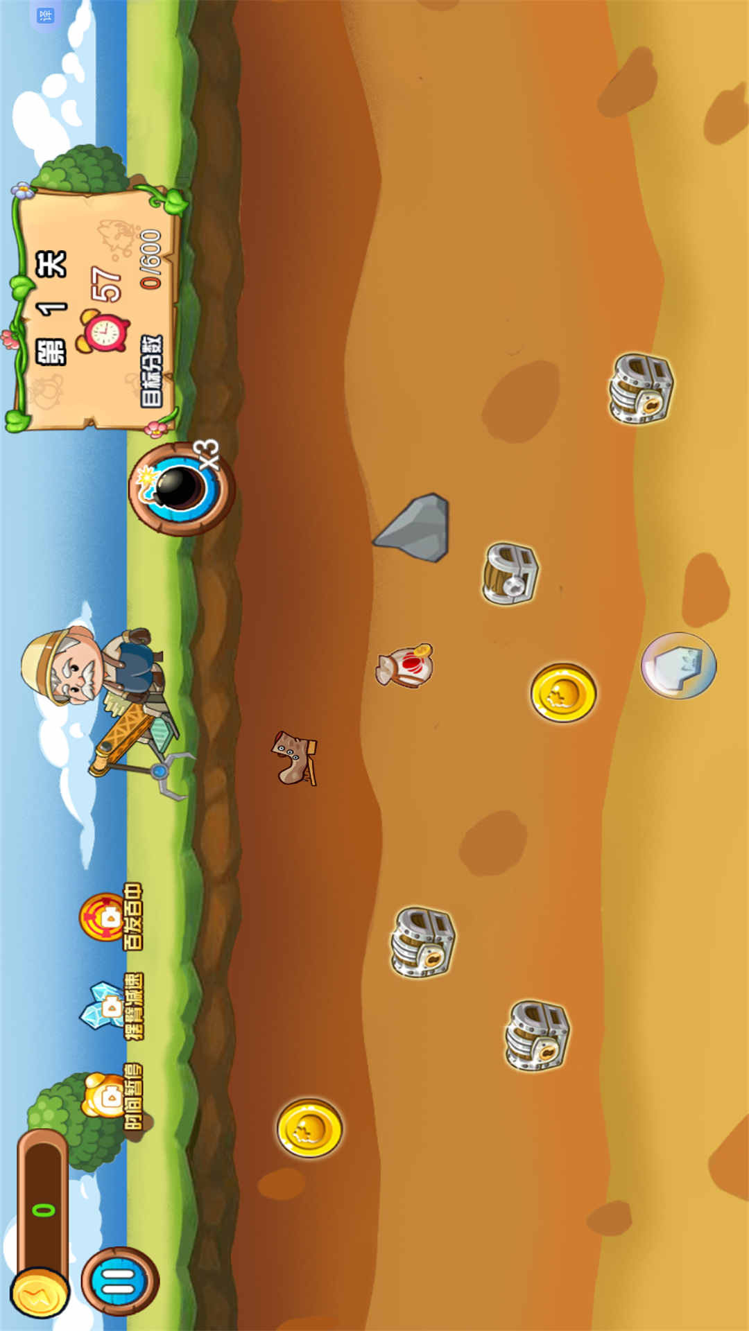 别看我只是一个矿工,矿工的能力难以想象,.一铲一铲,财富滚滚来。游戏中我们就是一个矿工,我们需要放下钩子将地下的宝藏挖出来。