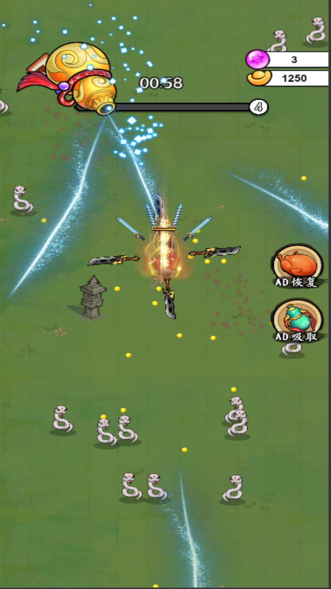 一款休闲类割草小游戏,鸠摩智修炼之路不好修炼那,只有不断杀怪获取游戏经验,升级提升自己的战斗力,每升一级选取合适武功秘籍,快来提升战斗力吧