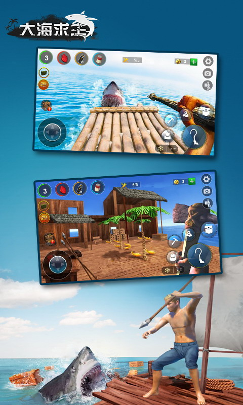 在游戏中!你发现自己独自一人在海洋中徘徊的小木筏上。附近没有陆地的迹象。你看到路过的各种碎片让你意识到你是海难中的幸存者!如果你想要生存,现在你需要为生命而奋斗!饥饿的鲨鱼总是靠近你的木筏,等待着你倒下,所以你要小心!专注打造自己的基地,保护它免受鲨鱼袭击并探索周围的广阔世界。