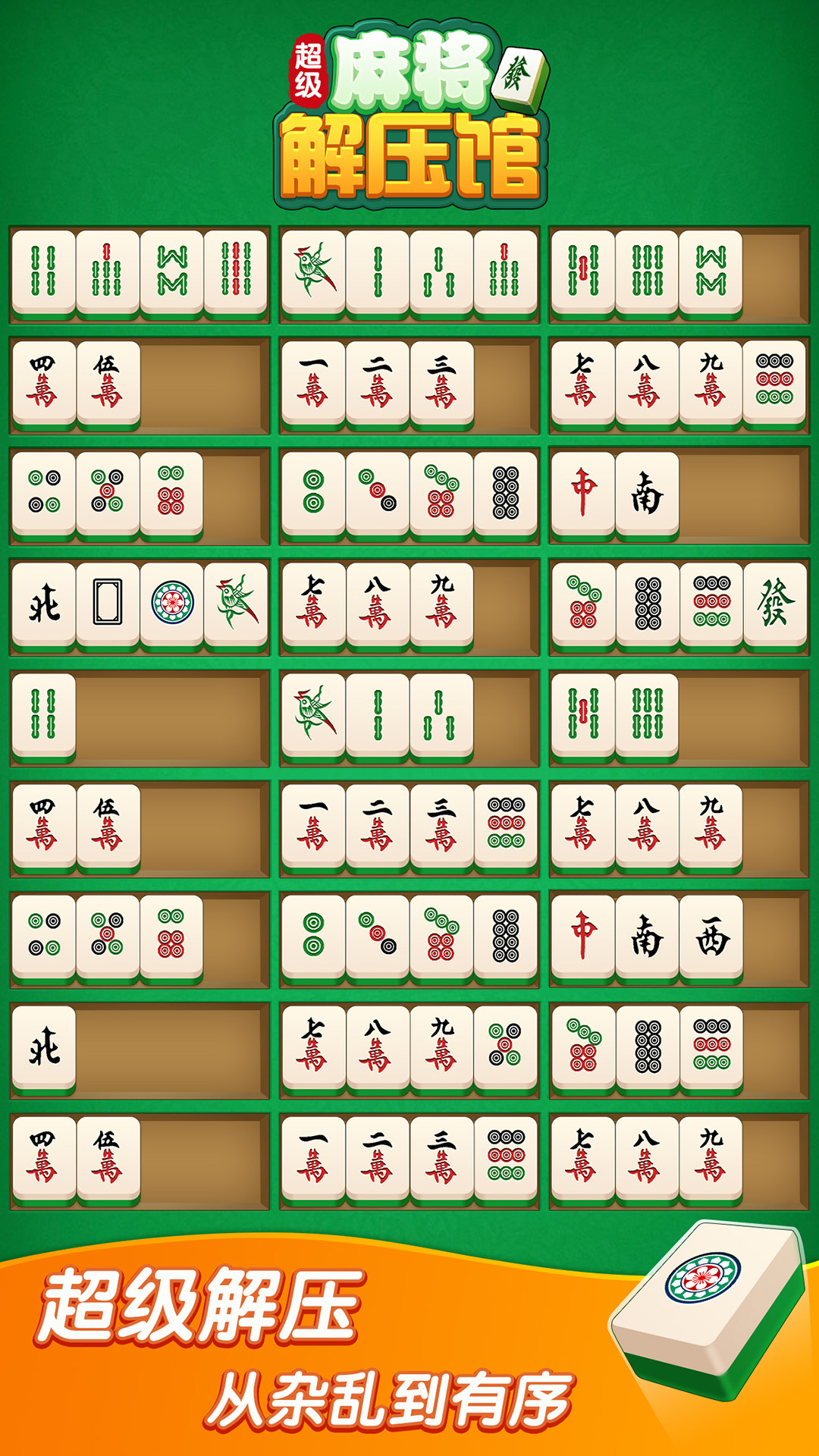 超级麻将解压馆,一款休闲益智,超级解压的麻将排序消除游戏。