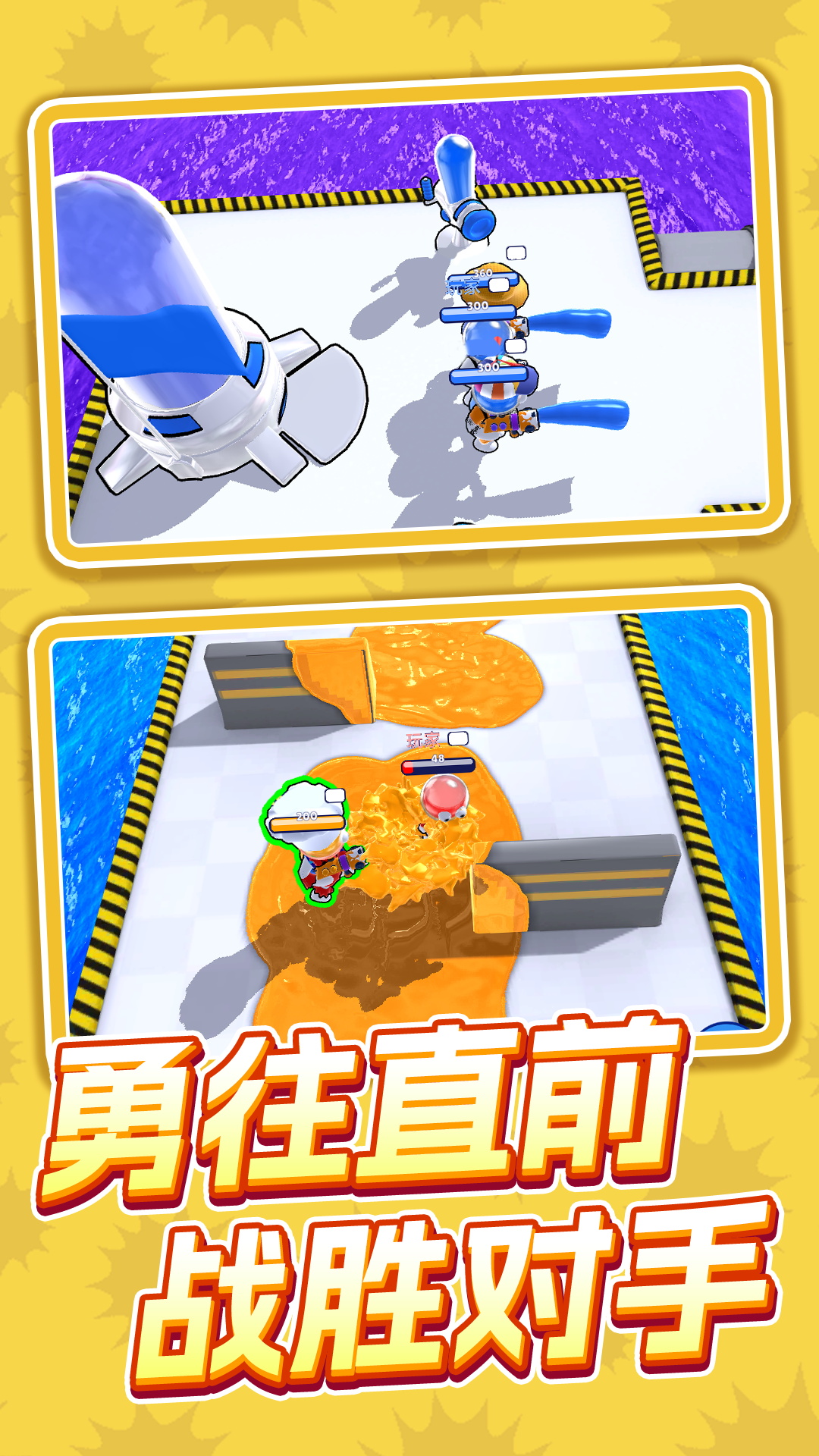 喷射骑士是一款休闲射击类手游,玩家将操作小人手持颜料喷射器,你需要将这些颜料喷射到场景中,当然也可以用颜料来消灭对手,当比赛结束后,场地上颜料多的玩家就会获得比赛的胜利。