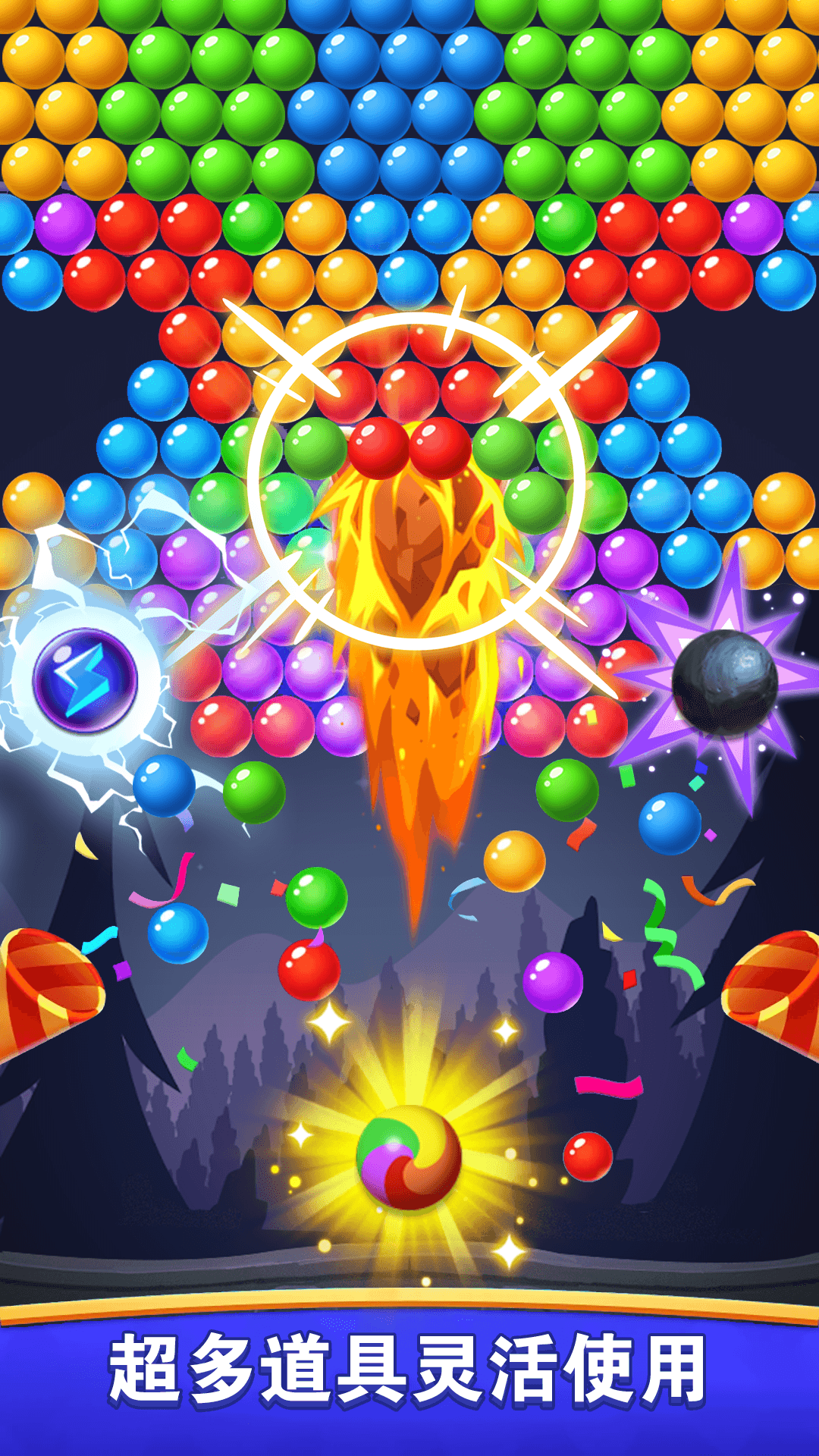游戏玩法:玩家需要操控发射台,利用不同颜色的泡泡射击并消除屏幕上的泡泡,当泡泡全部消除时即可过关。通过精准的射击和策略的运用,玩家可以获得更高的评分。同时,游戏还设置了各种道具和特殊泡泡,增加了游戏的趣味性和挑战性。