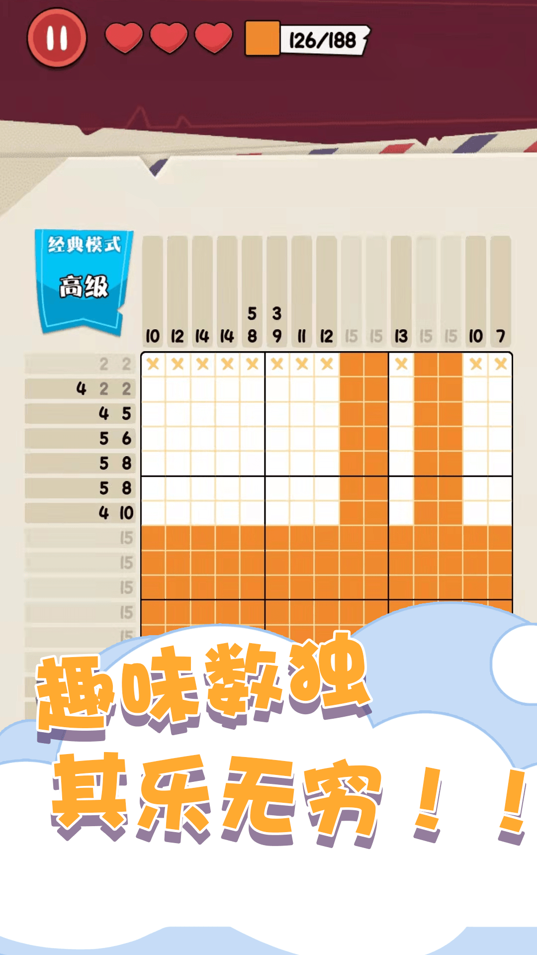 游戏的玩法是依据宫格周边的数字提示来为该行、列的方块填色。当数字与色块数量相同时,就切换到打叉模式,在确定的空格处打叉。只要按照这样的规则进行方块填色或者打叉操作,就能顺利通关。而且,游戏还有精彩的故事等待着你去解开谜底哦。