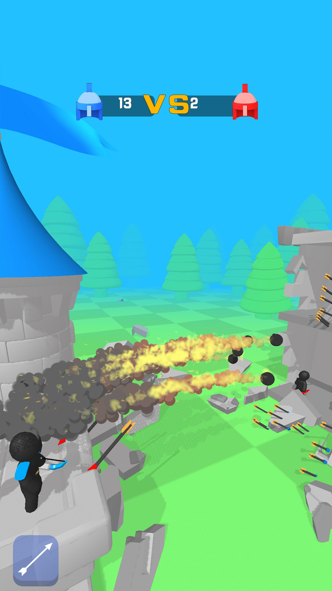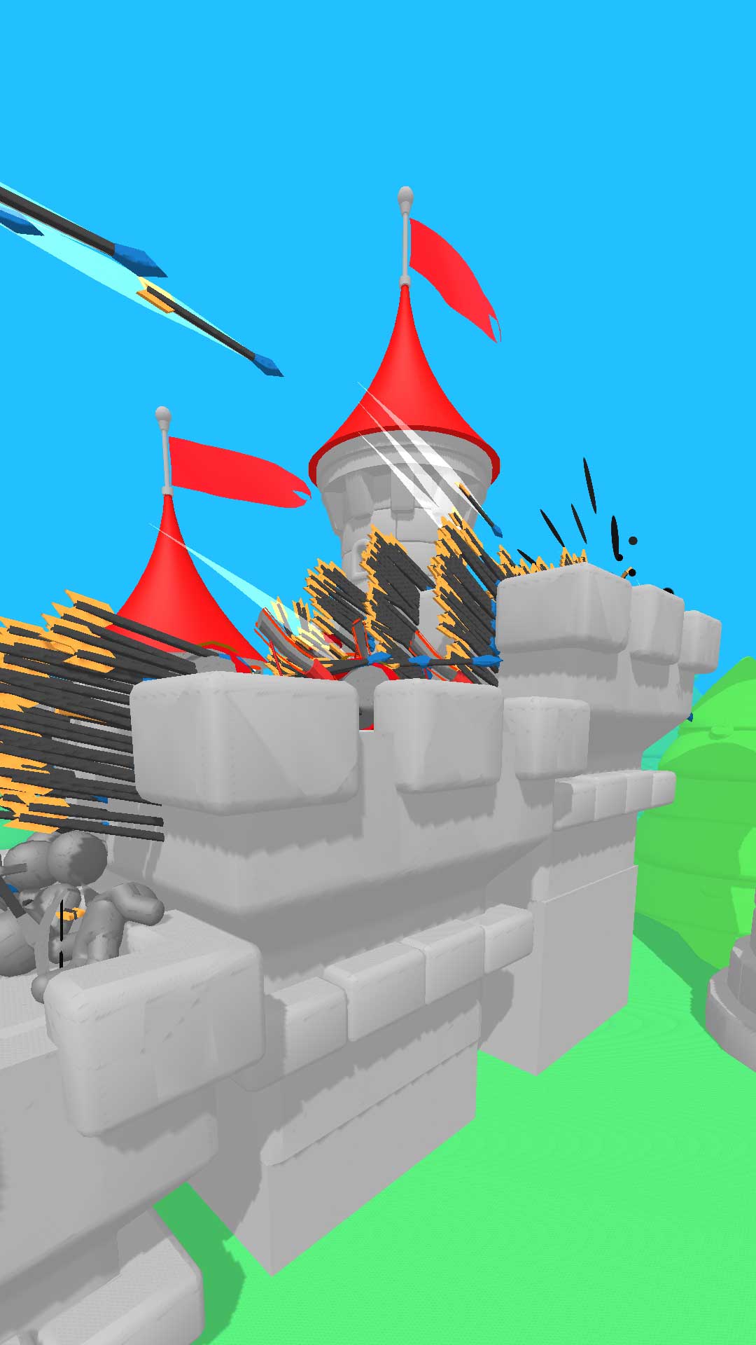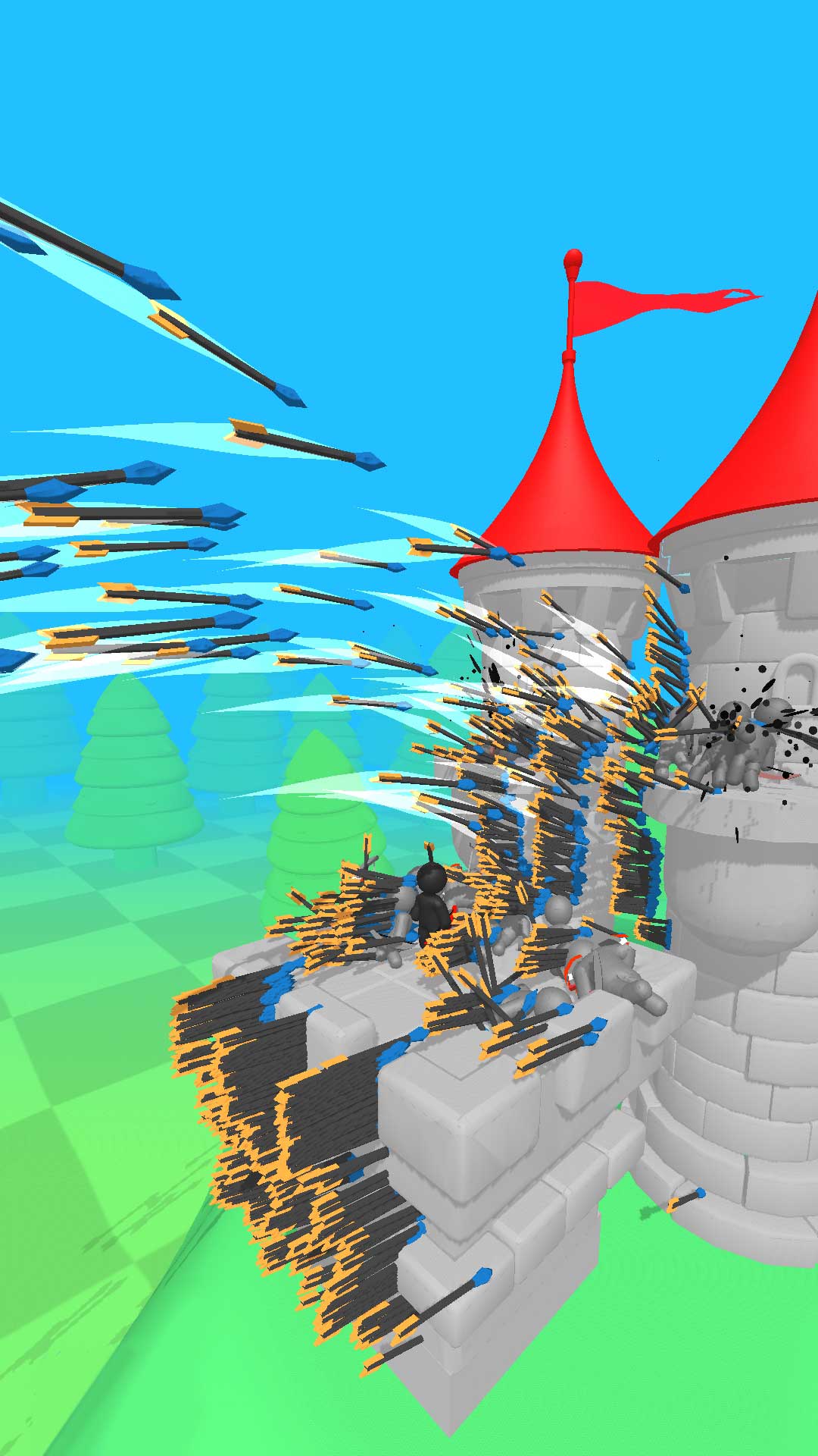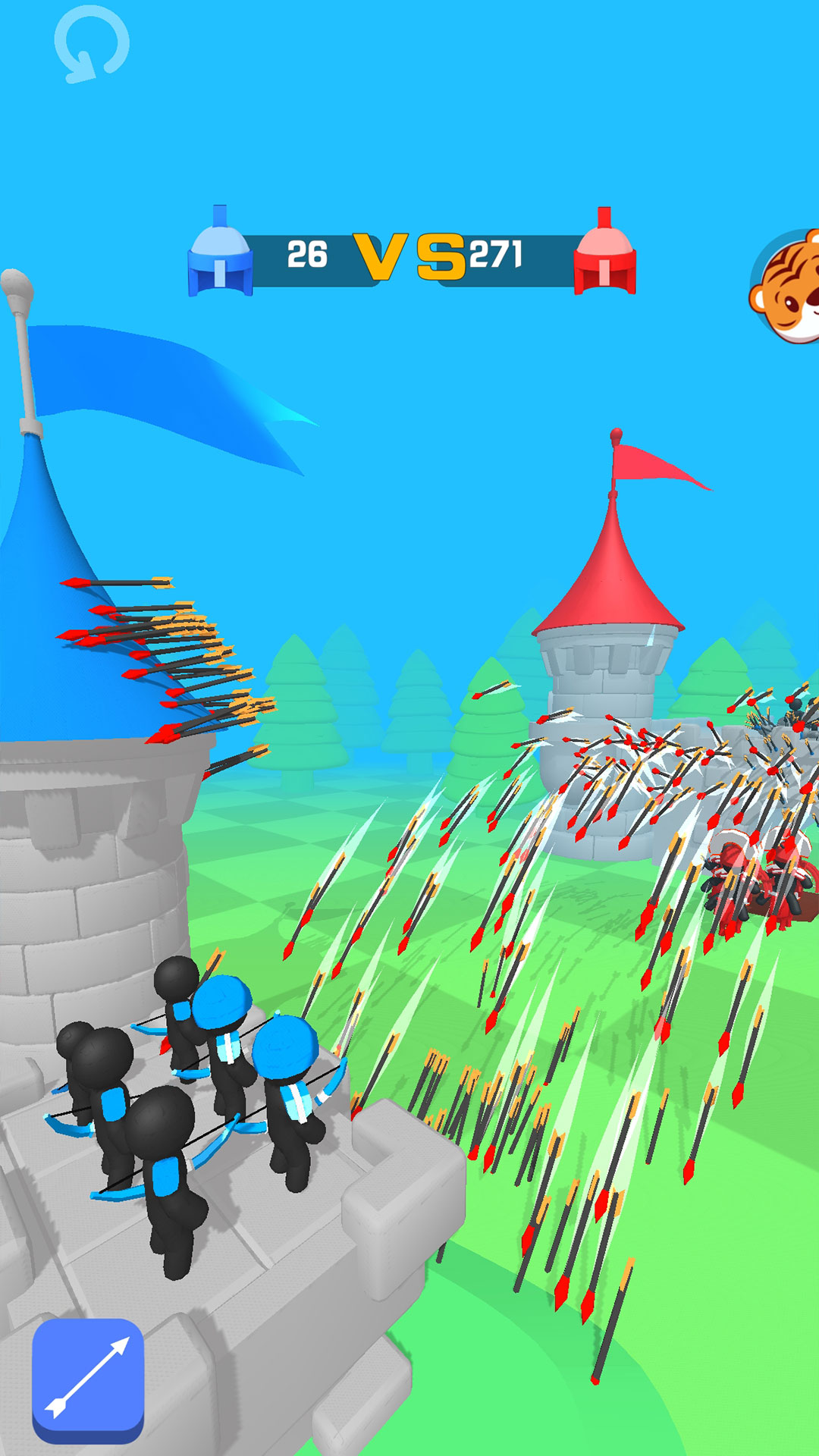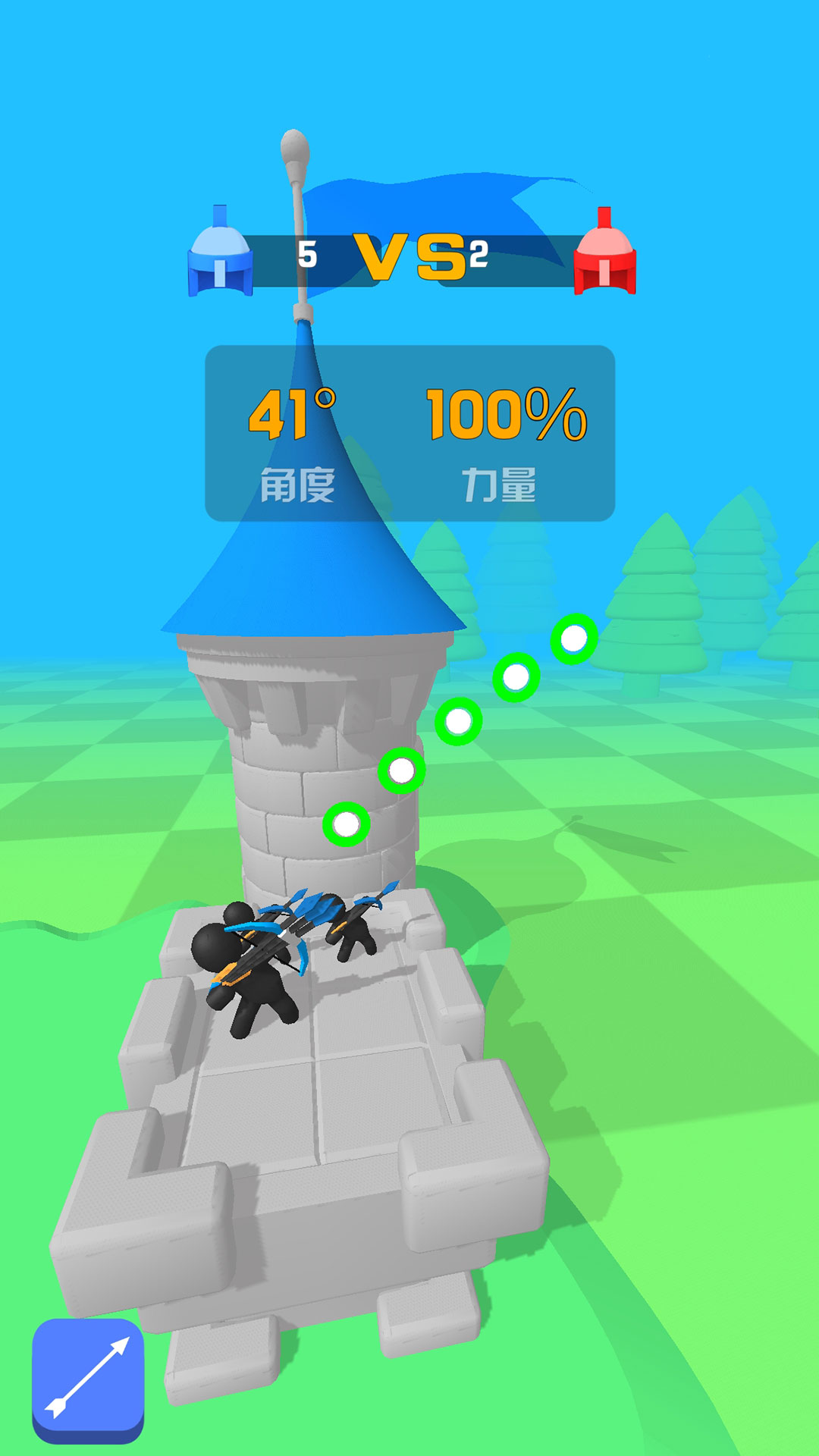 在一座箭塔中将类似的小火柴人弓箭手合并在一起进行升级,您招募的高级弓箭手英雄越多,您击败敌人的速度就越快。